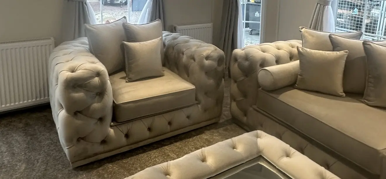House of Chelsea sofa set 5 seater sofa and armchair cushions included beautiful well made furniture has got no marks on them only a year old no smokers no pets collect only.