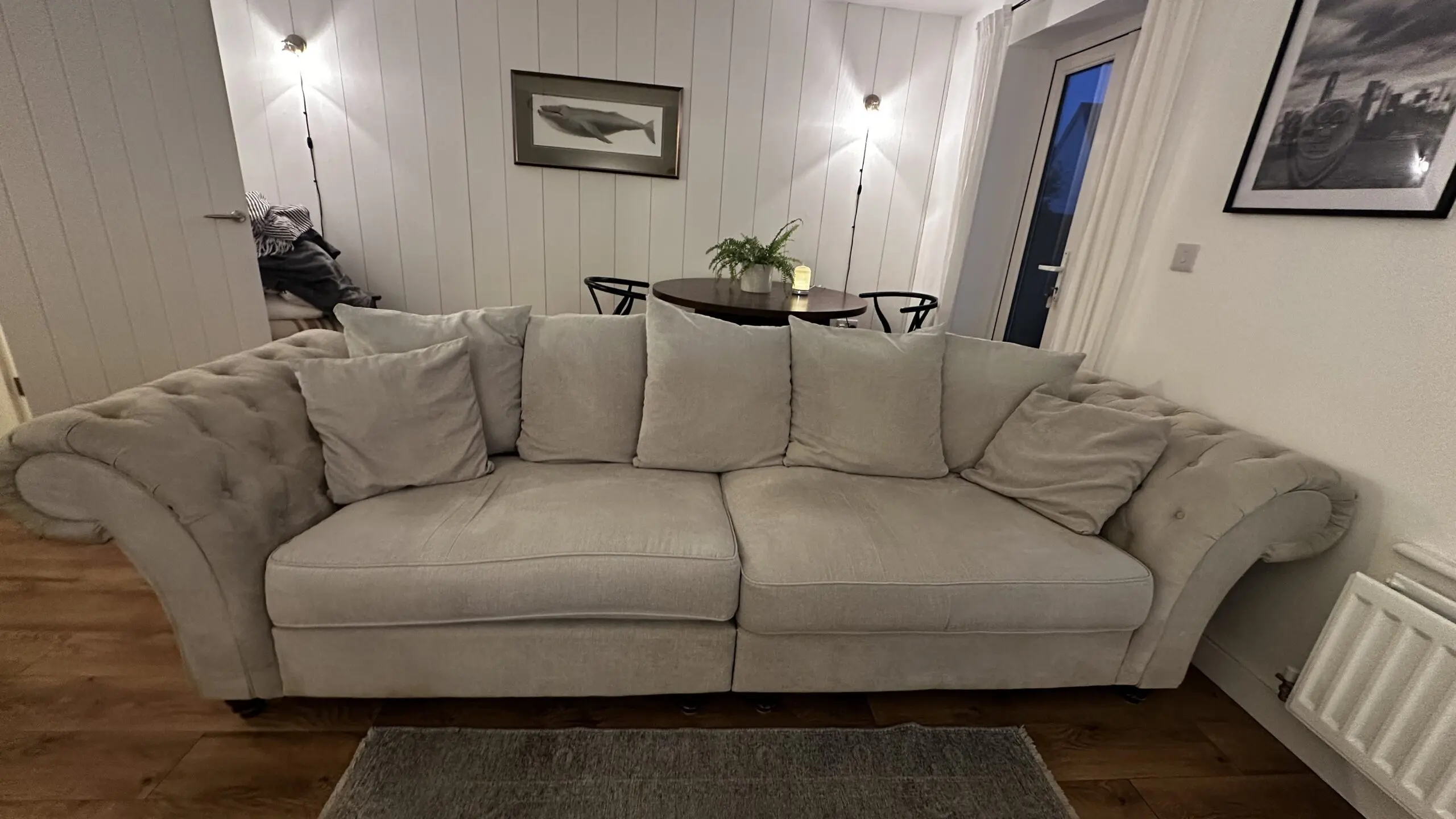 I’m also selling a two-seater Windsor sofa (2021 model) in the same Stone fabric. As it’s a newer model, there are slight design differences, but they look great together – we’ve had them side by side.