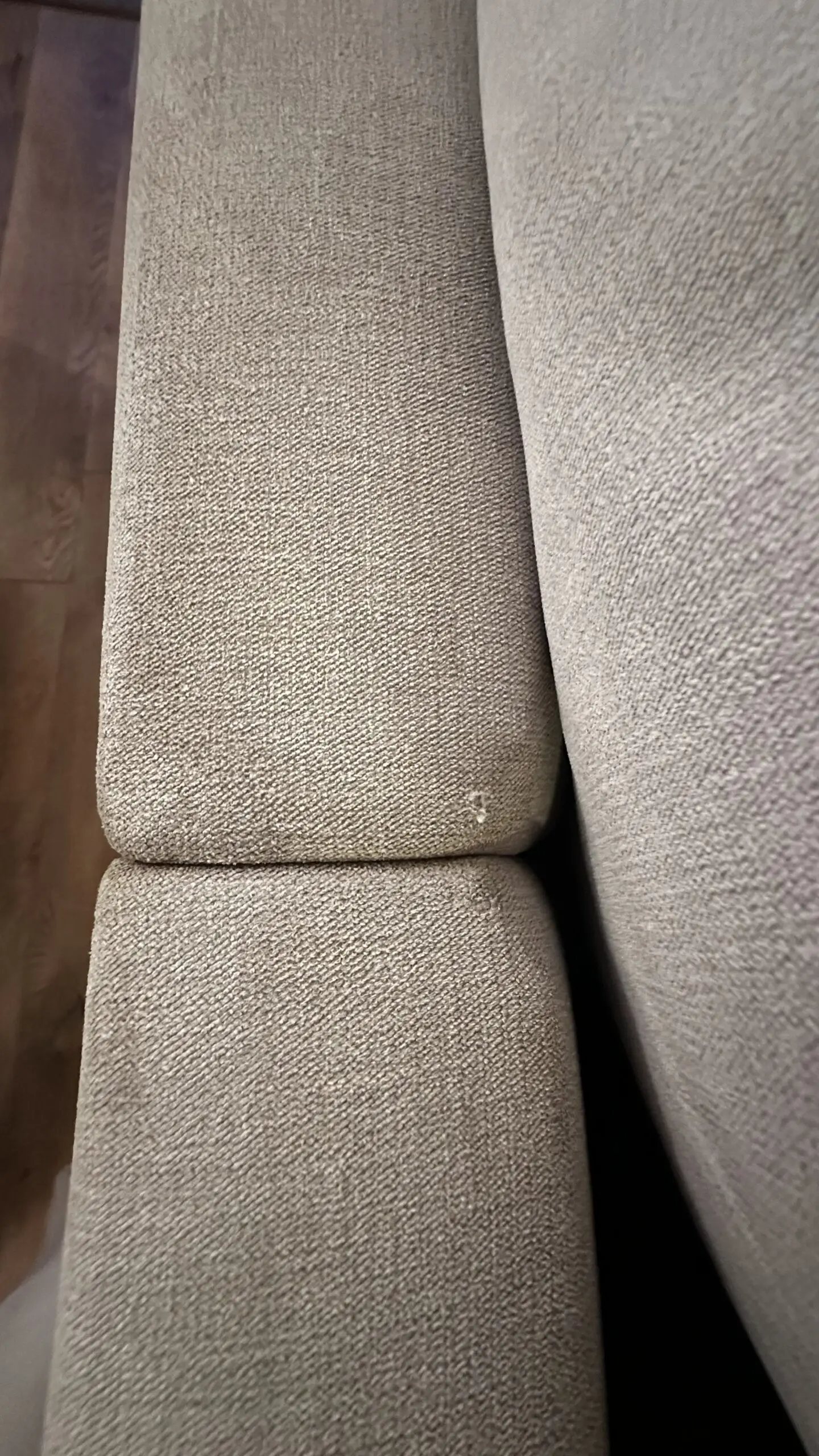 – Fabric scuff on the top (see photo) – not very noticeable. Purchased from Sofa Club in 2018 at a discounted rate due to this mark