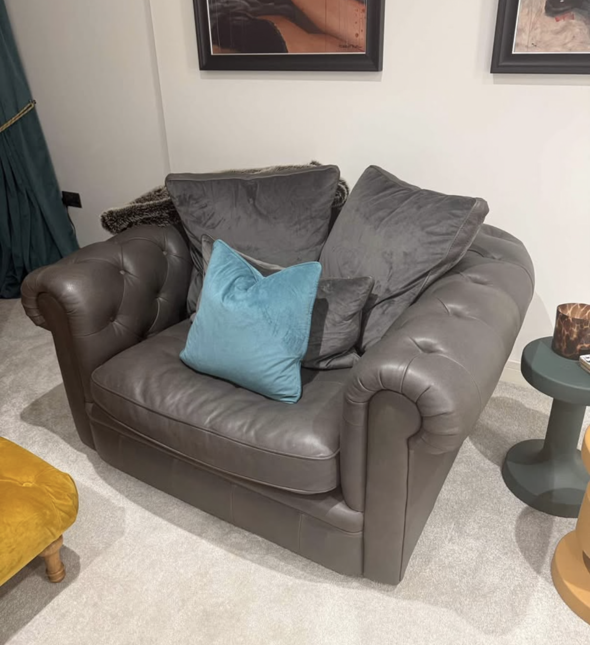 The Retreat Snuggler Chair By Alexander & James is a classic Chesterfield deisgn with fantastic versatility, featuring robust scrolled arms and a beautiful hand buttoned back and arms. The seat cushions and scatters are filled with a feather, foam and fibre mix for plush long lasting comfort.
