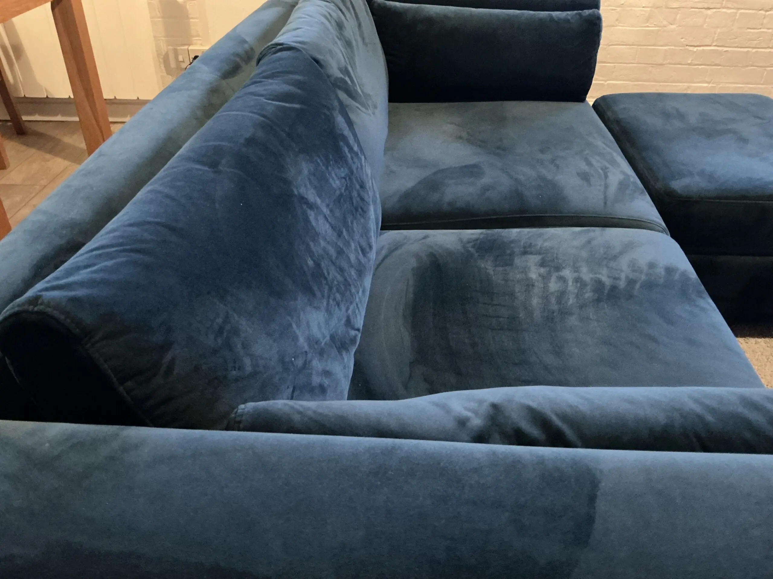 Sofolgogy- Navy Matt Velvet 4 seater sofa including a footstool