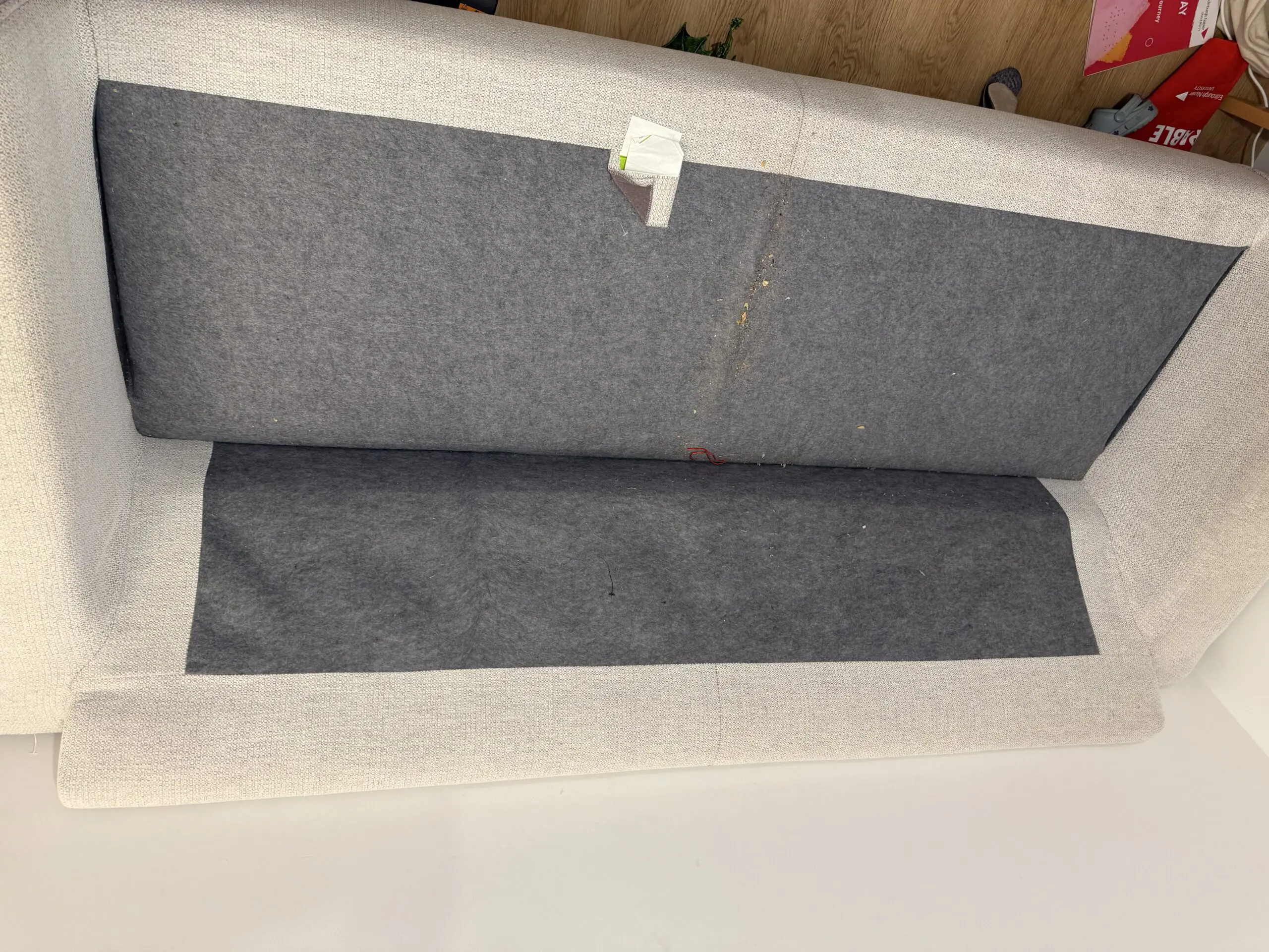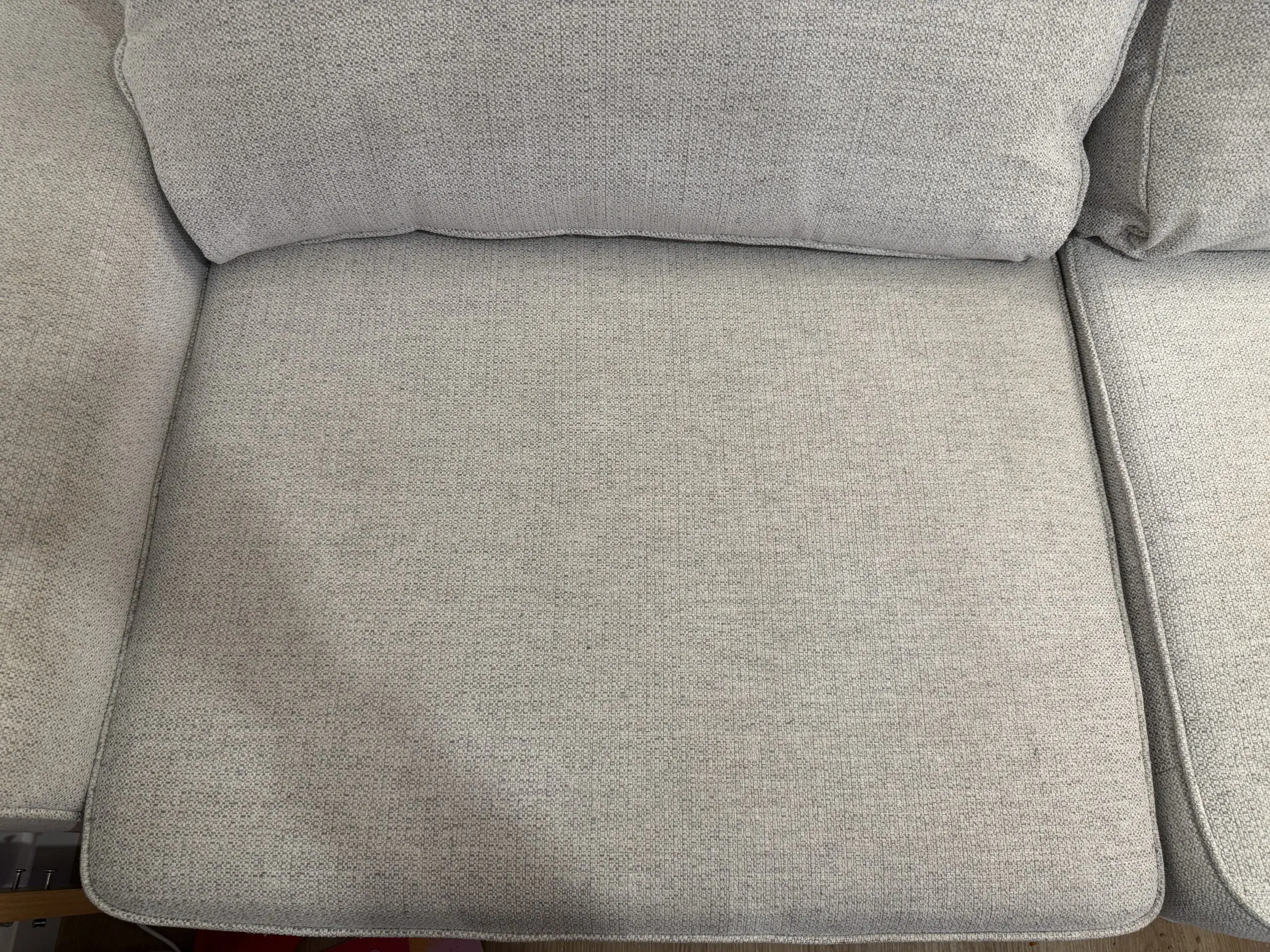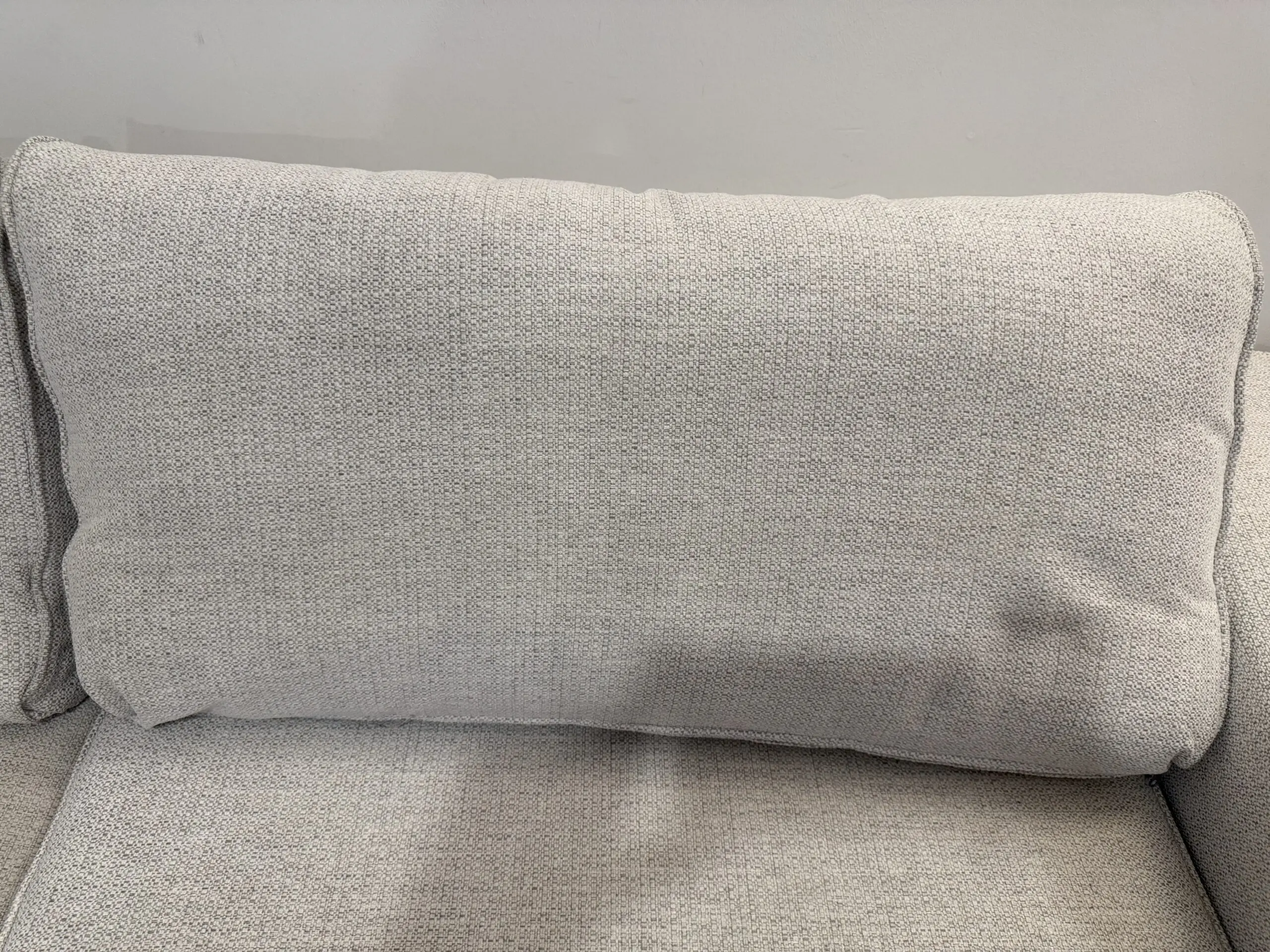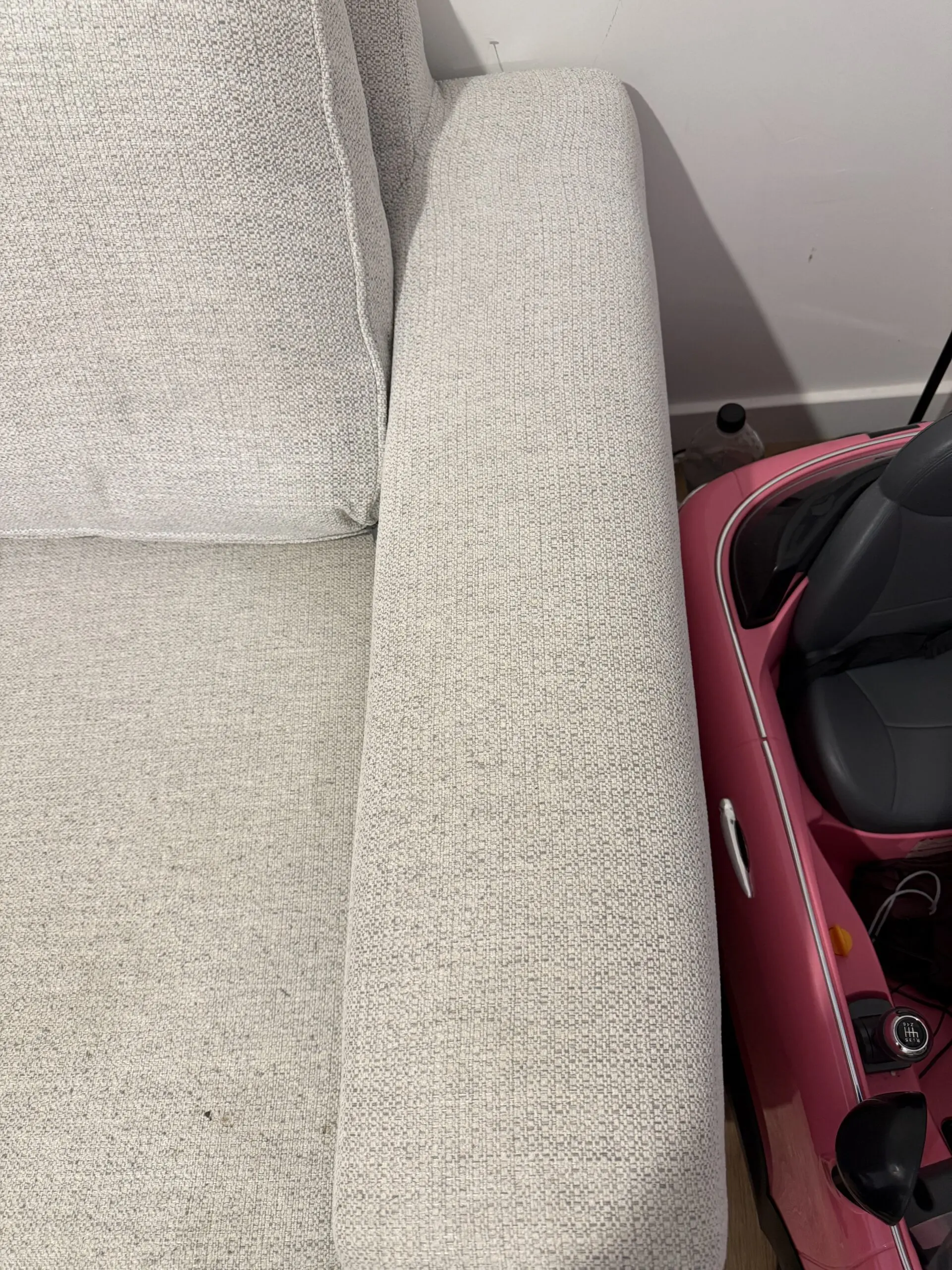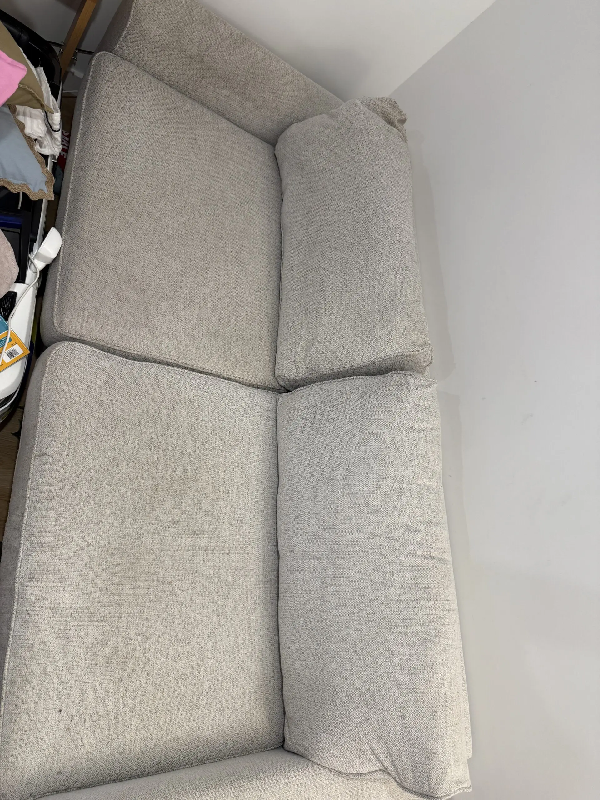 3 years old and used heavily. Still in great condition but requires a clean. Slight indent in corner of rear cushion due to dog.