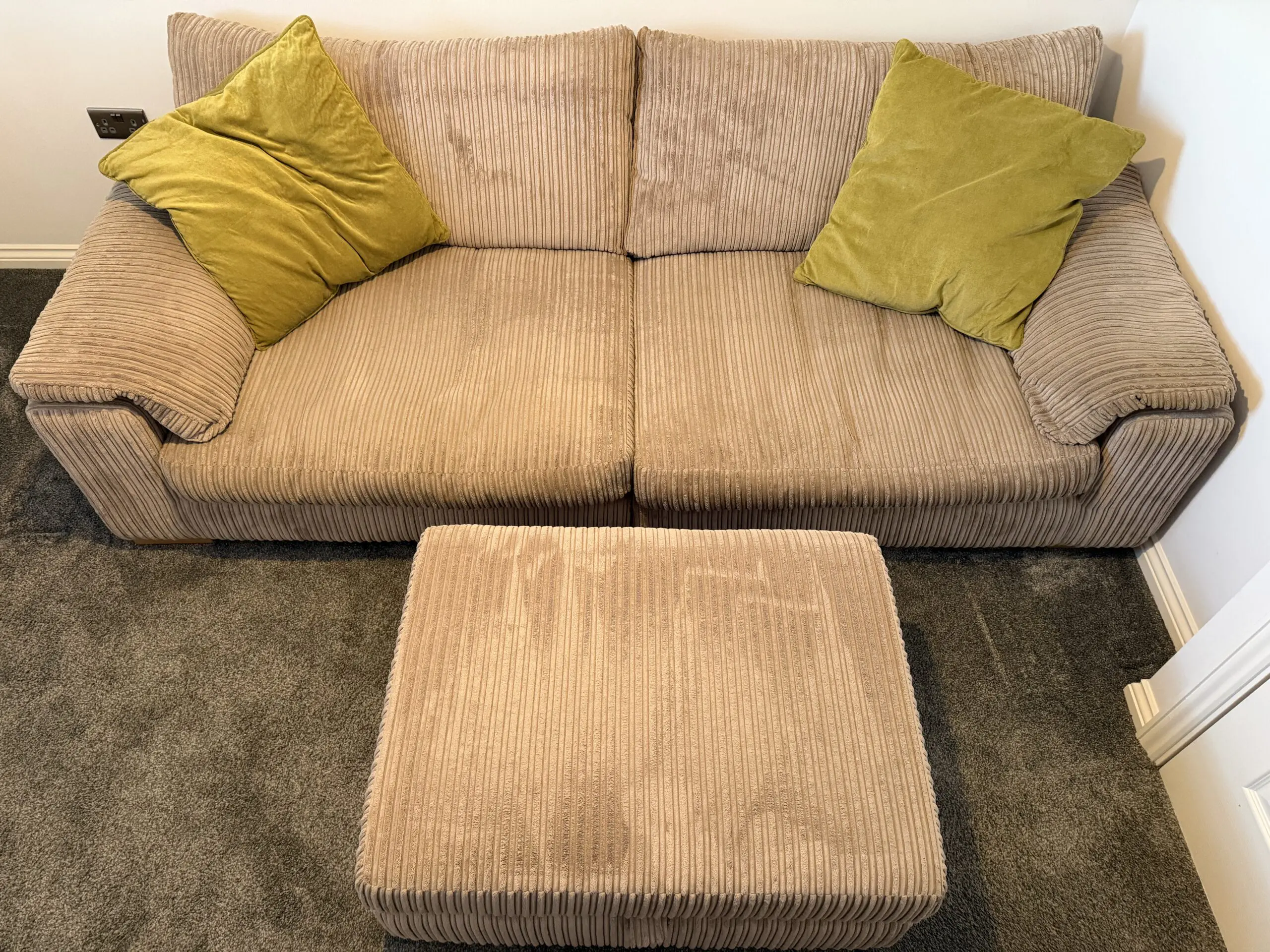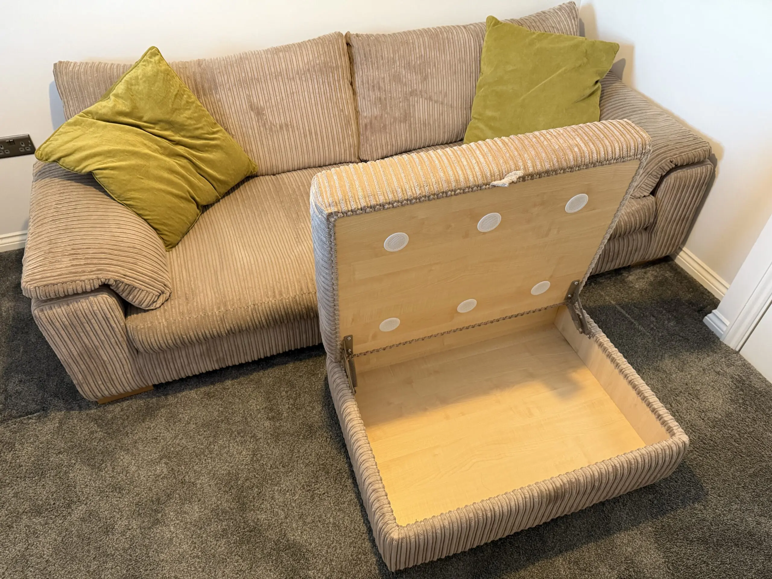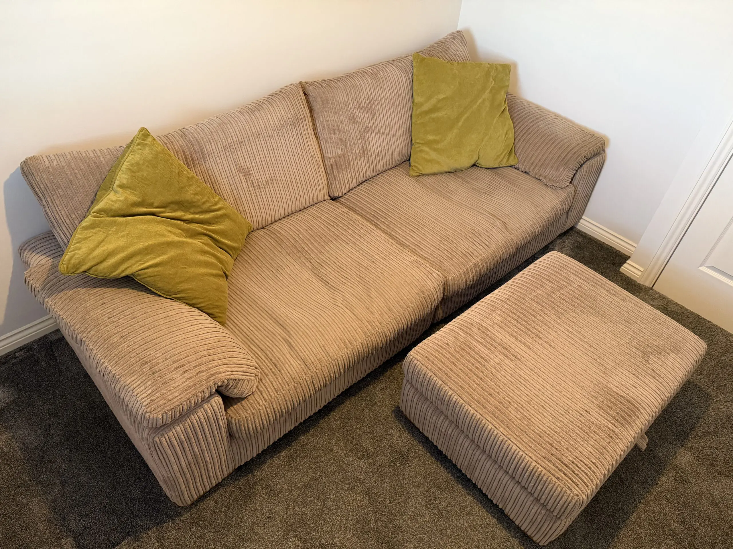 A large 4 seater that comfortably fits 4 people but had a centre split to ensure it can get into most rooms.