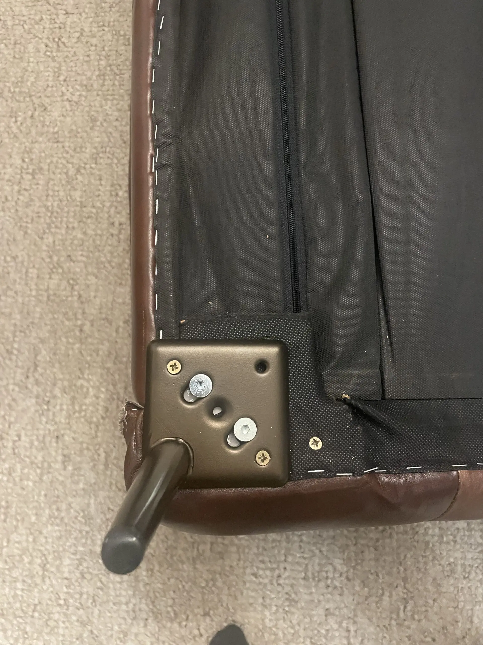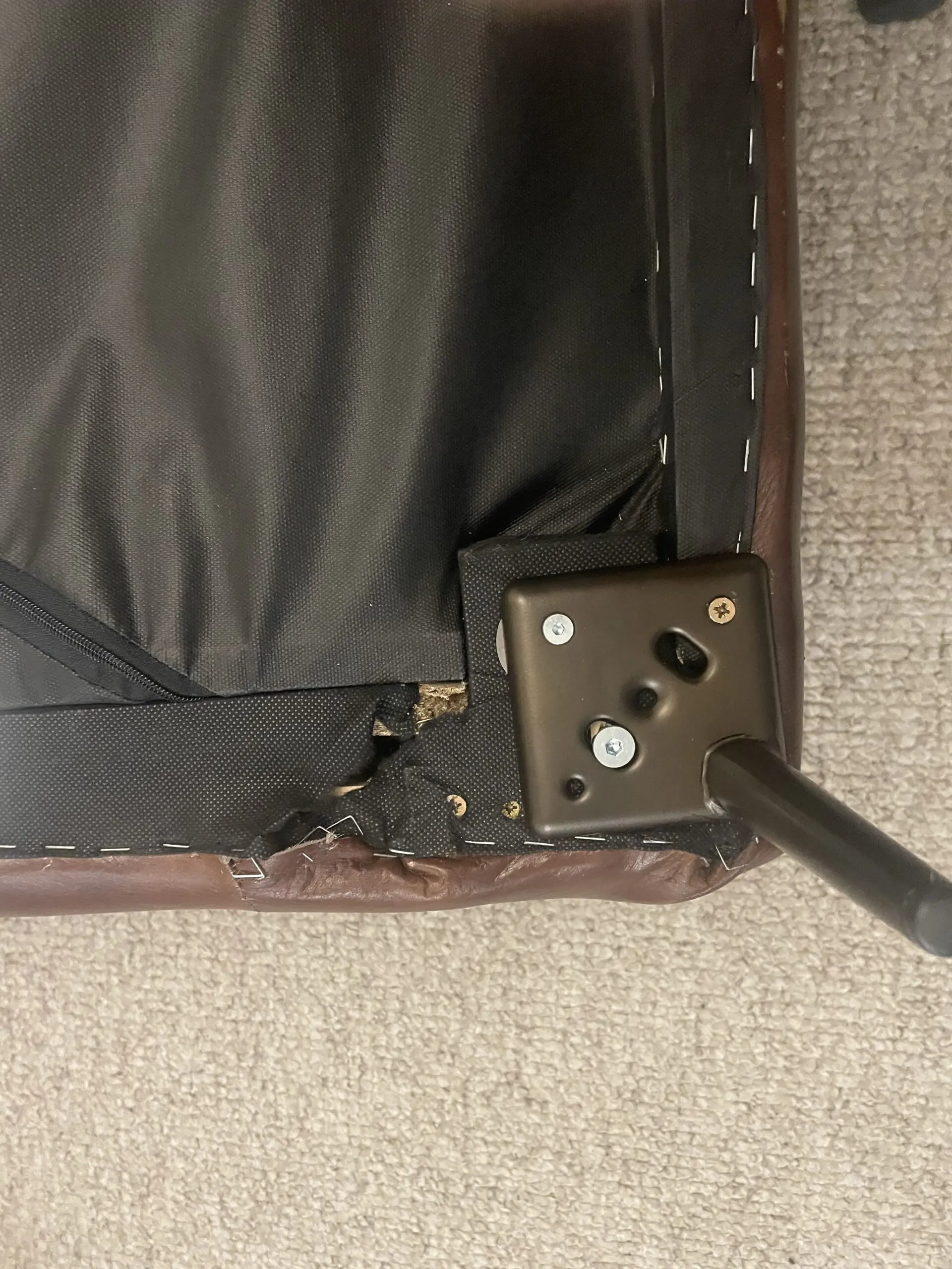 The legs have been fixed by us and sofa is now fine for use but wanted to make potential buyer aware