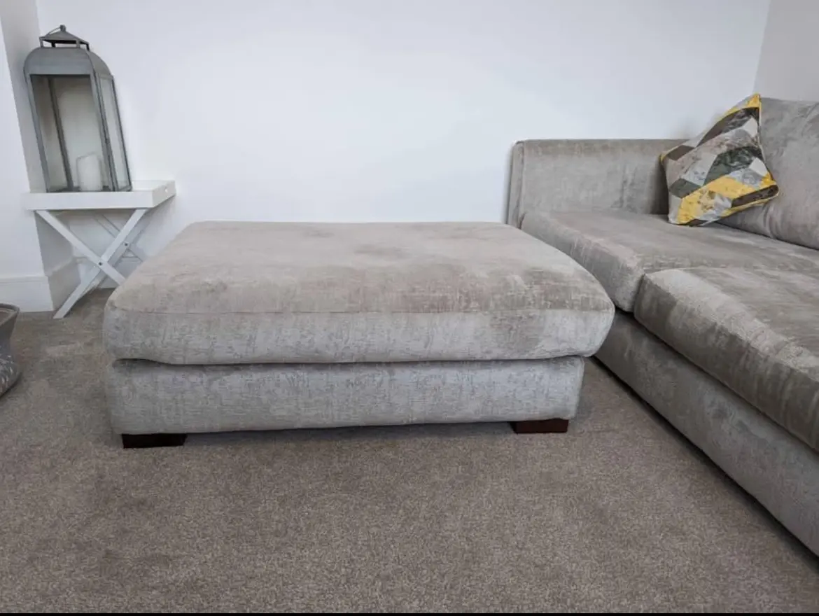 With Majestica Combi Footstool plain silver foam with walnut feet.