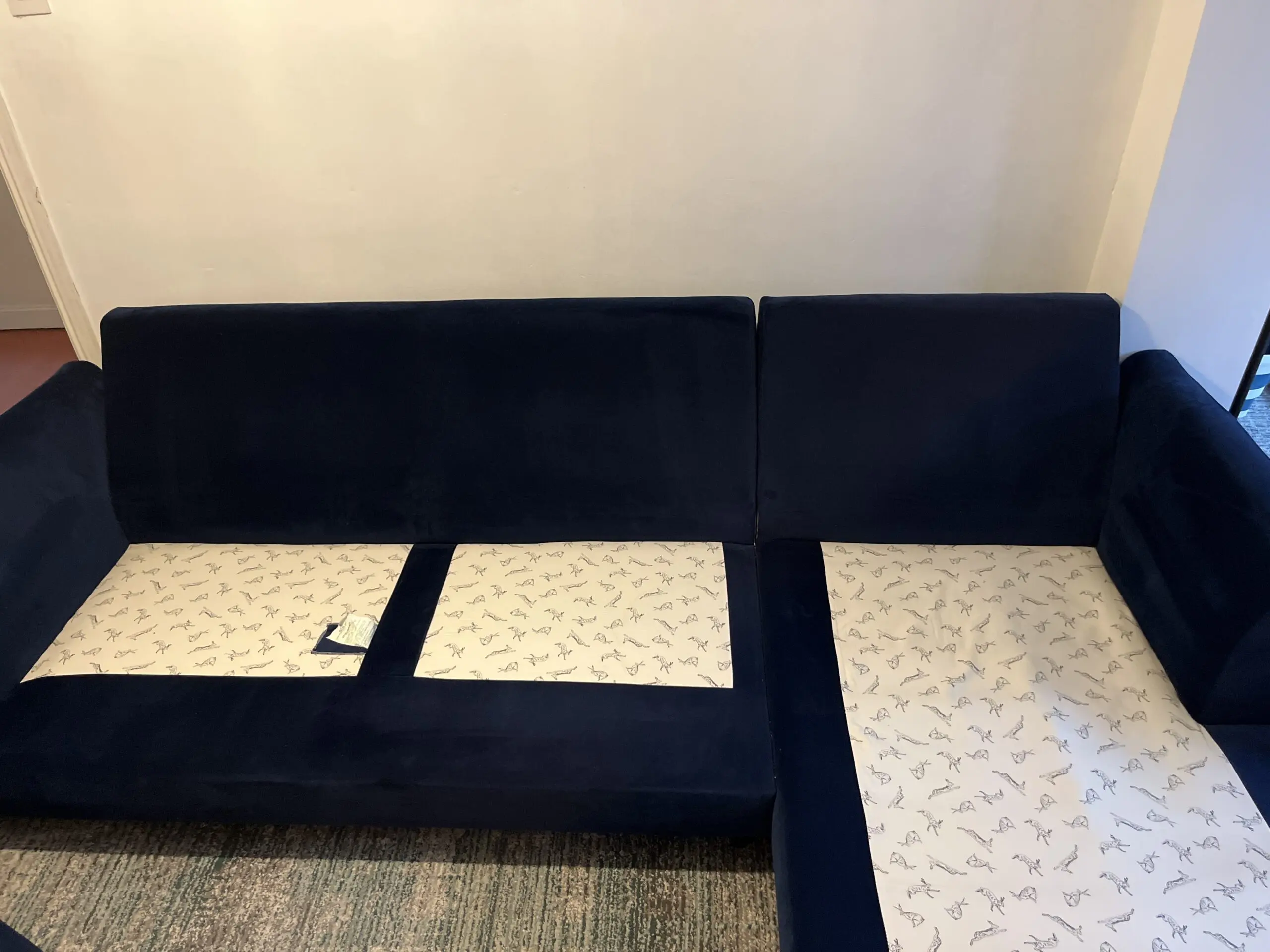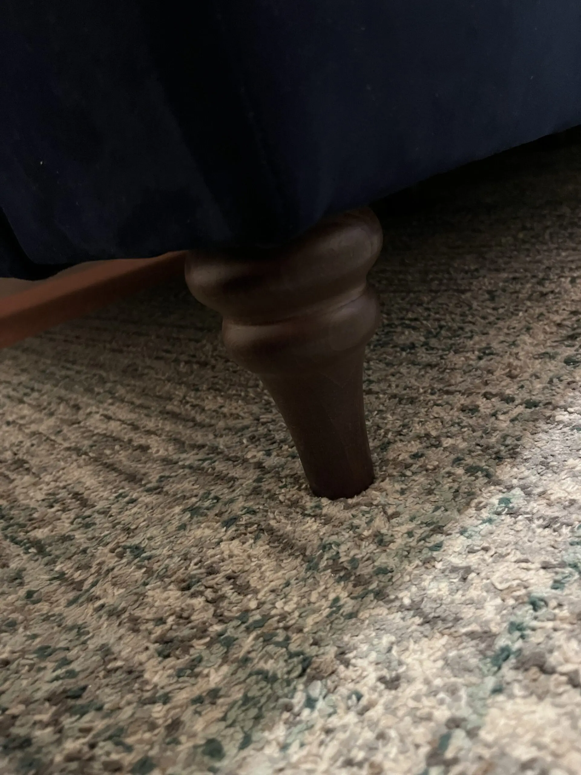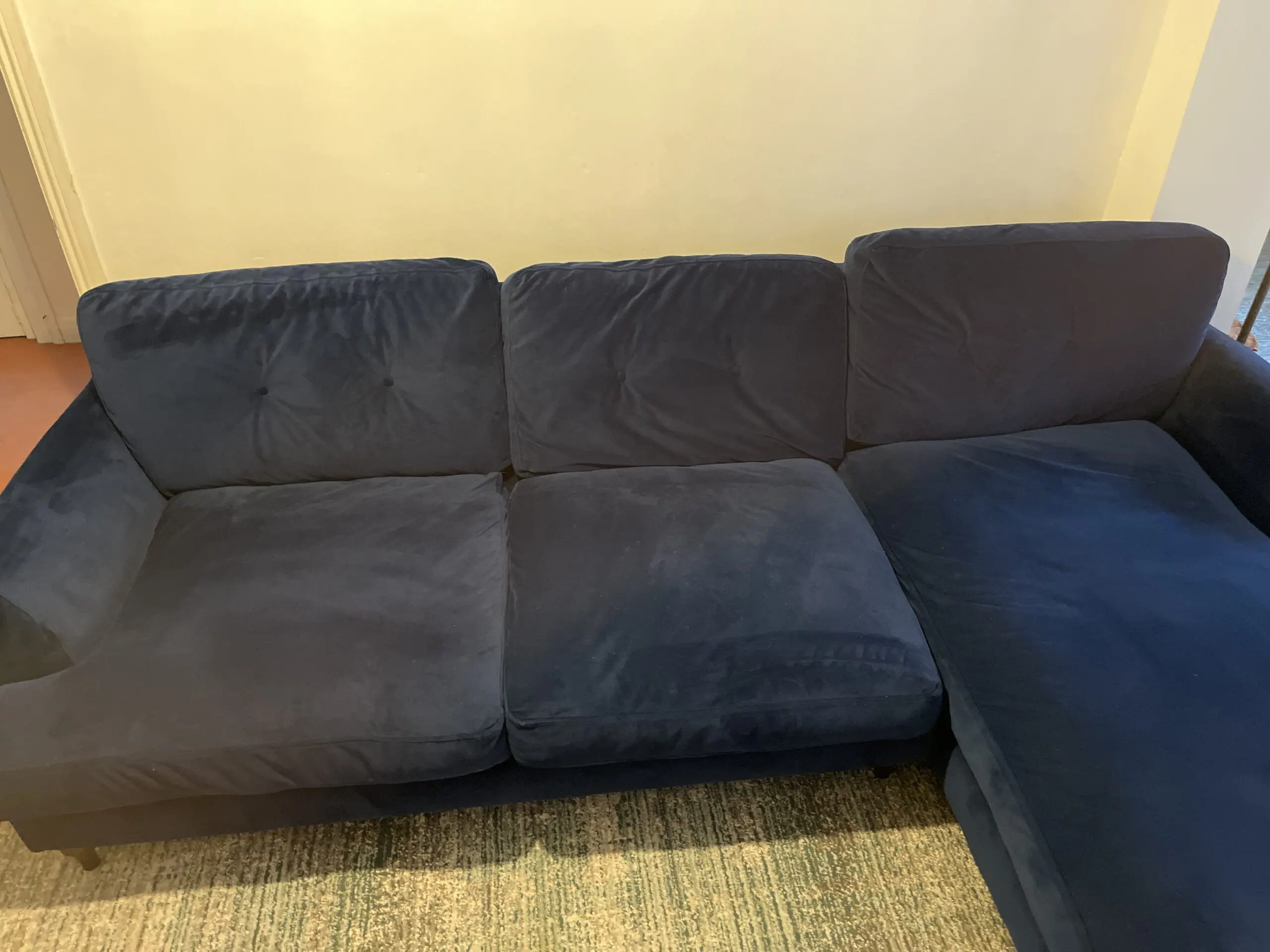 Joules for DFS – Patterdale velvet right hand facing chaise sofa in navy blue with walnut colour feet