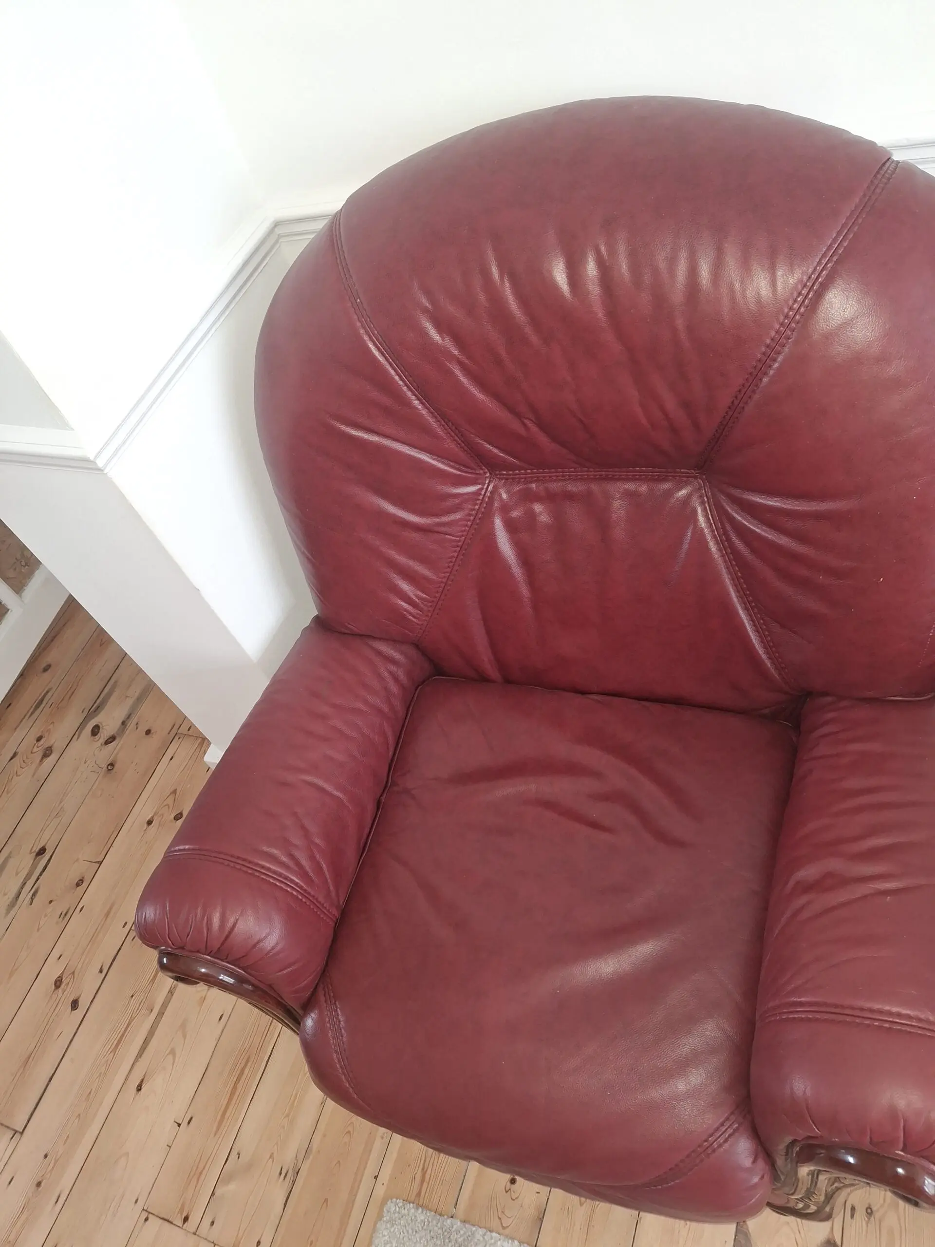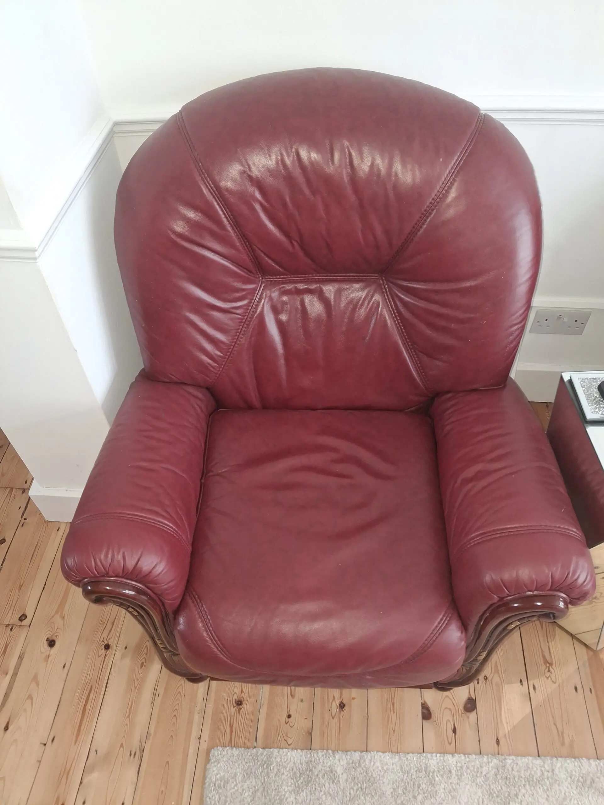 2 Reclining burgundy Leather chairs in good condition.