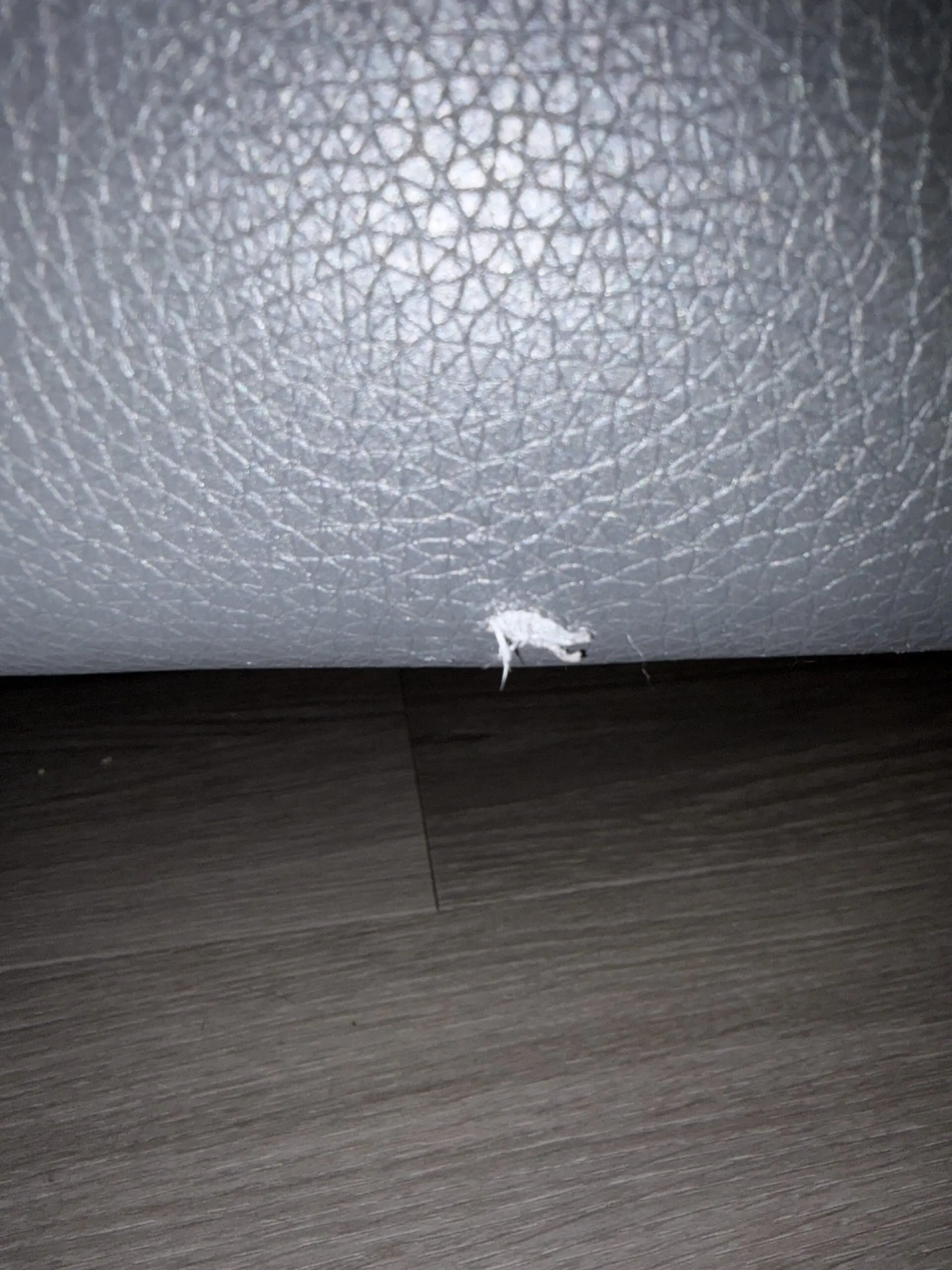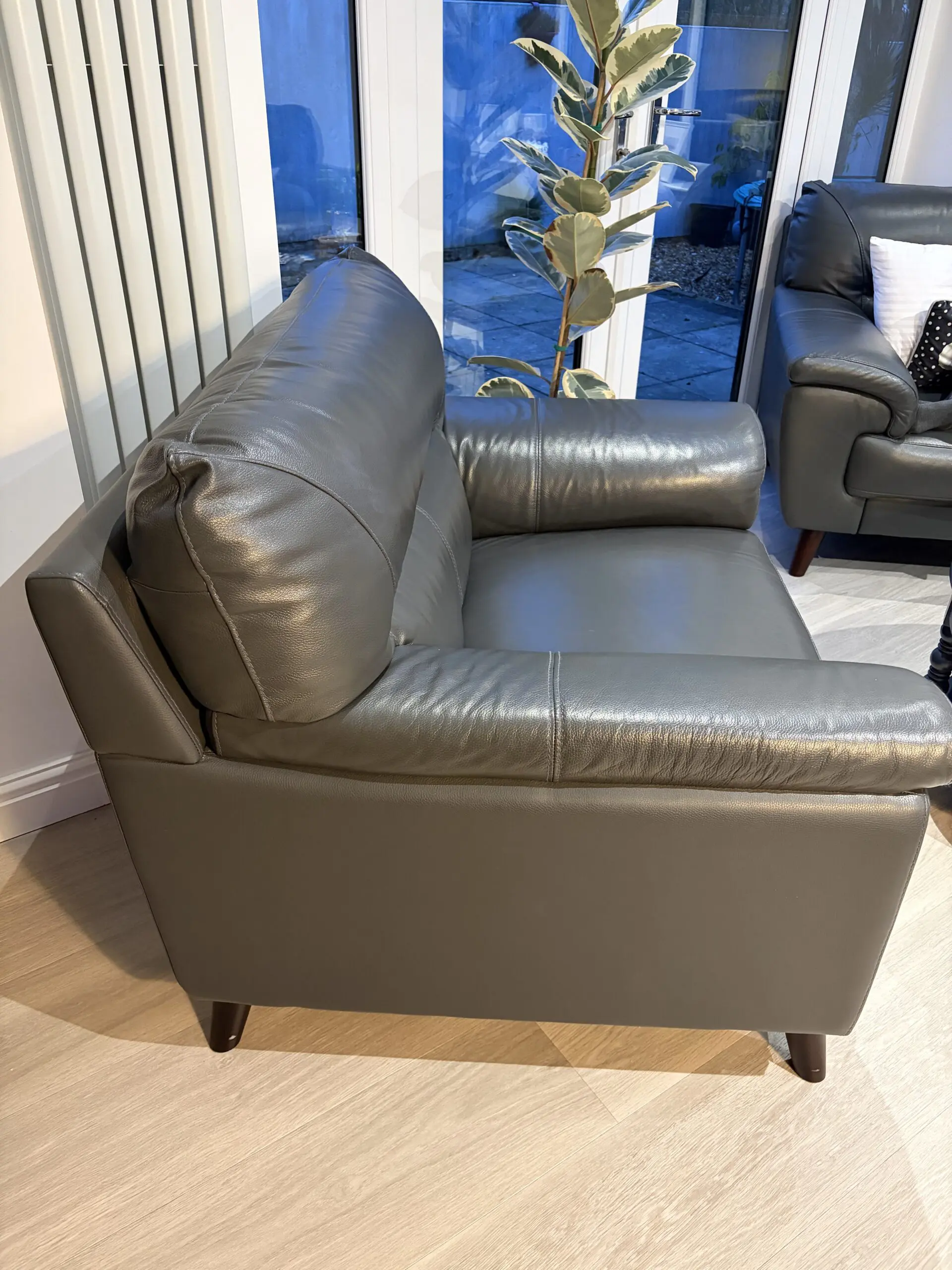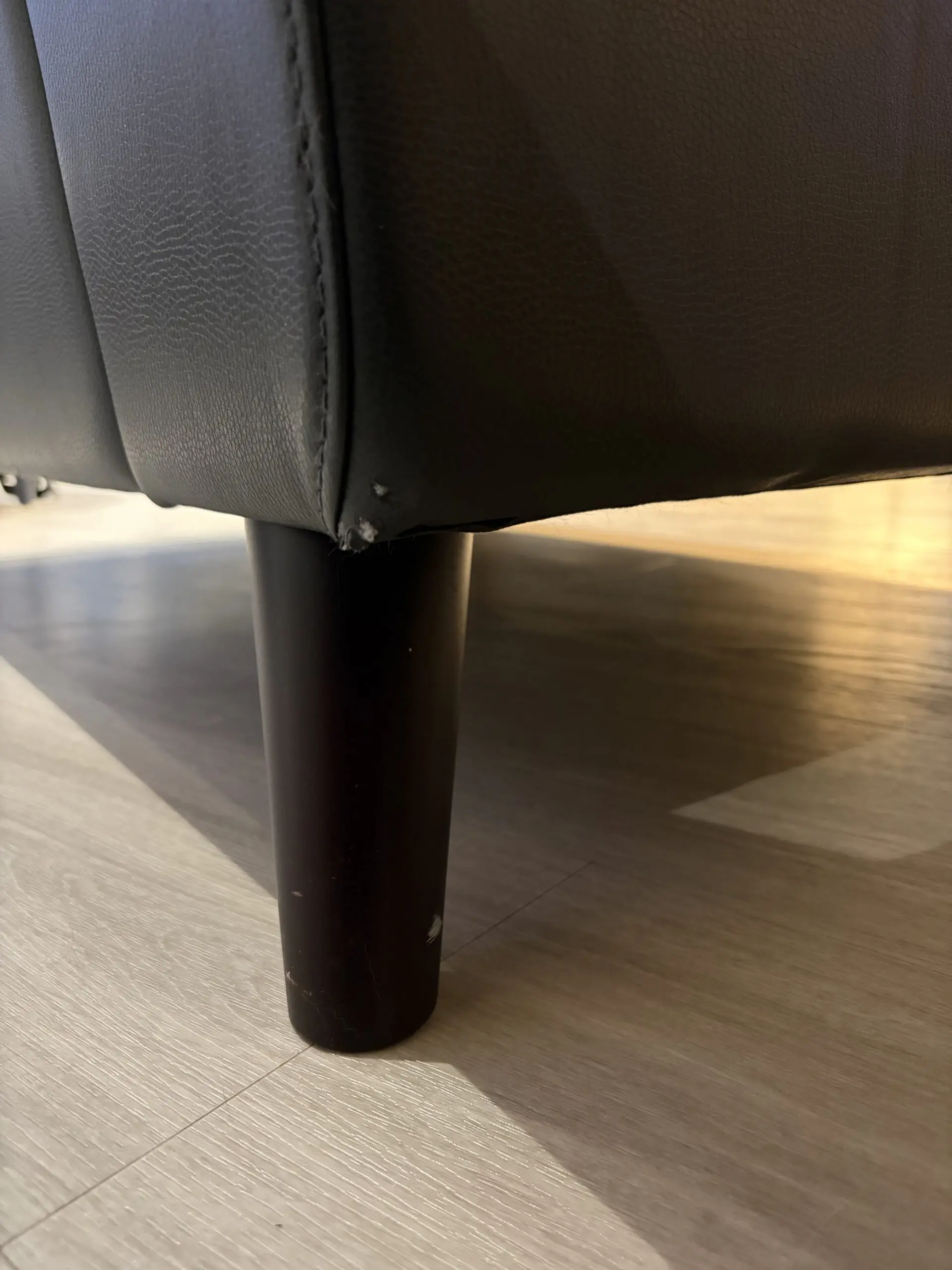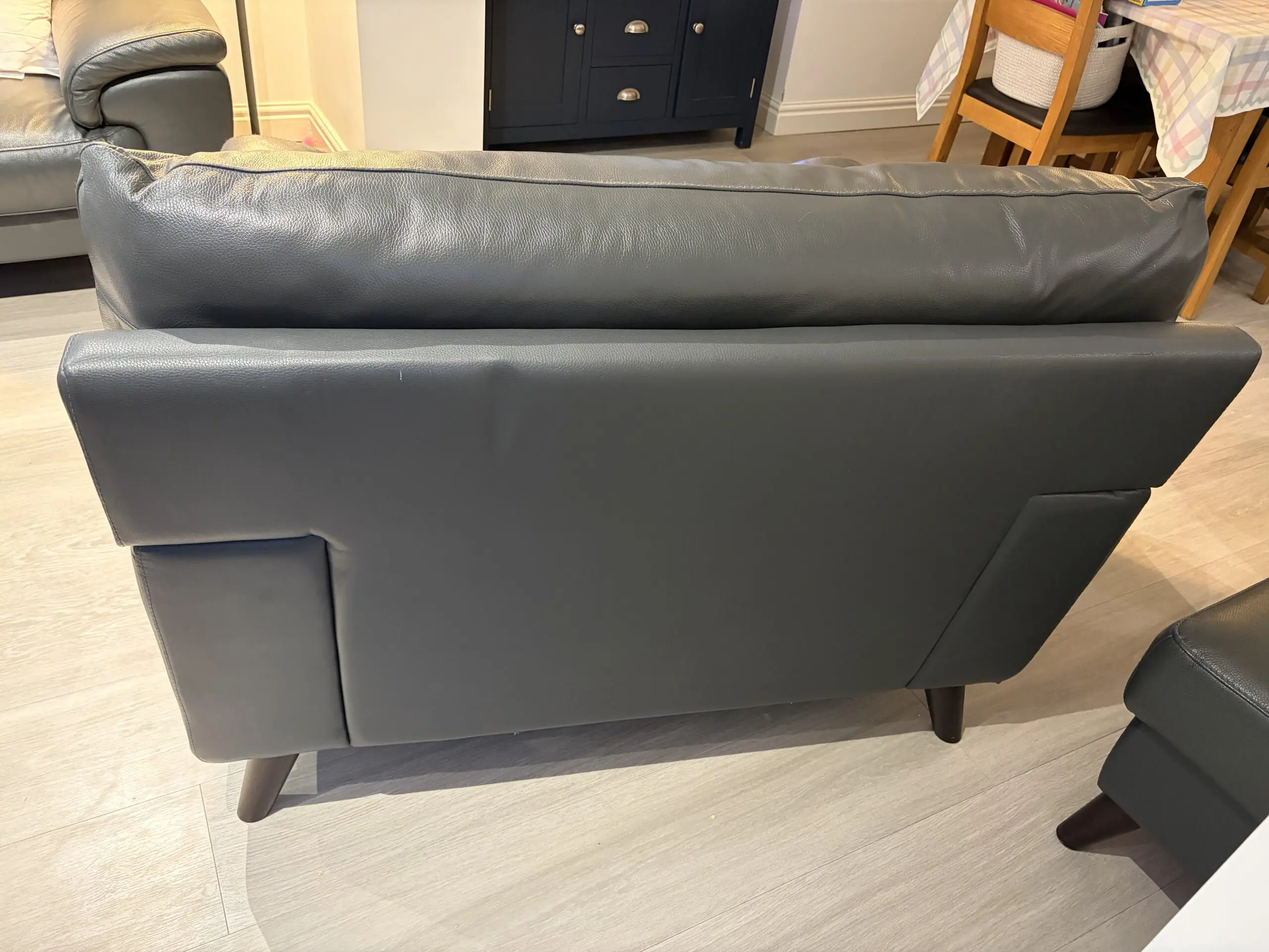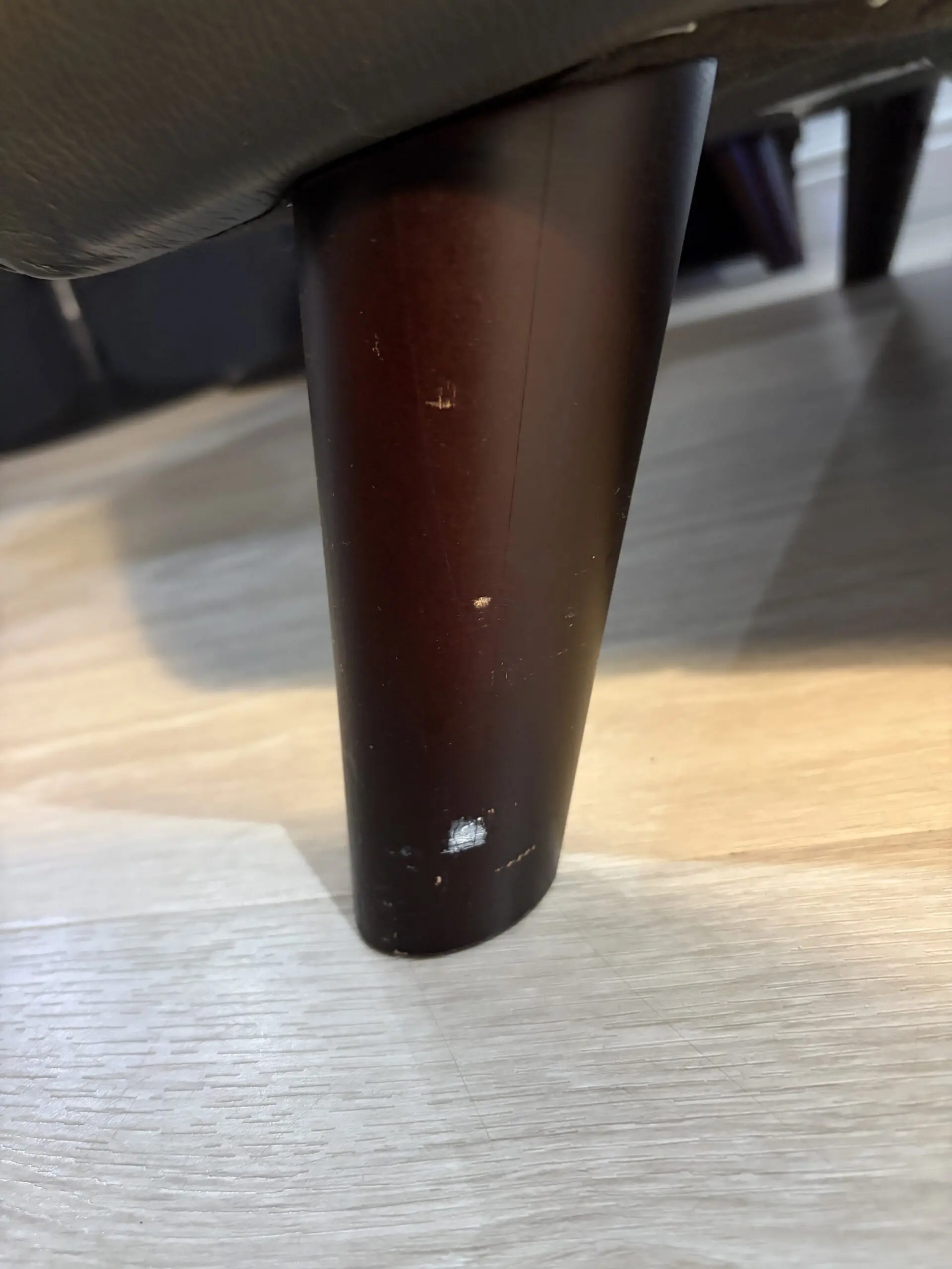 Chair in excellent condition, no dips or tears. Feet have small marks as photographed and small little nicks at bottom back from sharp skirting board.