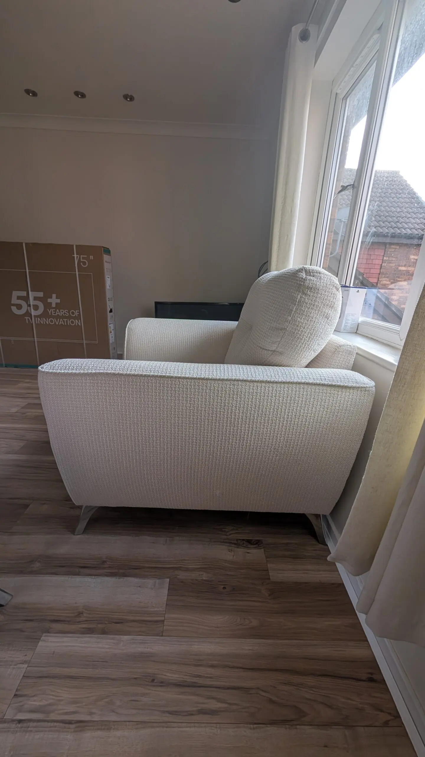 Selling my brand new armchair, in EXCELLENT condition no stains! We just received it 2 weeks ago. Unfortunately we don’t have space for it. We bought it for £549 and are open to discussing the price. More photos are available upon request.