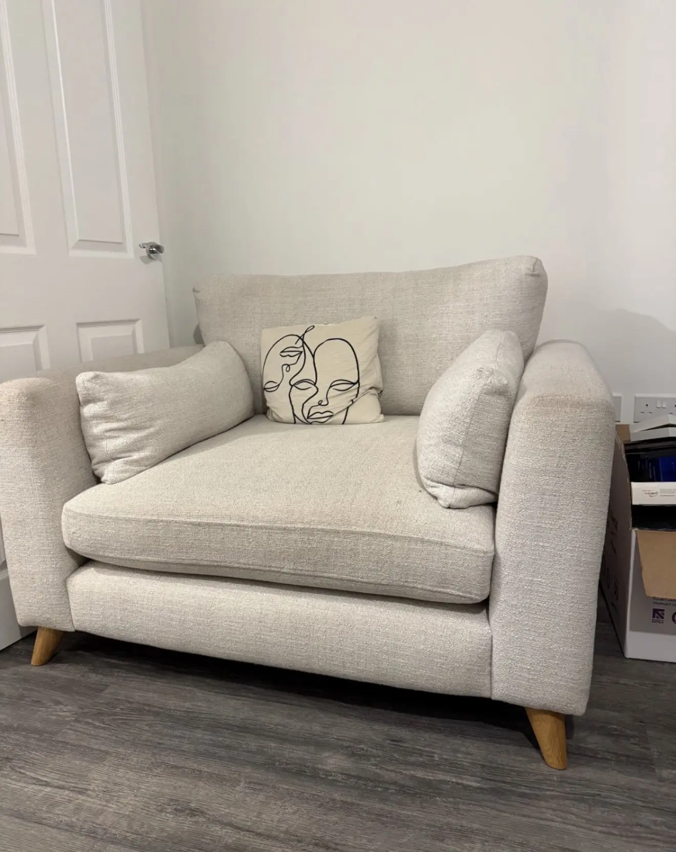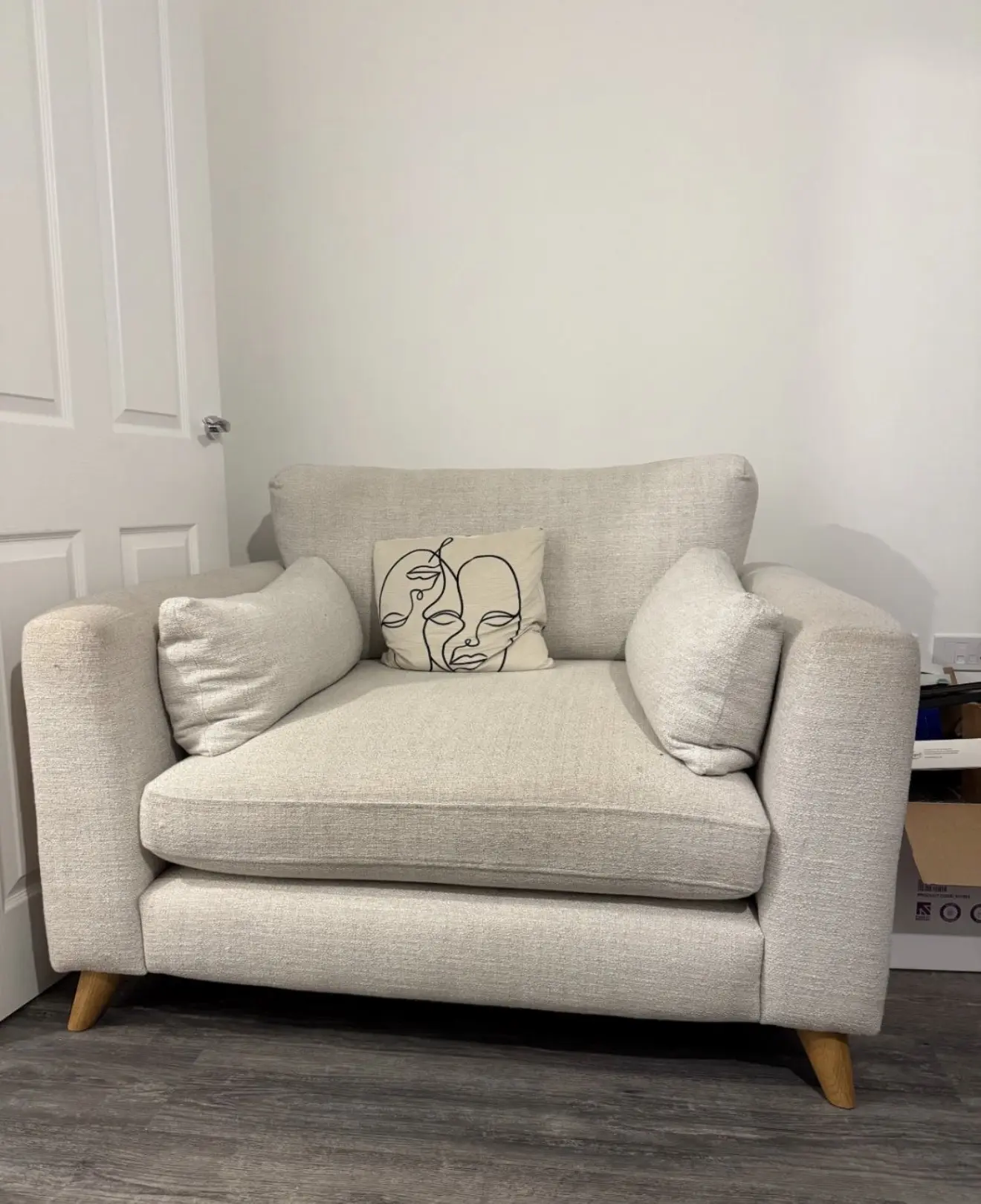 This stylish love seat combines contemporary comfort with mid-century modern design, making it perfect for smaller living spaces or as an accent piece. The clean lines and wooden legs give it a Scandinavian-inspired look that works beautifully in any modern home. With generous cushioning and supportive arms, it comfortably seats two people. The neutral colour makes it easy to style with existing décor, while the compact size is ideal for flats, reading nooks, or cosy corners.