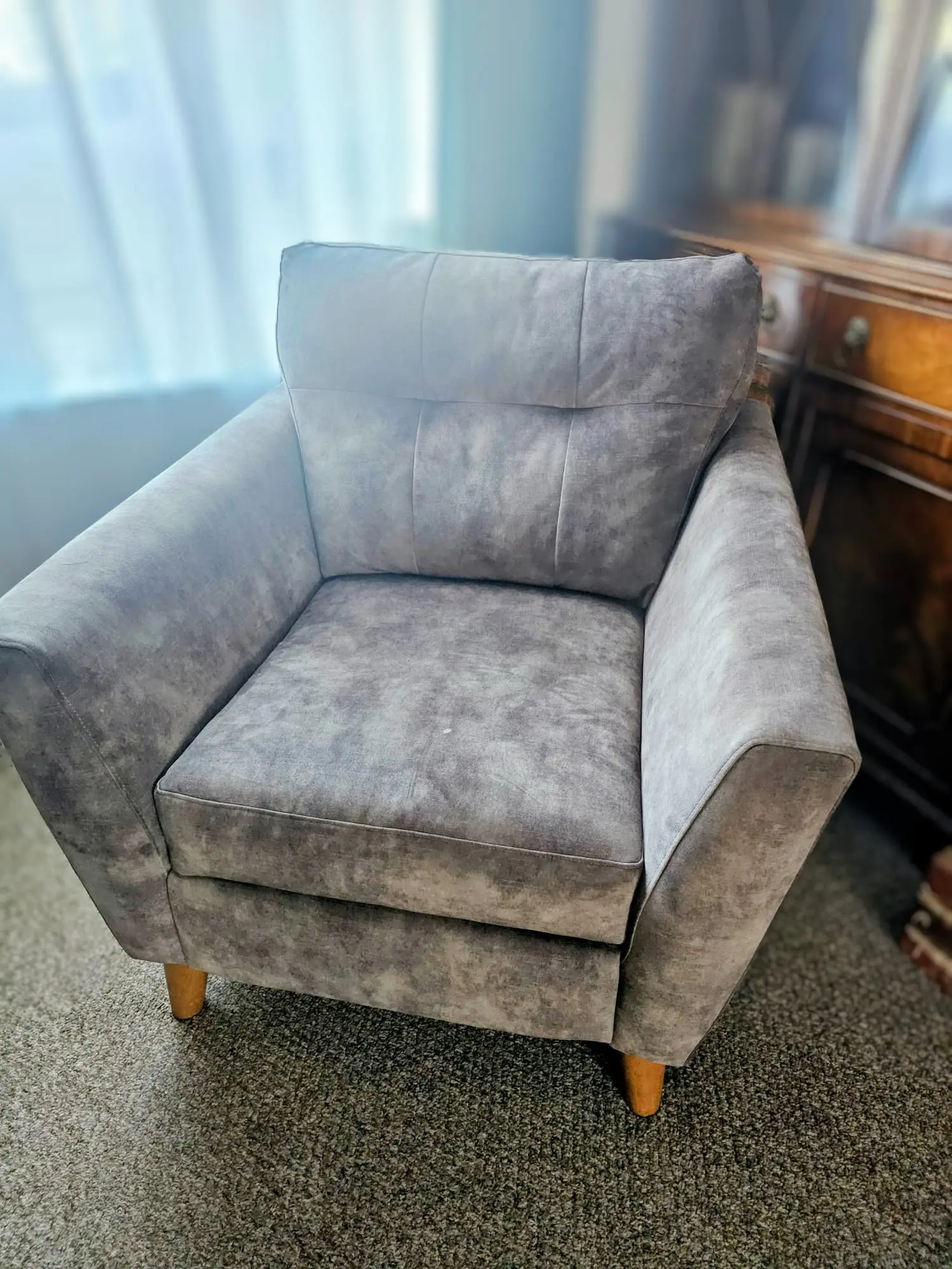 Brought brand new just a couple of months ago, it is a beautiful armchair but has gone unused in our house so it still in perfect condition. Brought for £849 so you’ll be getting a good deal