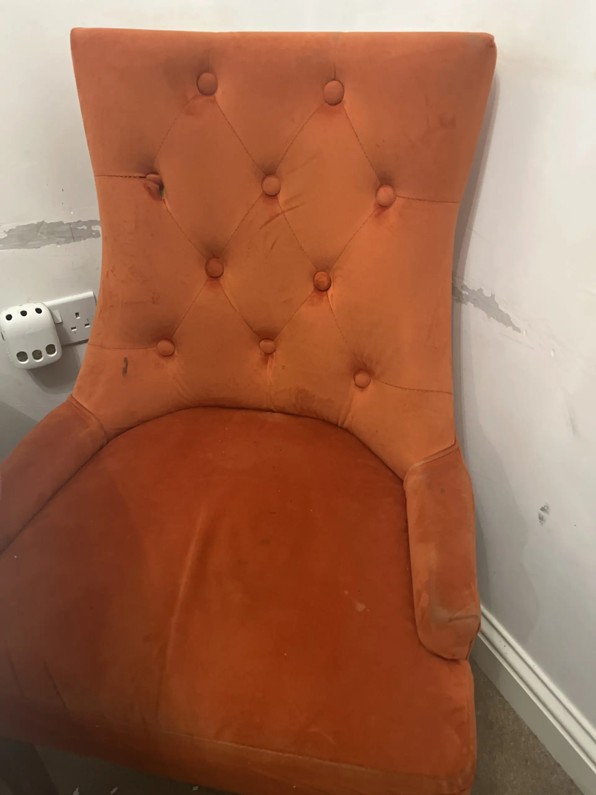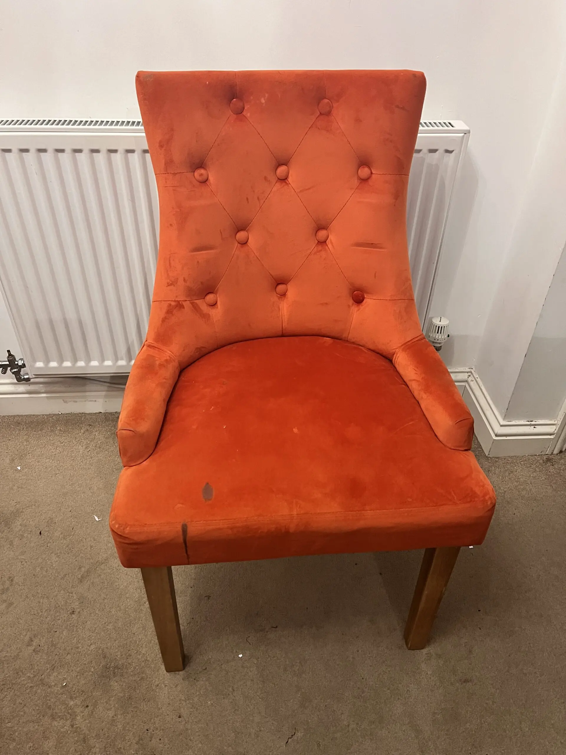 4 dining chairs. One of it as 1 broken leg that can be easily nailed/fixed