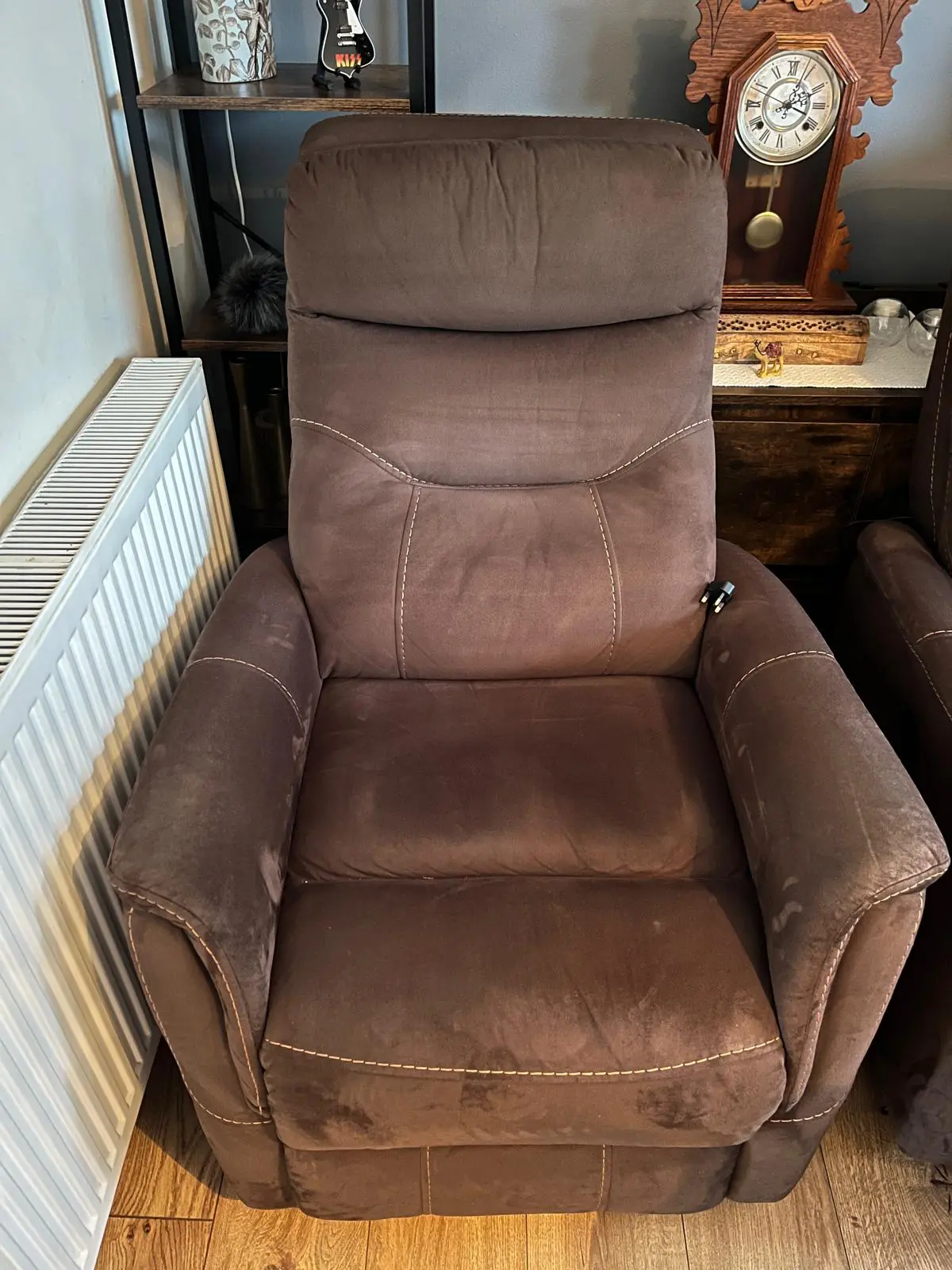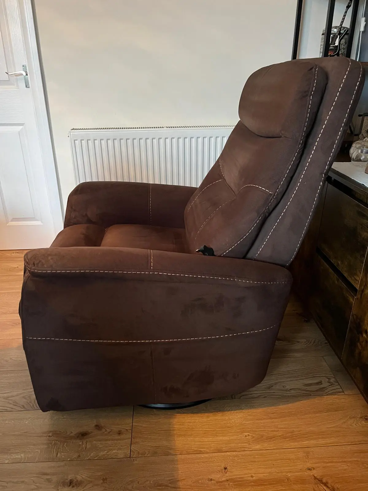 Sued type fabric Electric recliner chairs. Both have swivel and rocking function