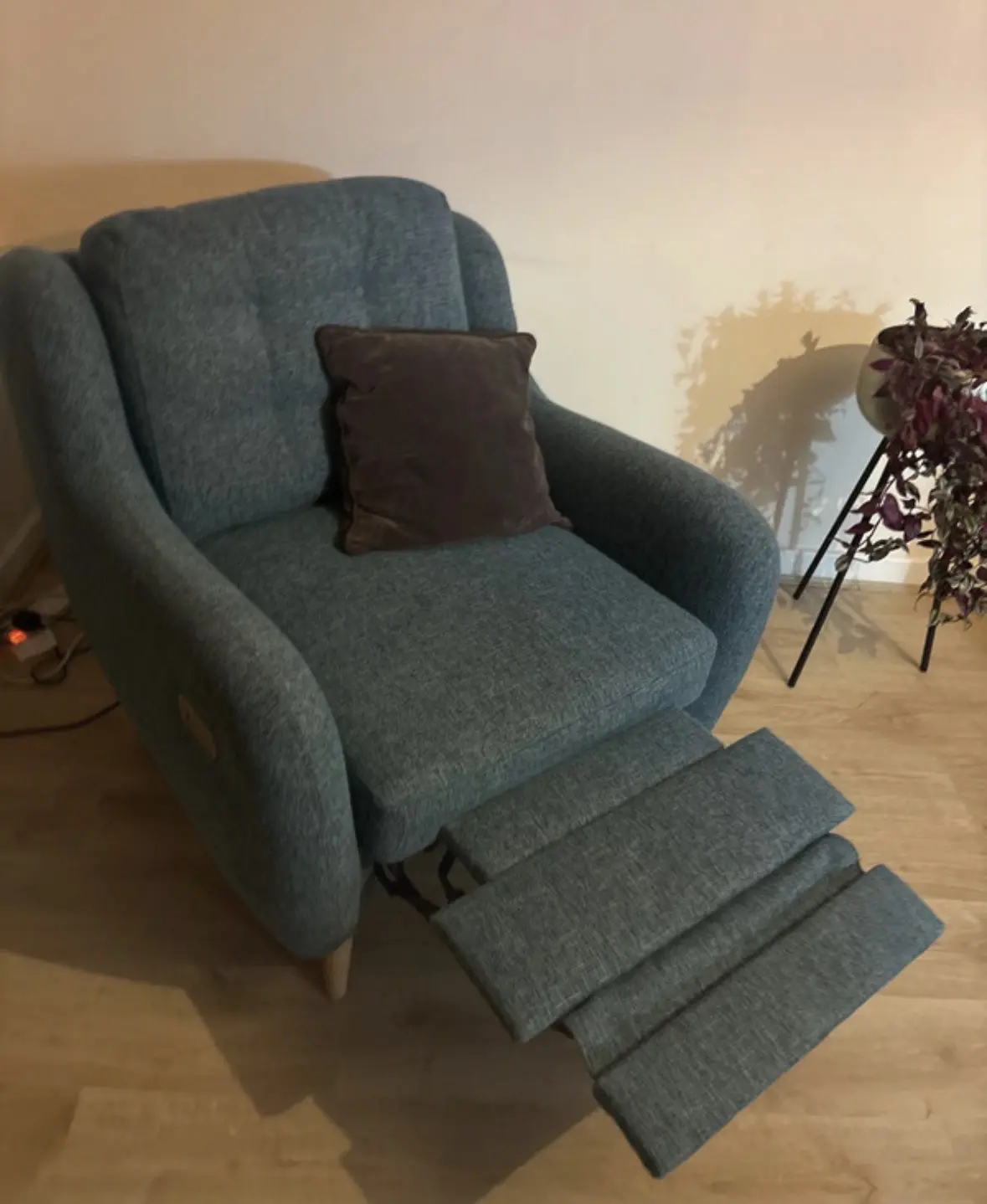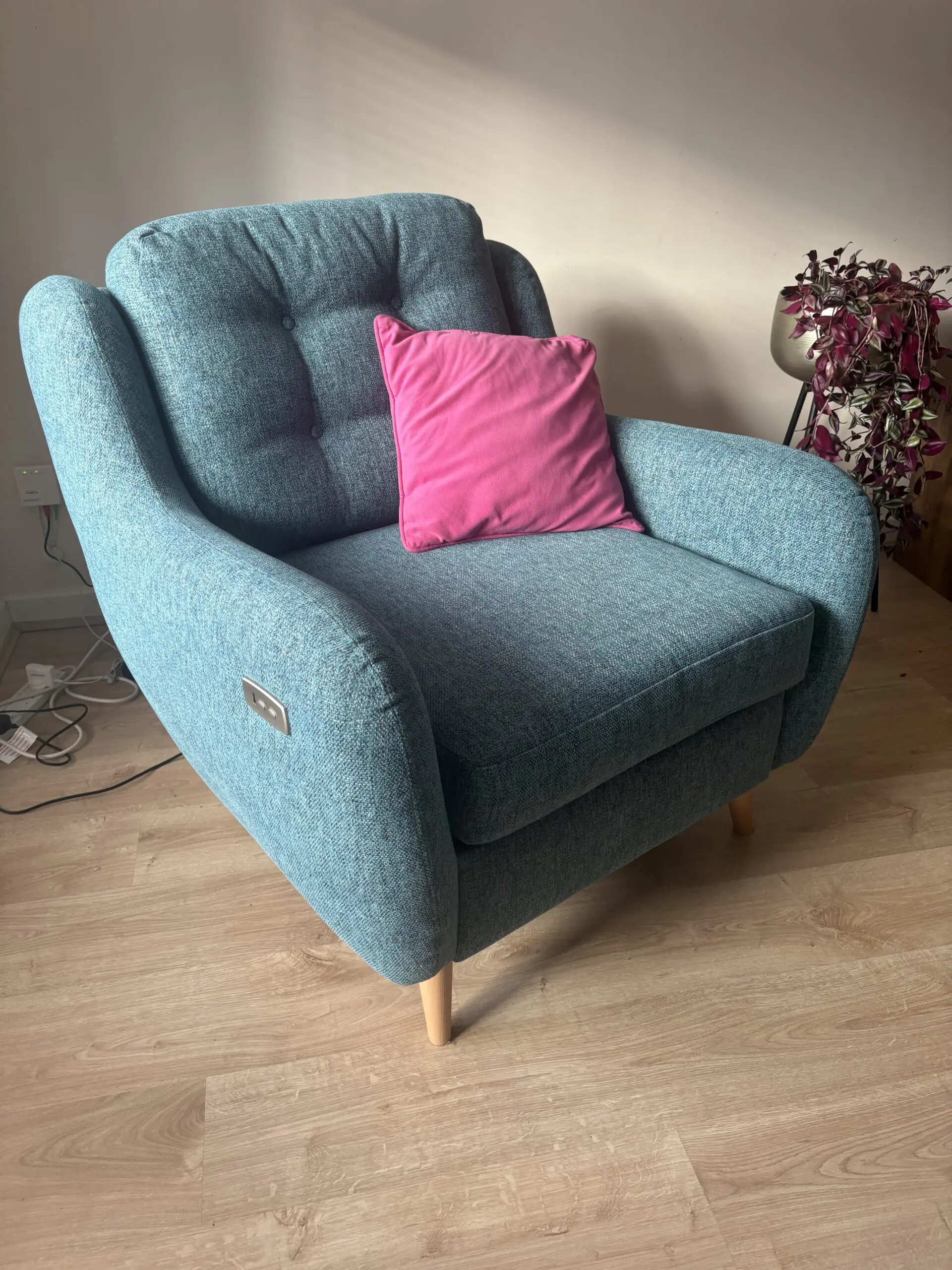 DFS French Connection Zinc electric recliner chair with usb charging port. Great condition, like new