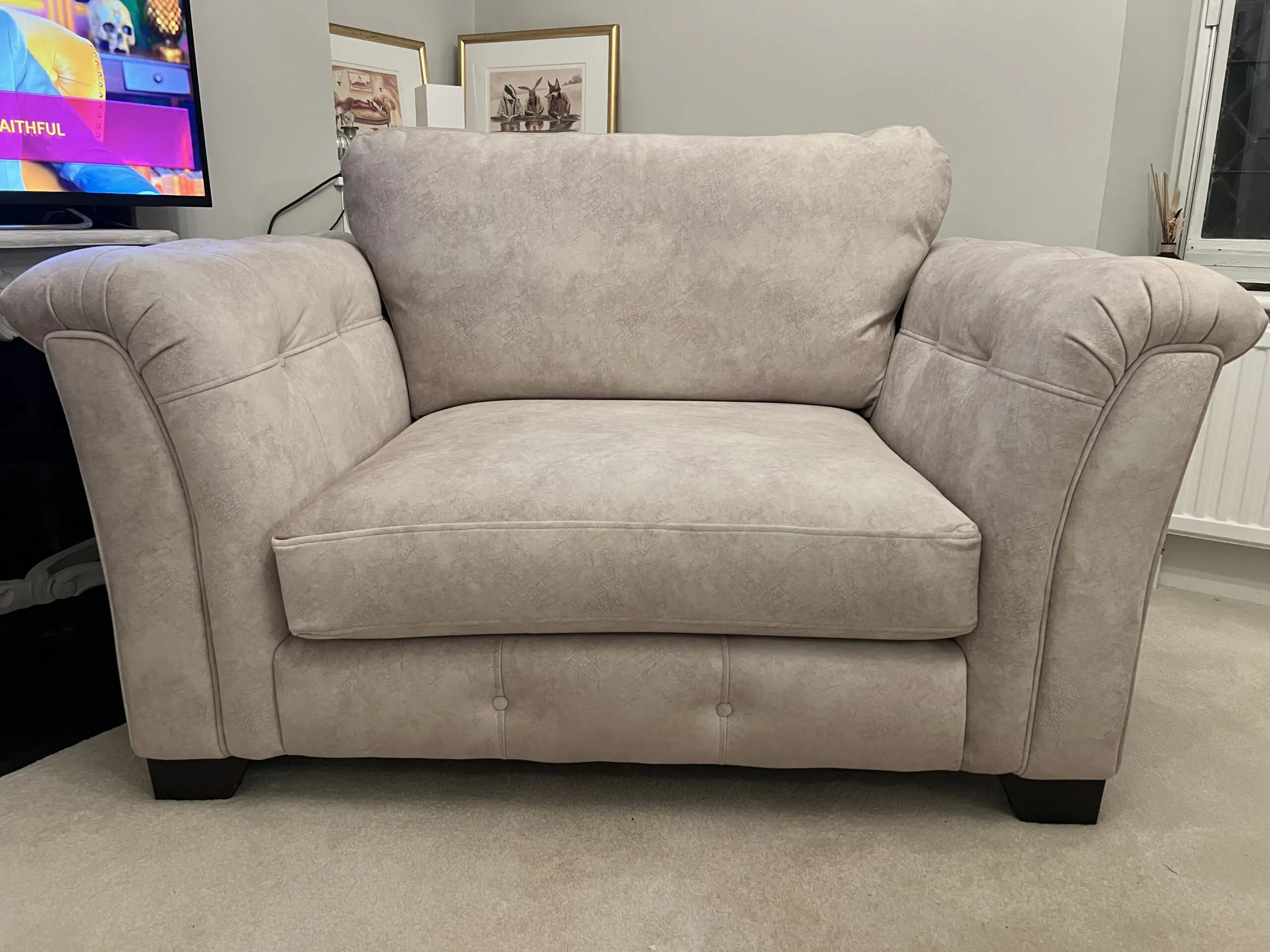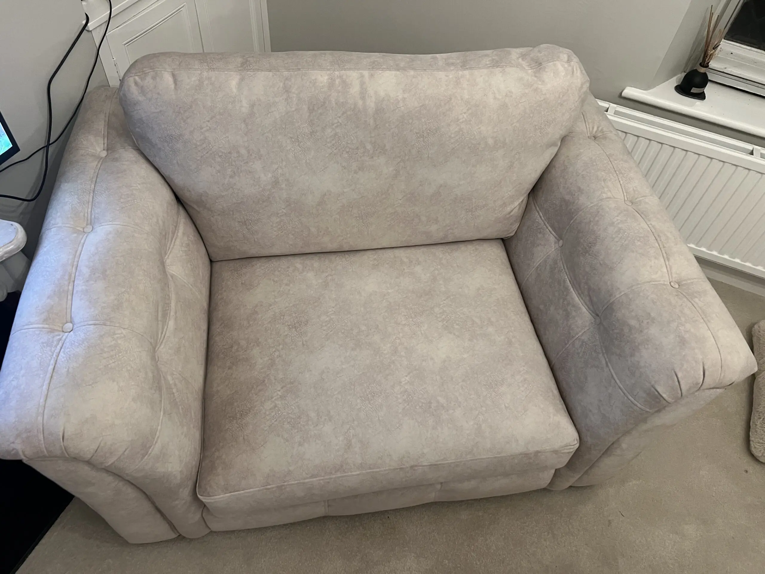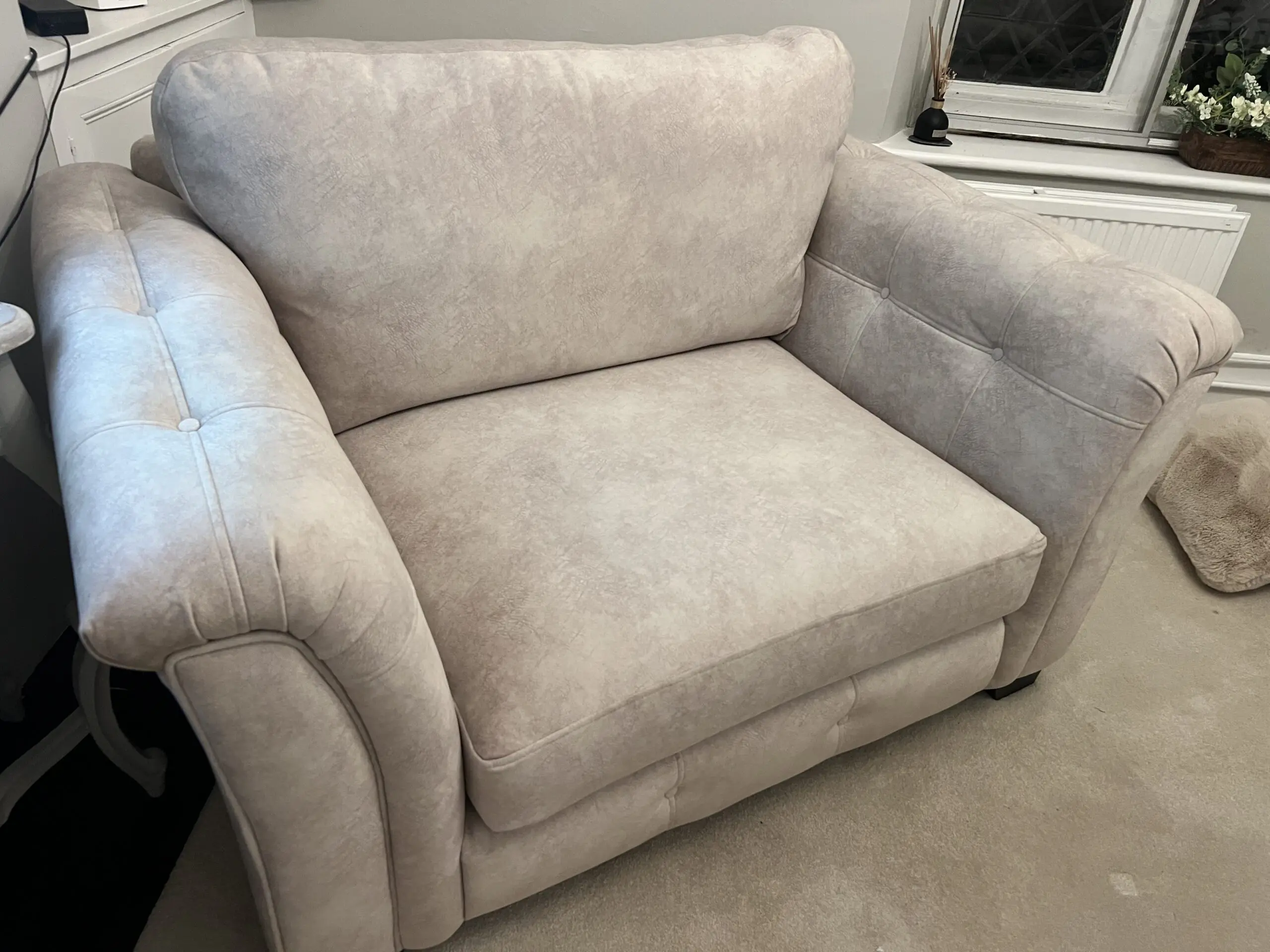 Brand new cream 2 seater love chair. Bought but unfortunately too big for the room.