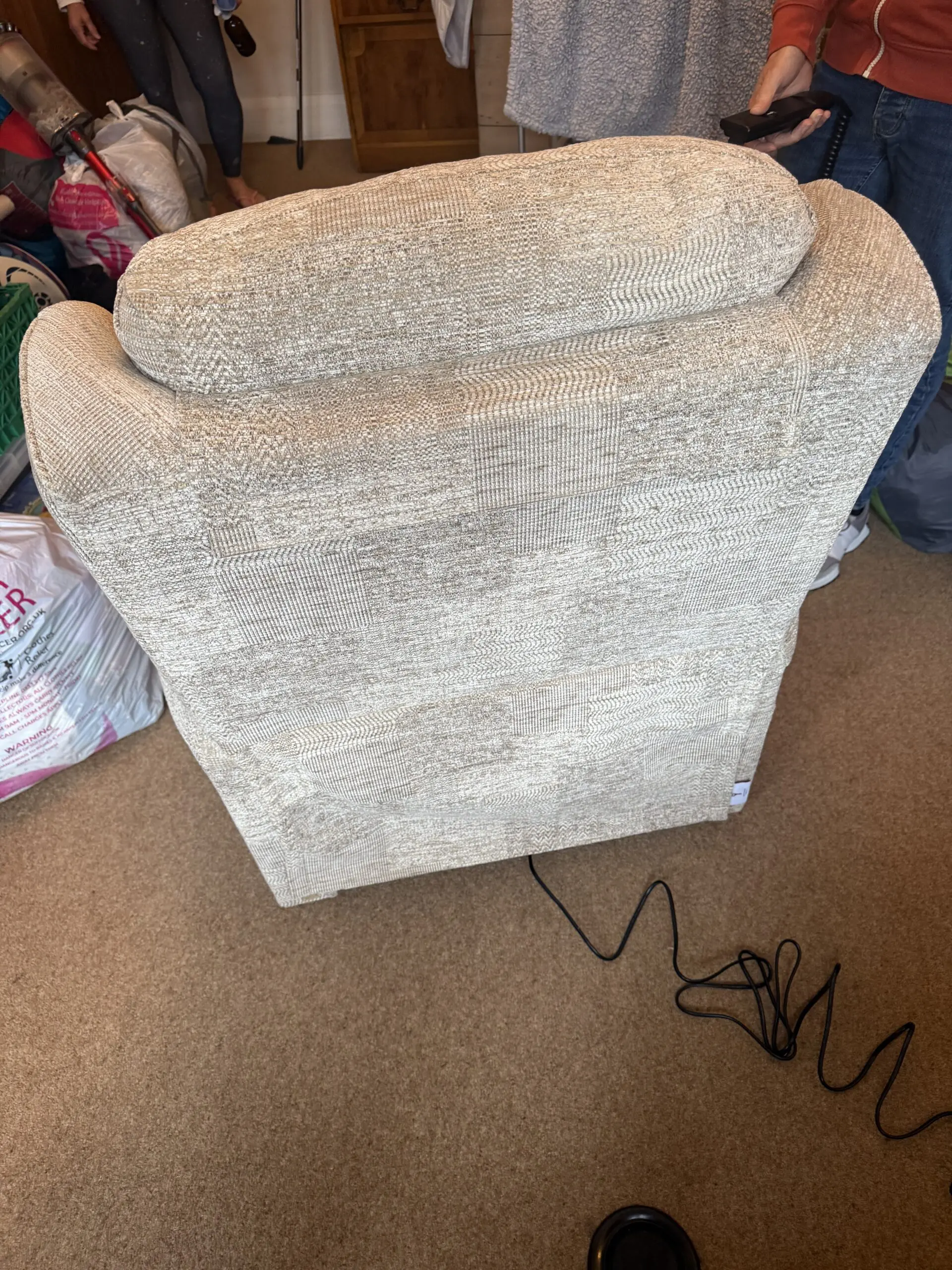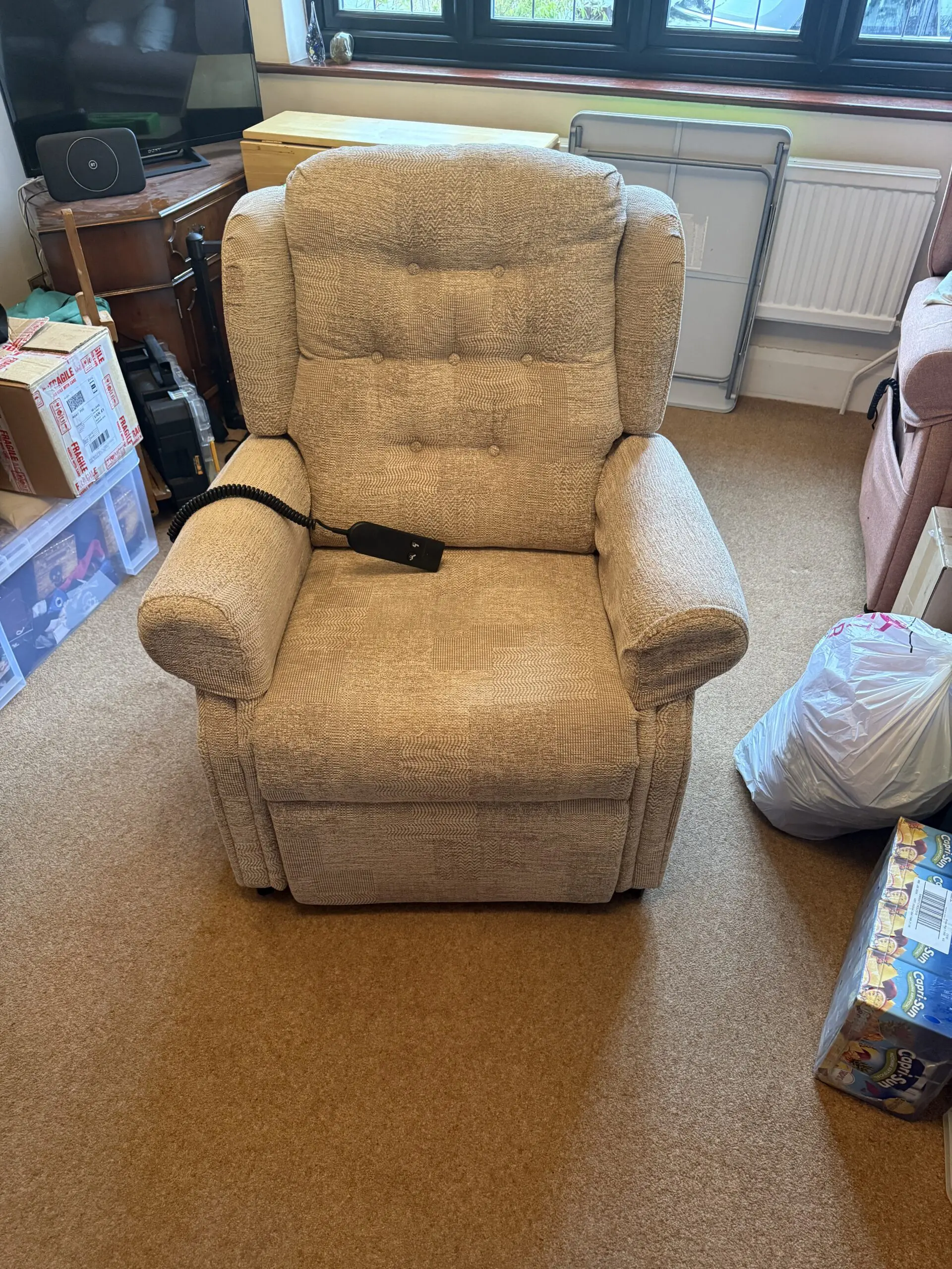 The Grosvenor Standard Single Motor Riser Recliner is a stylish and comfortable piece of furniture, perfect for any living space. With a medium firmness level and a classic round arm style, this recliner offers a supportive and adjustable seating experience. The beige blended fabric upholstery adds a touch of elegance, while the electric recliner feature allows for easy adjustment to find the perfect seating position. Made in the United Kingdom, this floor-level recliner also includes a fold-away backrest and removable cover for added convenience. Ideal for relaxation and comfort, this recliner is a valuable addition to any home.