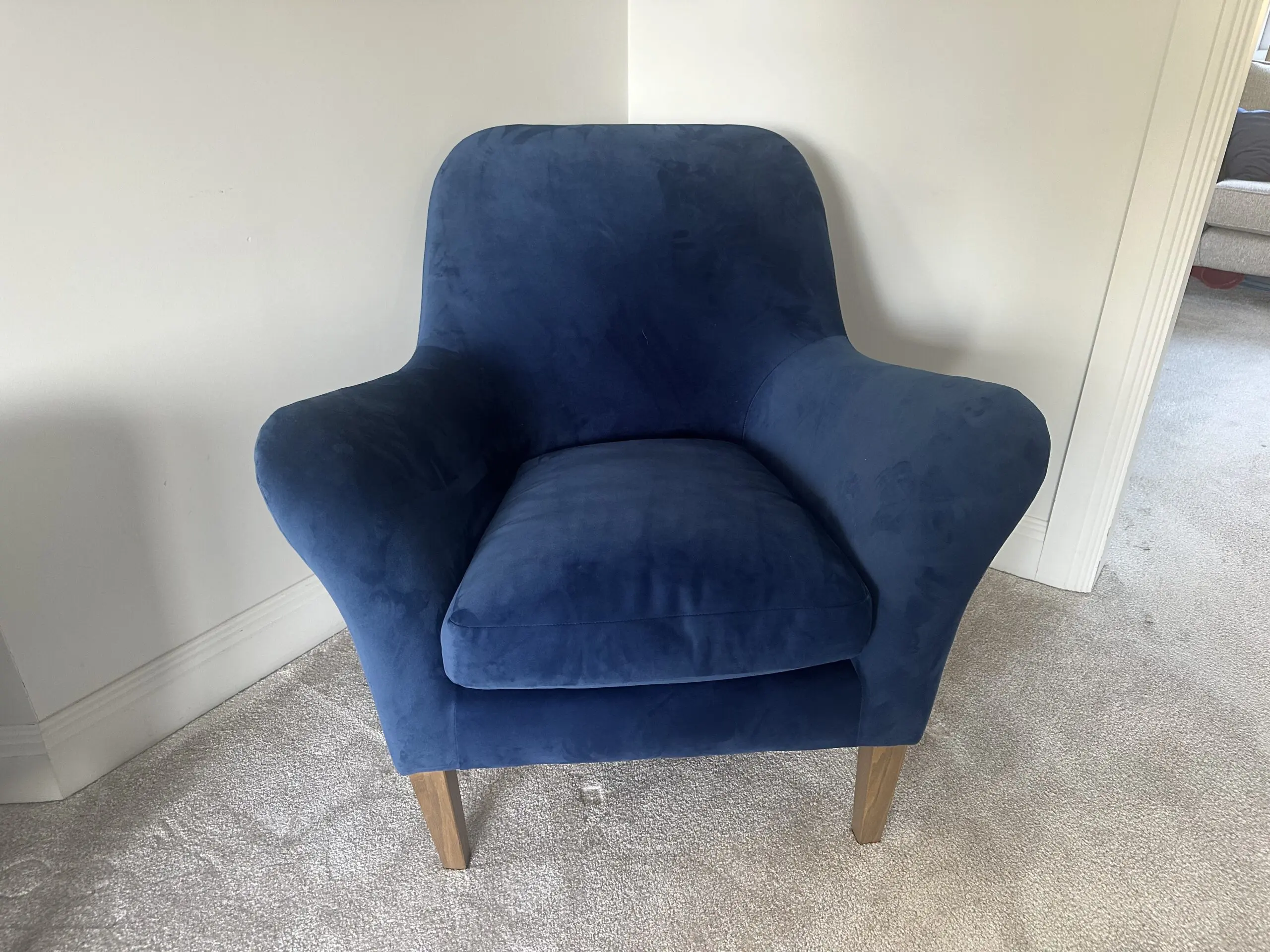 Upholstered in stain resistant βSmart Velvetβ. Rarely used, in great condition.