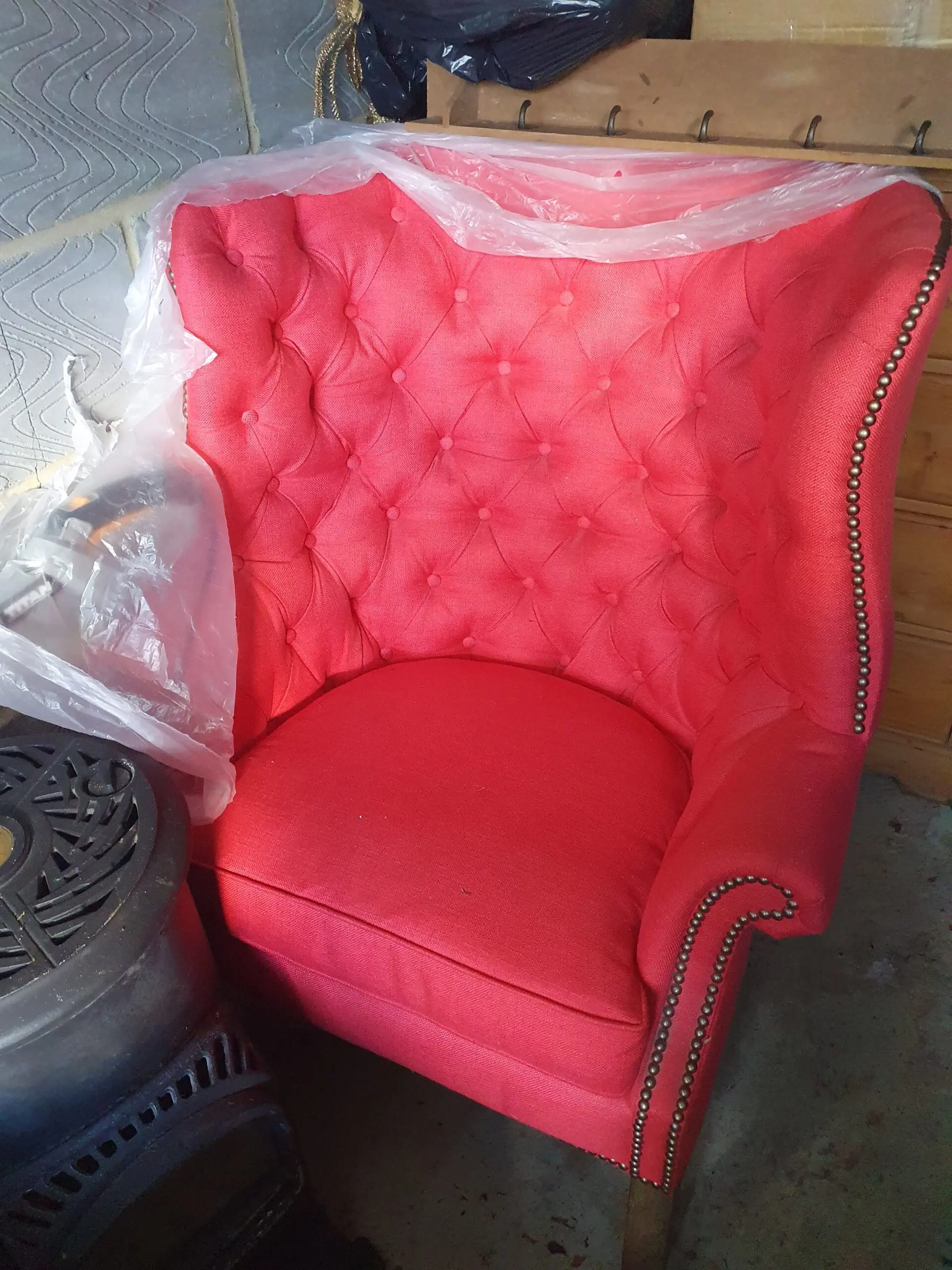 Beautiful chair, never used, has been in storage. Very comfortable.