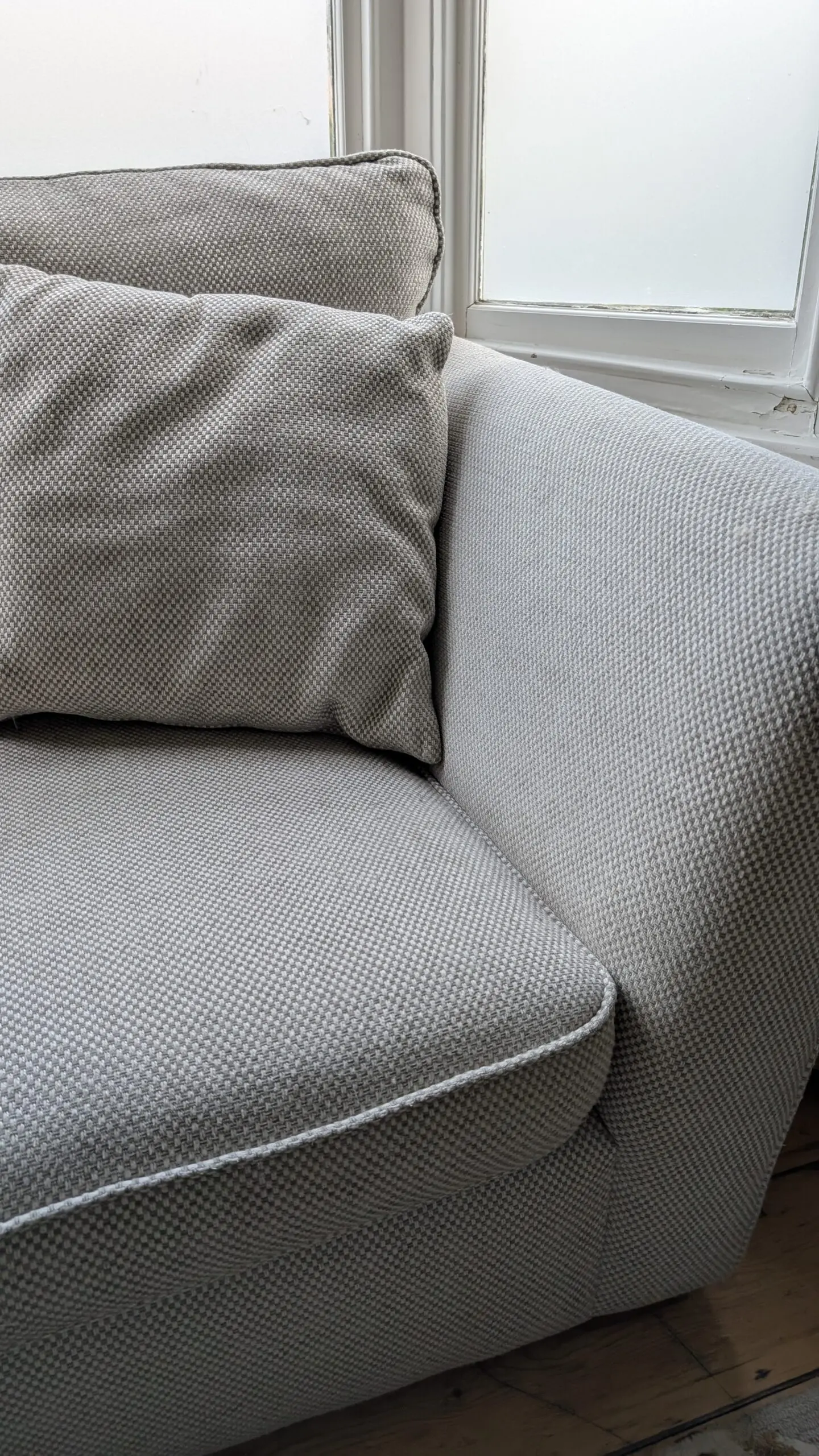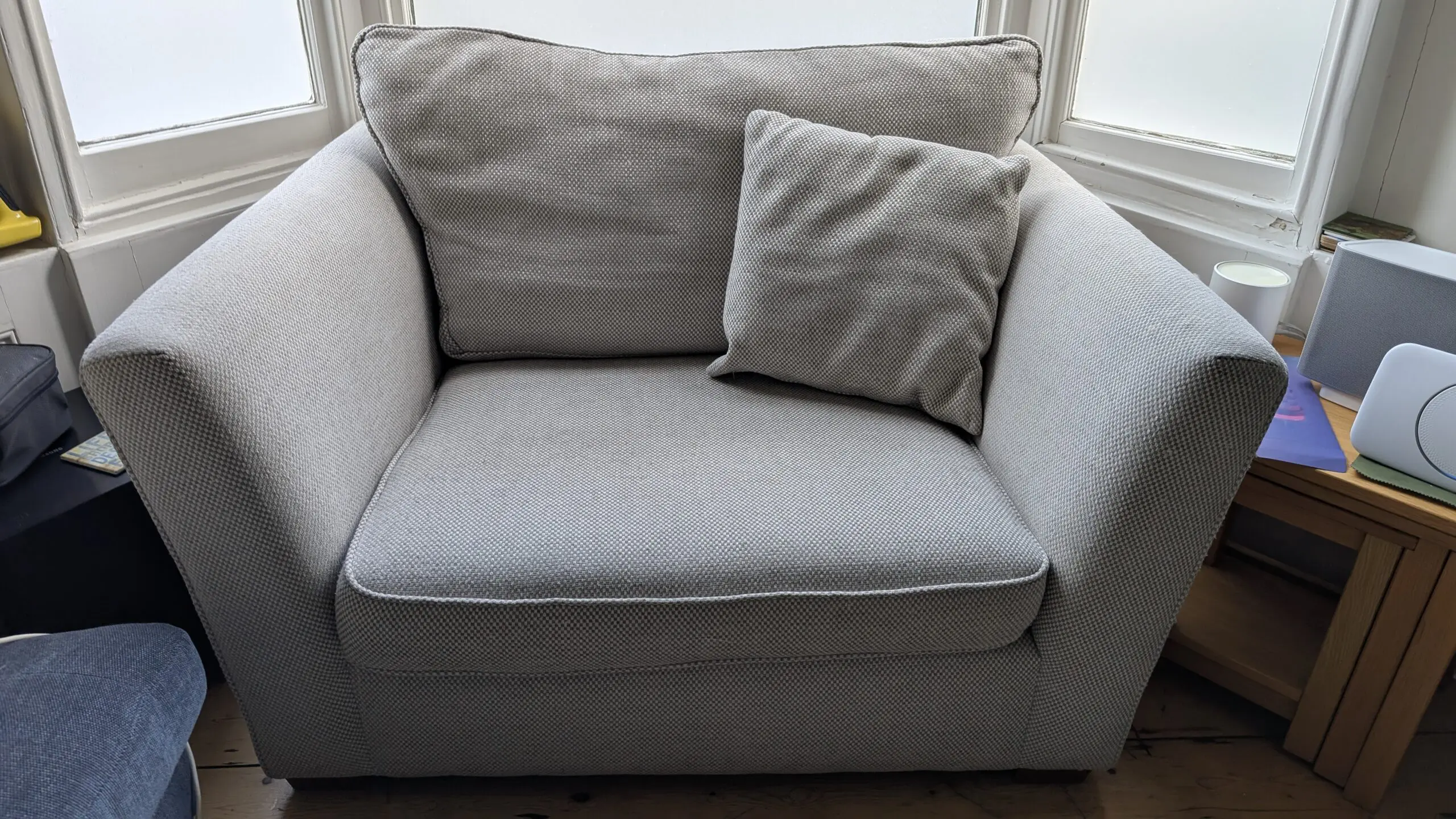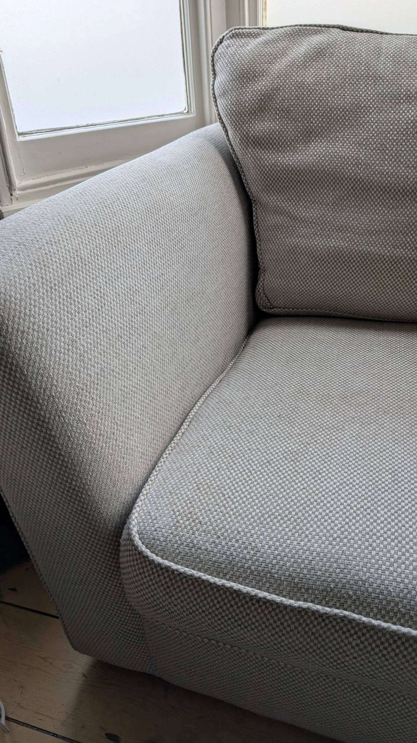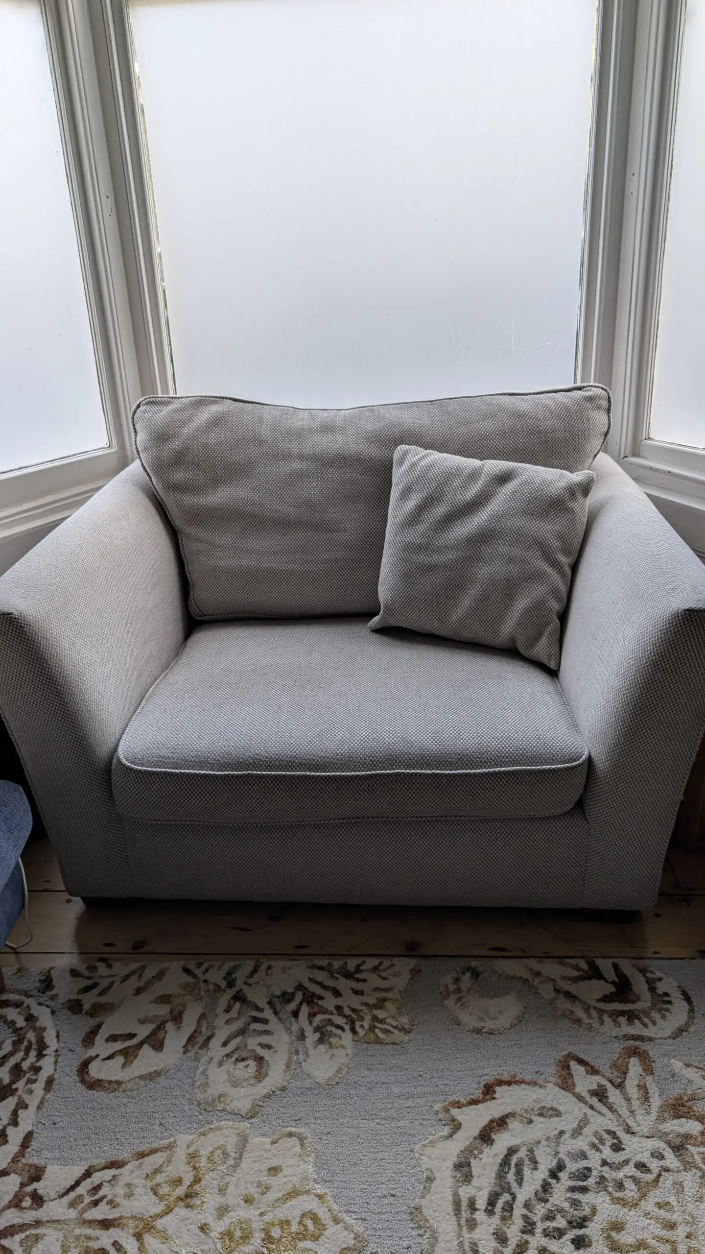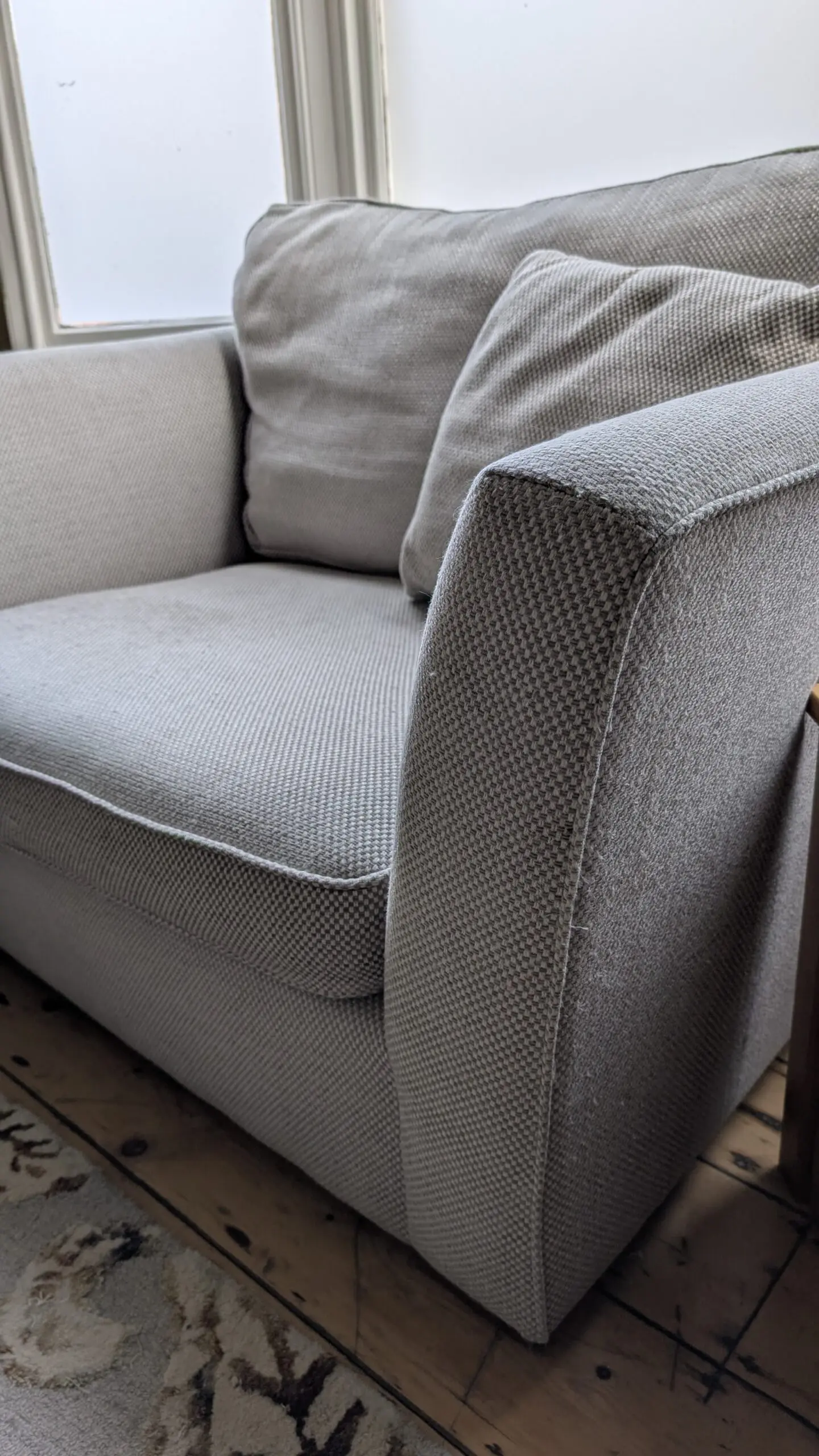 In excellent condition, although it is quite old – John Lewis love seat that can seat two. Very comfortable, but too big for our room.