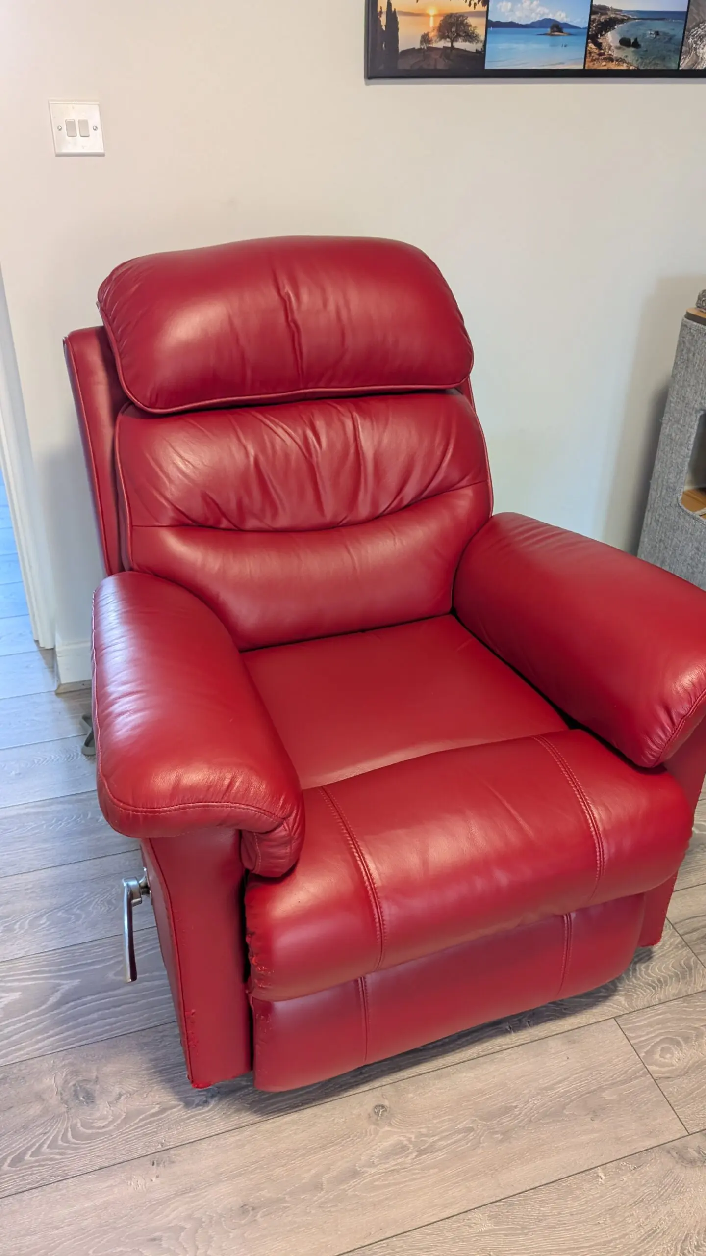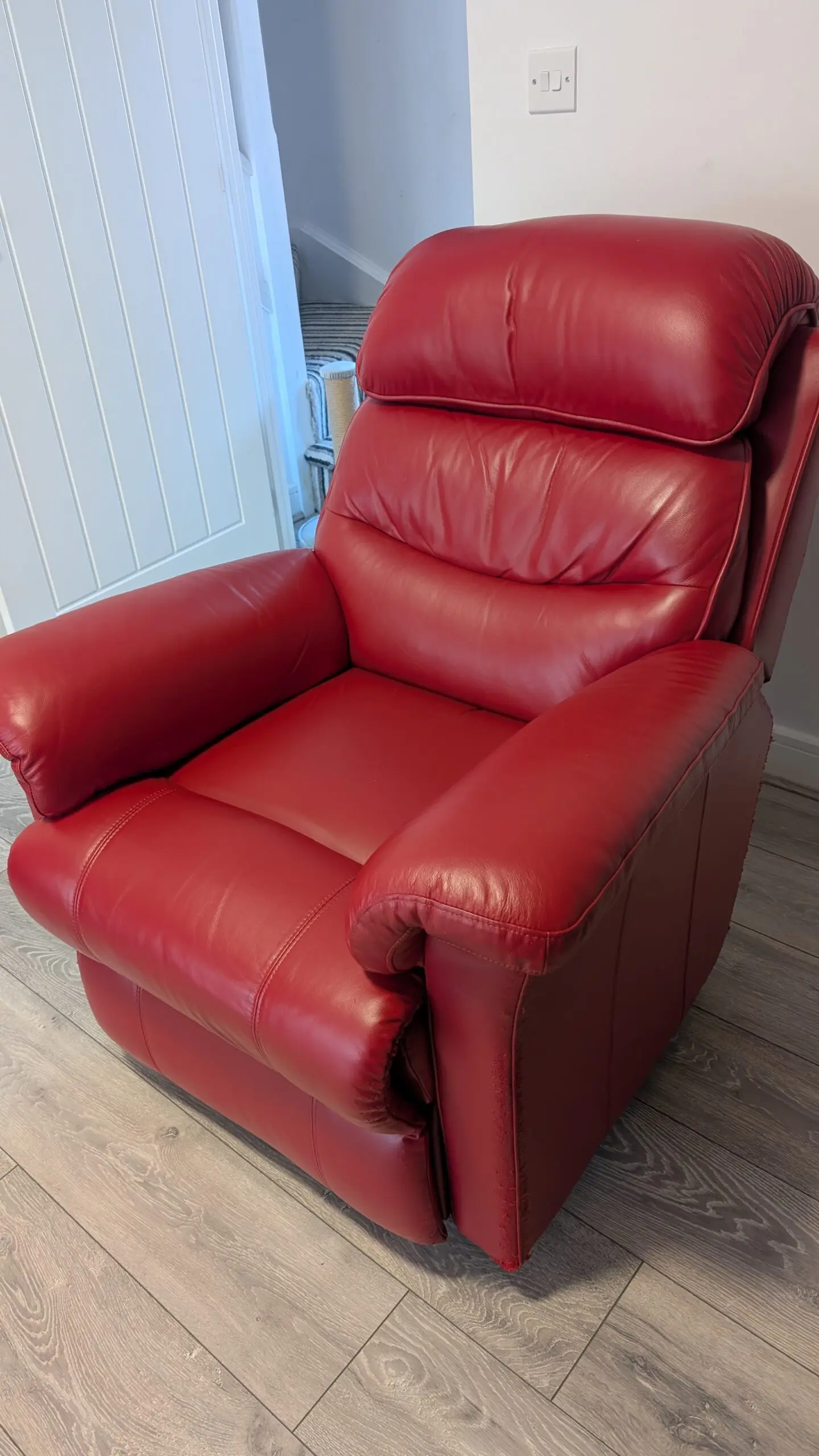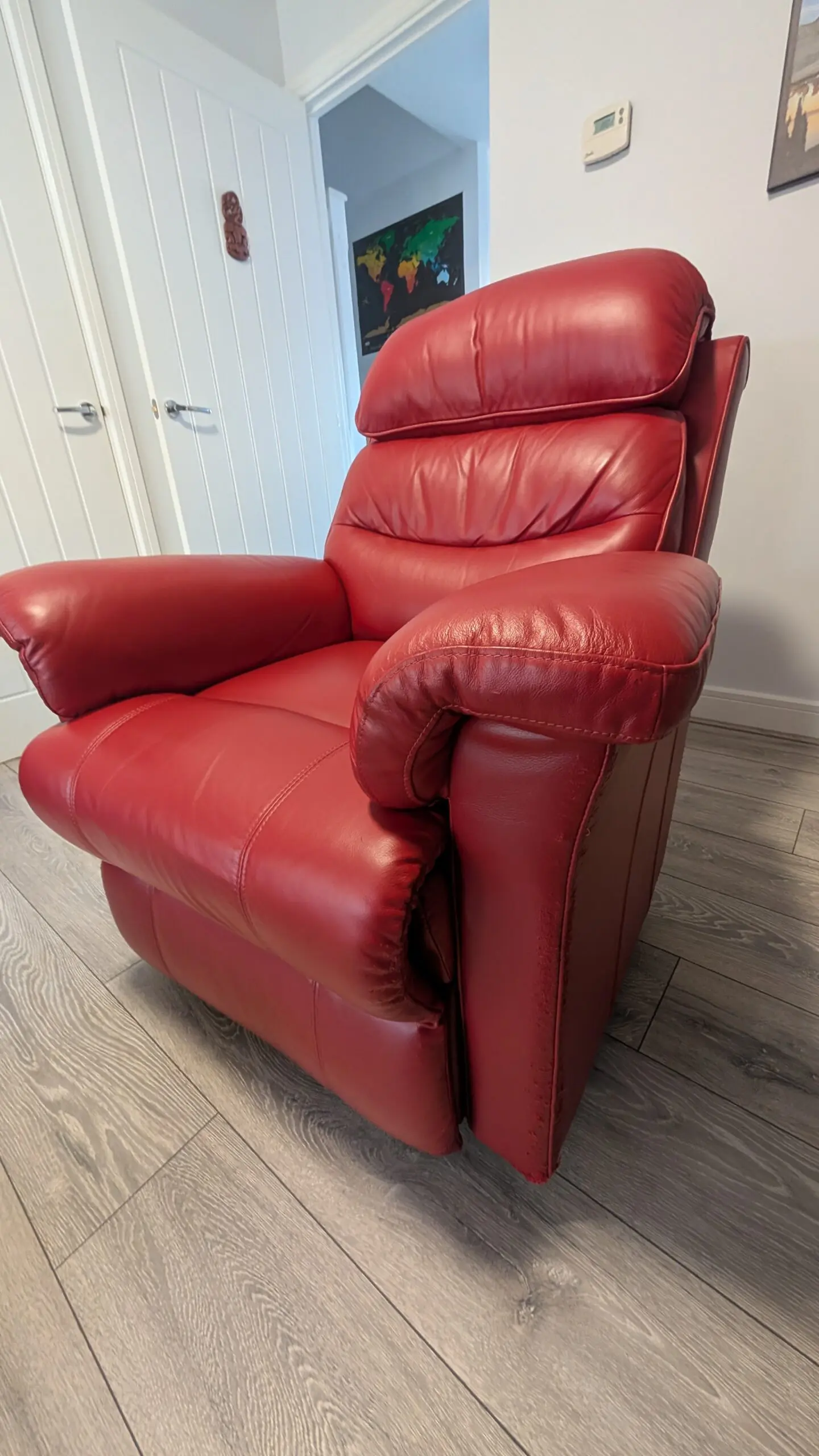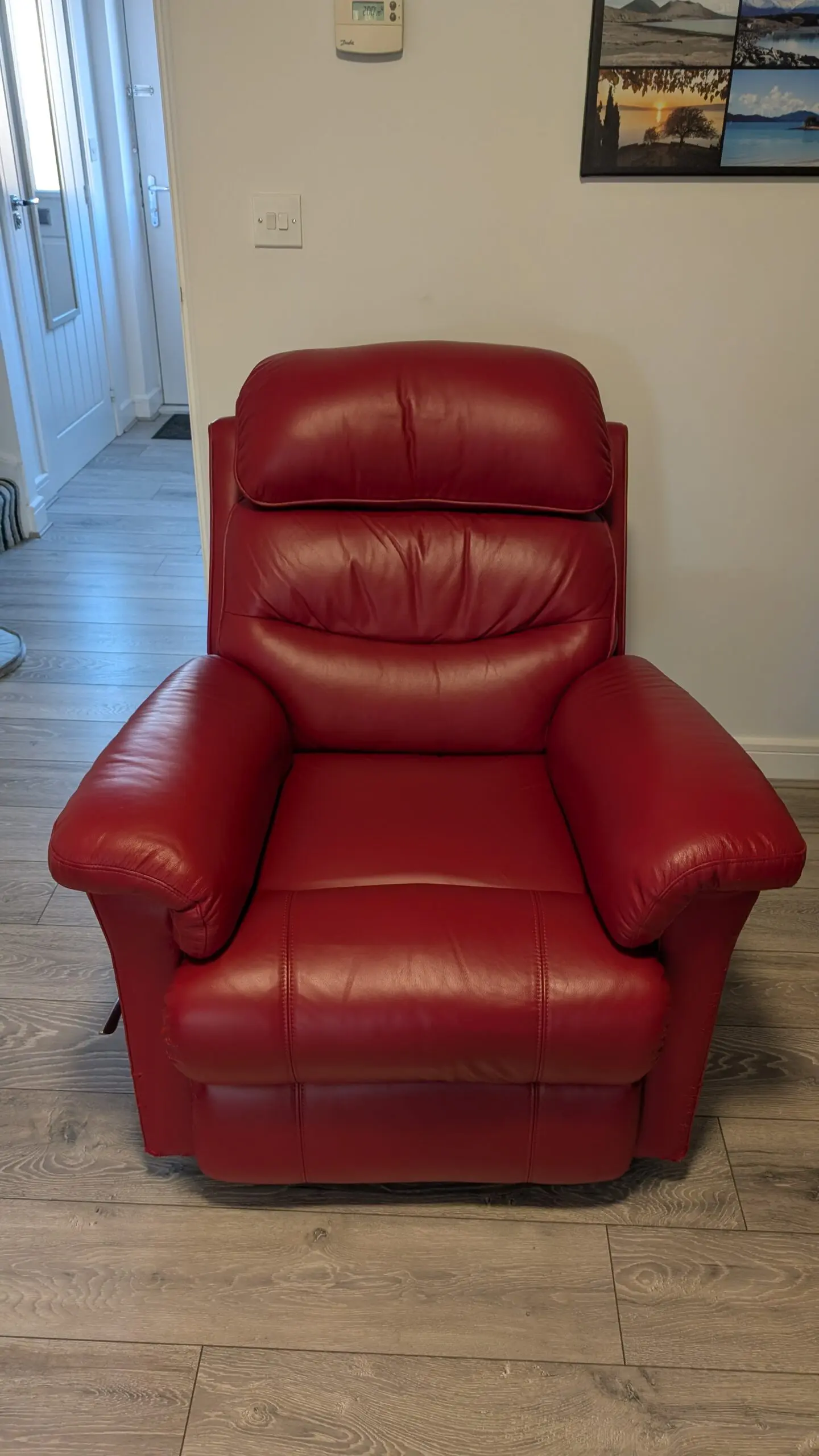 Hardly used recliner, s like new to sit and and has a three stage manual recline setting. Very comfortable great lumbar support can lie almost fully flat on it. A bit smaller than the La-Z-boy recliners used in the TV show friends.