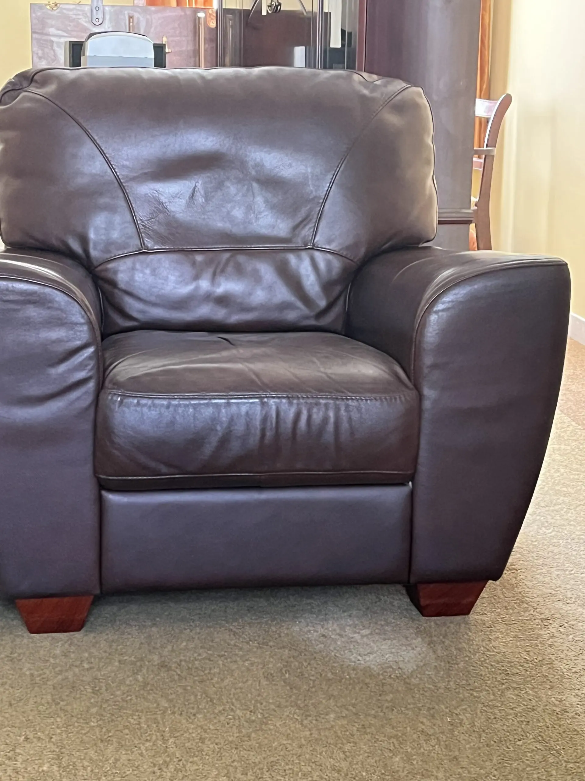 Dark brown leather armchair in excellent condition. Very comfortable. Square style.