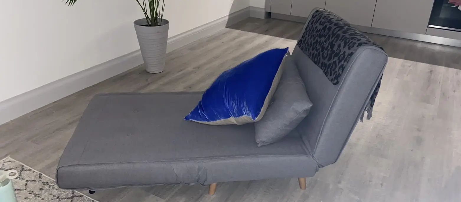 Haru Single Sofa Bed, in Marshmallow Grey. Use as armchair or folds out to single bed , great quality and good condition.