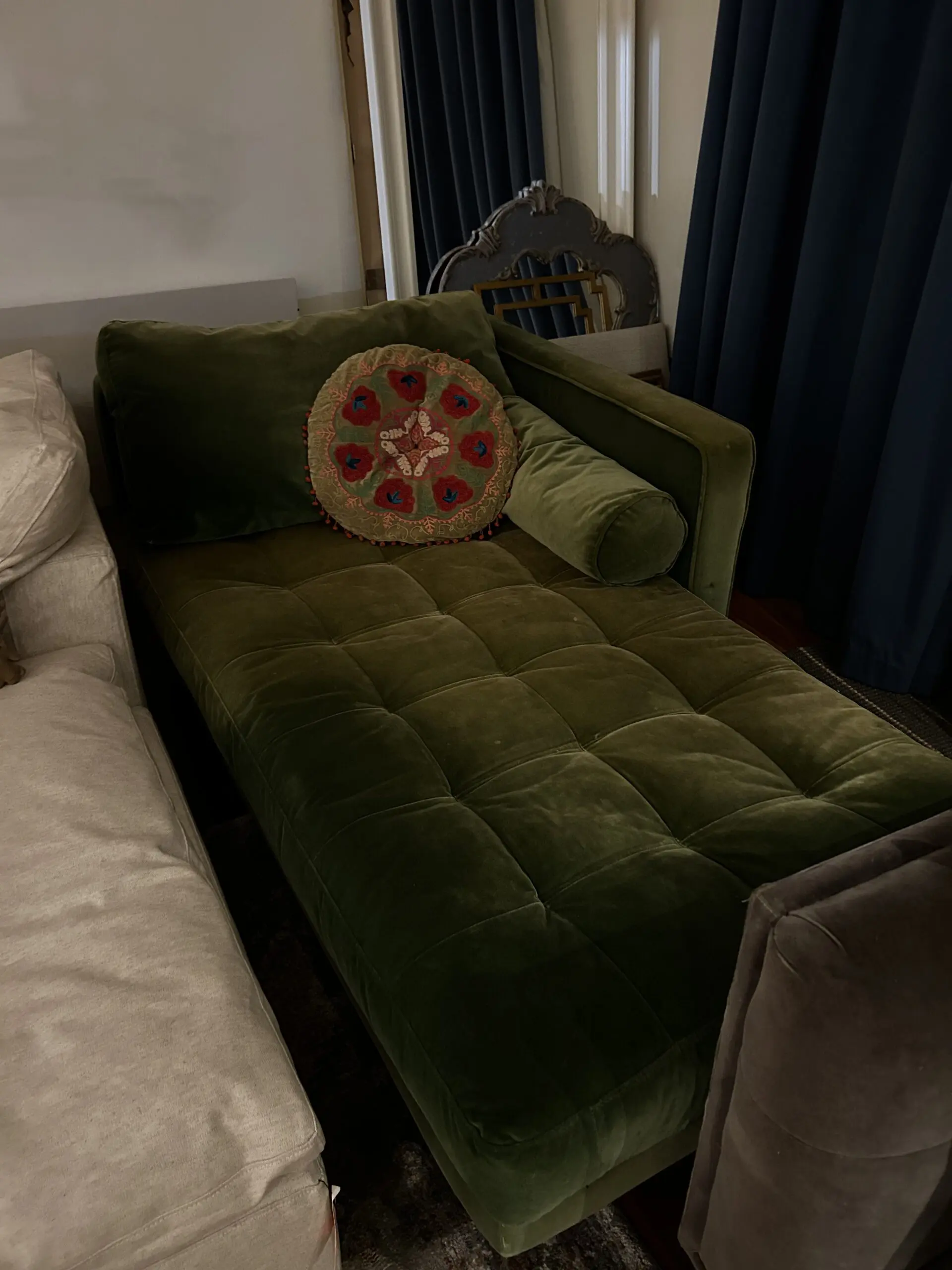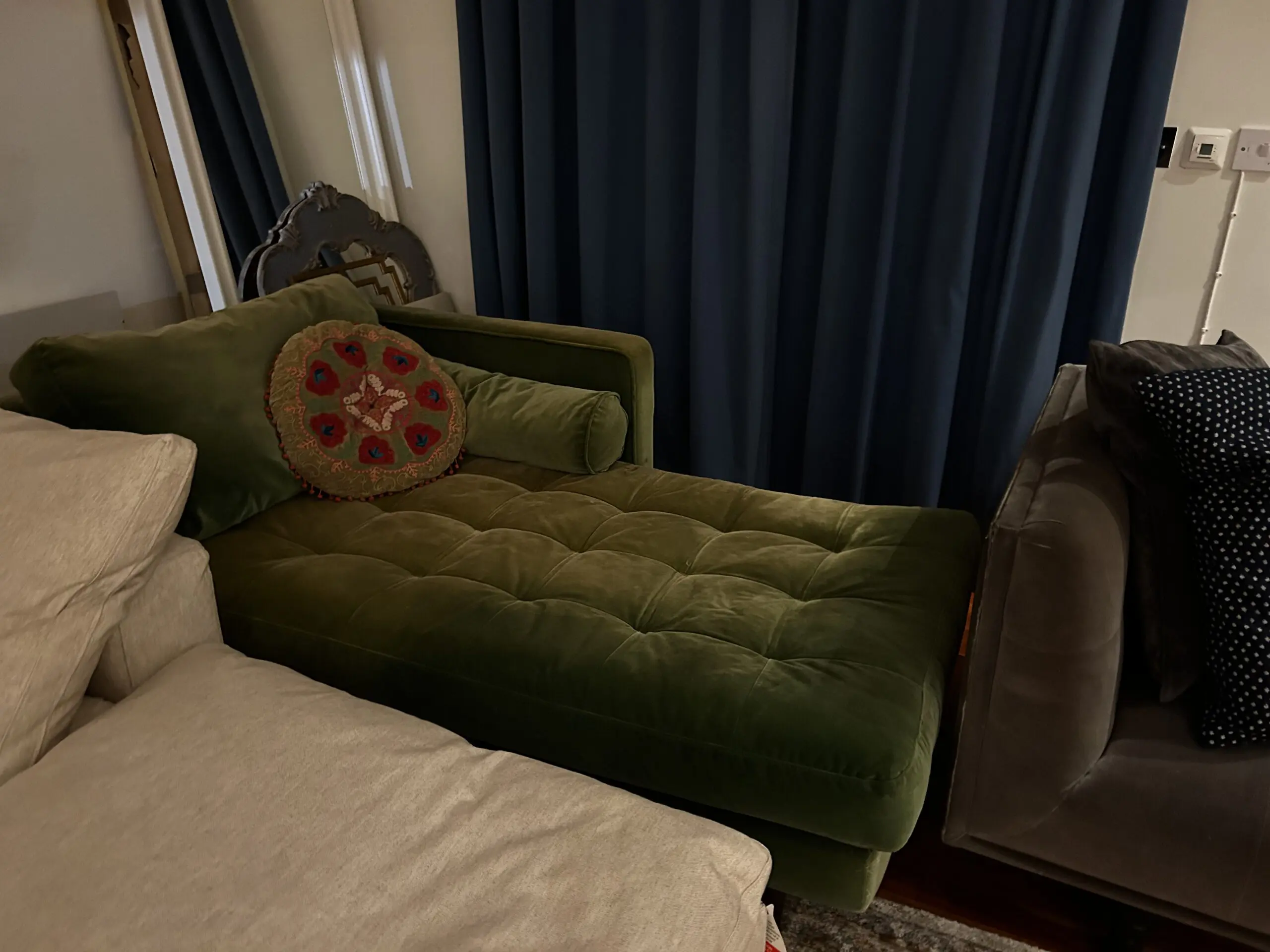Made.com Scott chaise sofa in green velvet