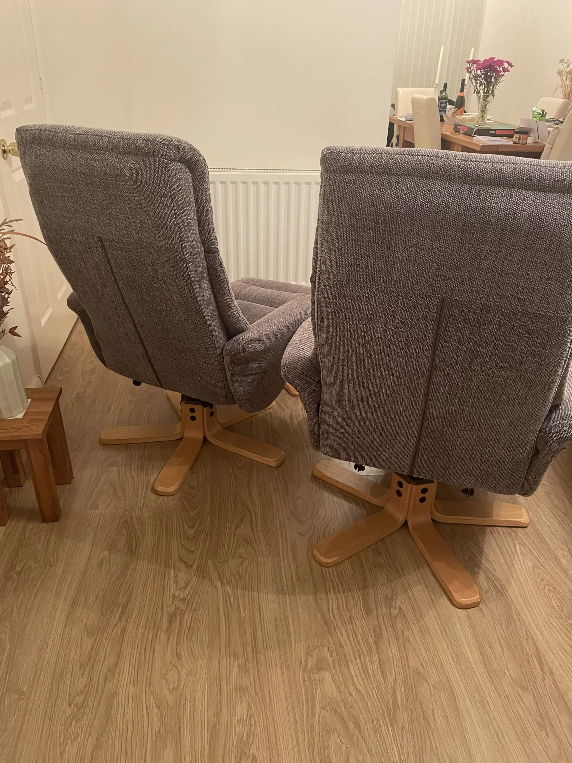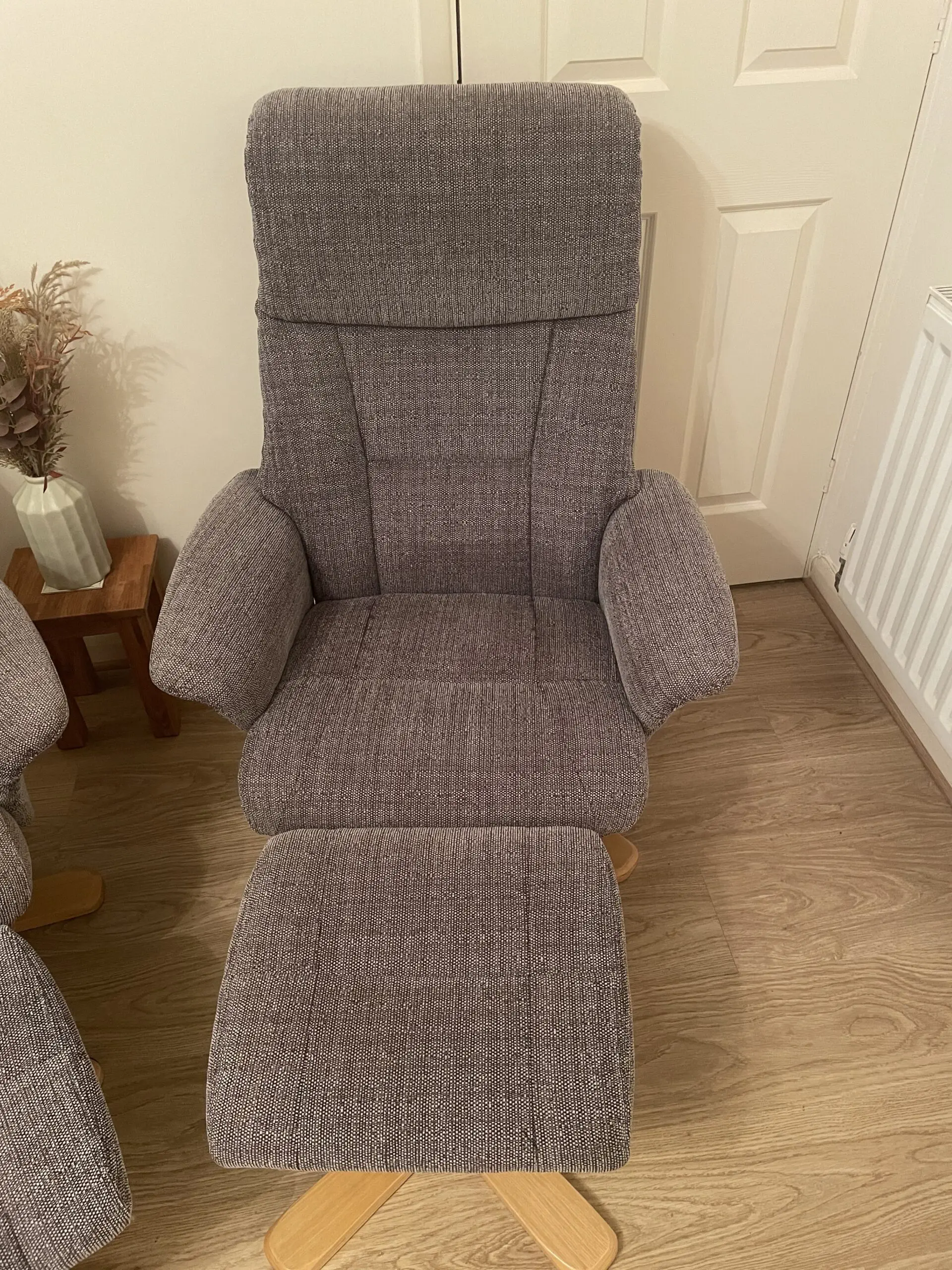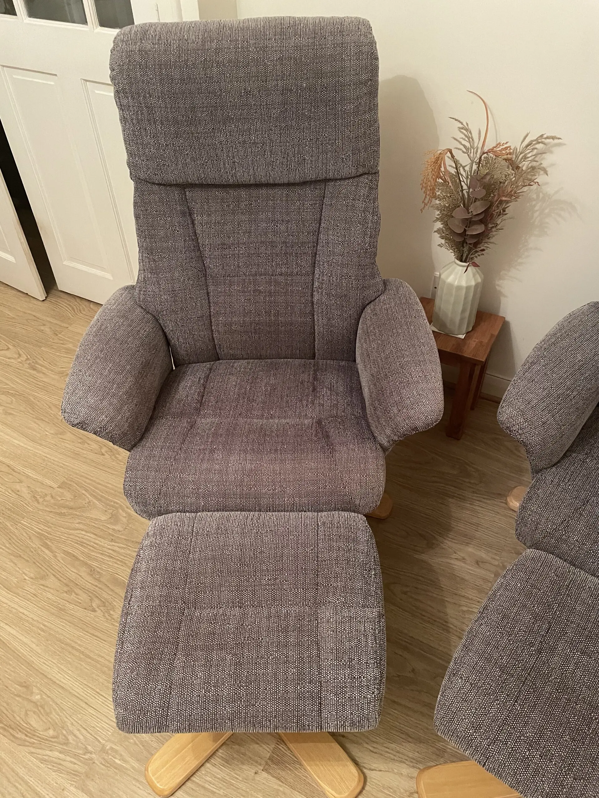 This Marseille Swivel Recliner charity complements any environment. Both chair and foot stool are in great condition and have hardly been used. It has stylish splade arms, high back and matching footstools, the Marseille Recliner is the perfect chair for when you just want to recline back and relax. It also features 360-degree swivel.