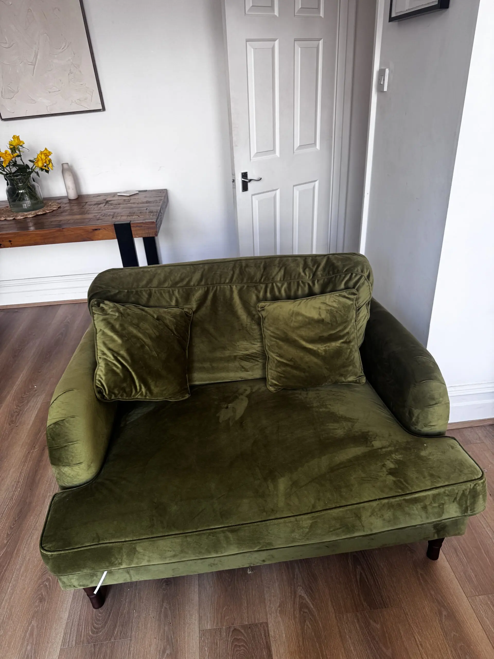 Modern snuggle chair upholstered in soft-touch velvet