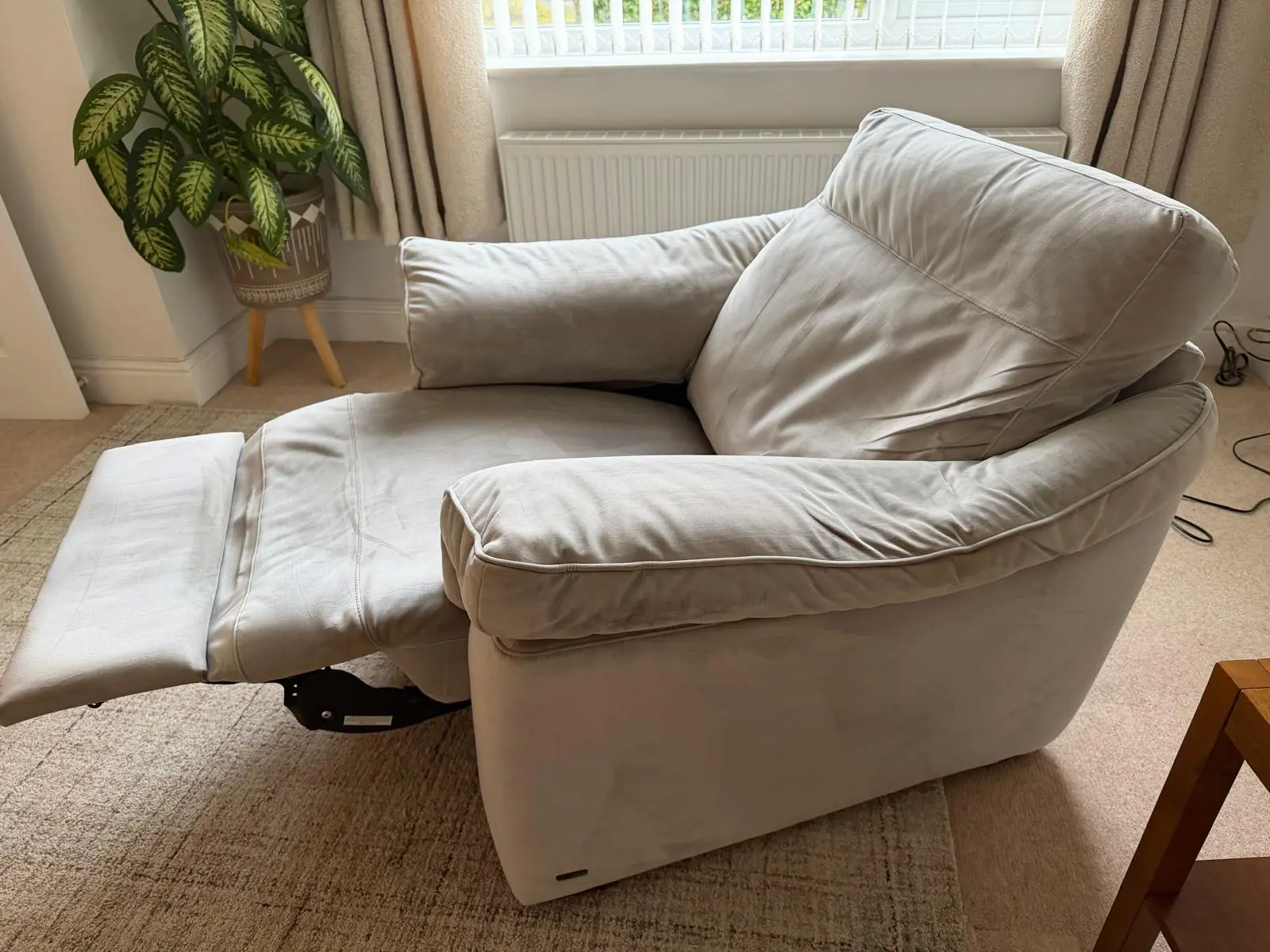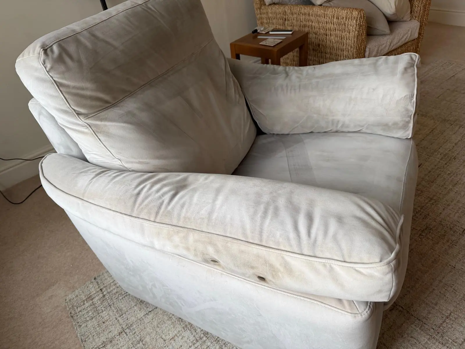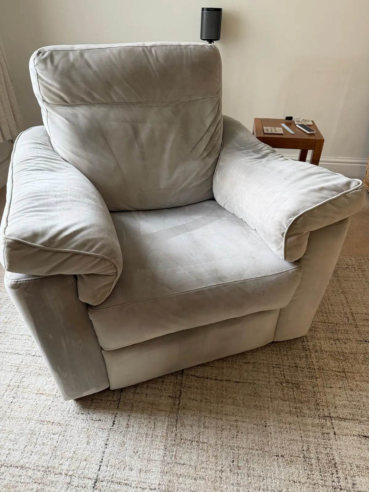 The chair has been well used and has been cleaned regularly, however the area around the power buttons need careful cleaning and may benefit from a professional clean.