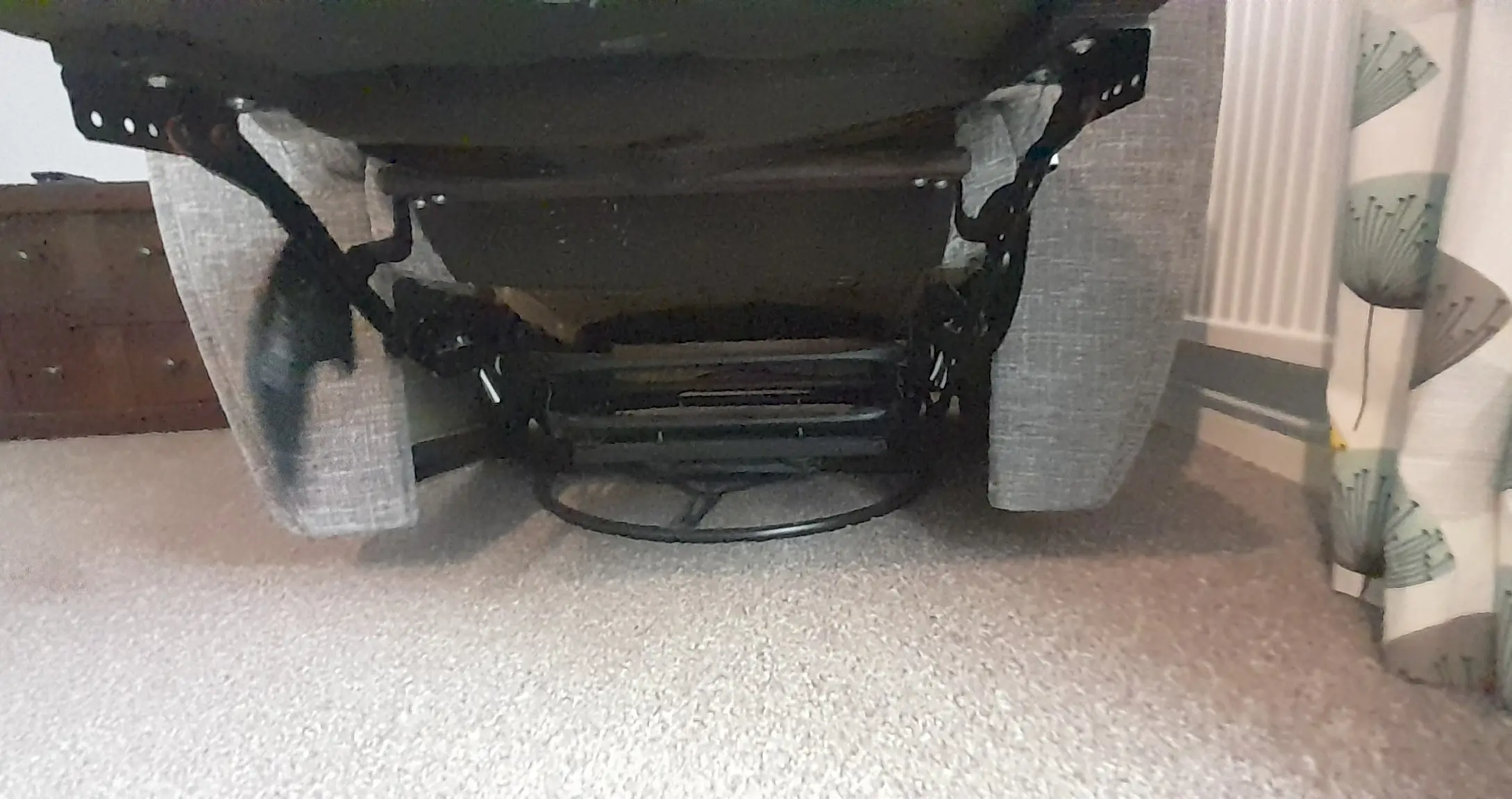 This arm chair reclines, rotates and spins so you will need to allow extra room to accommodate this. Depth measurements are for normal set up and reclined set up. Recline is manual.