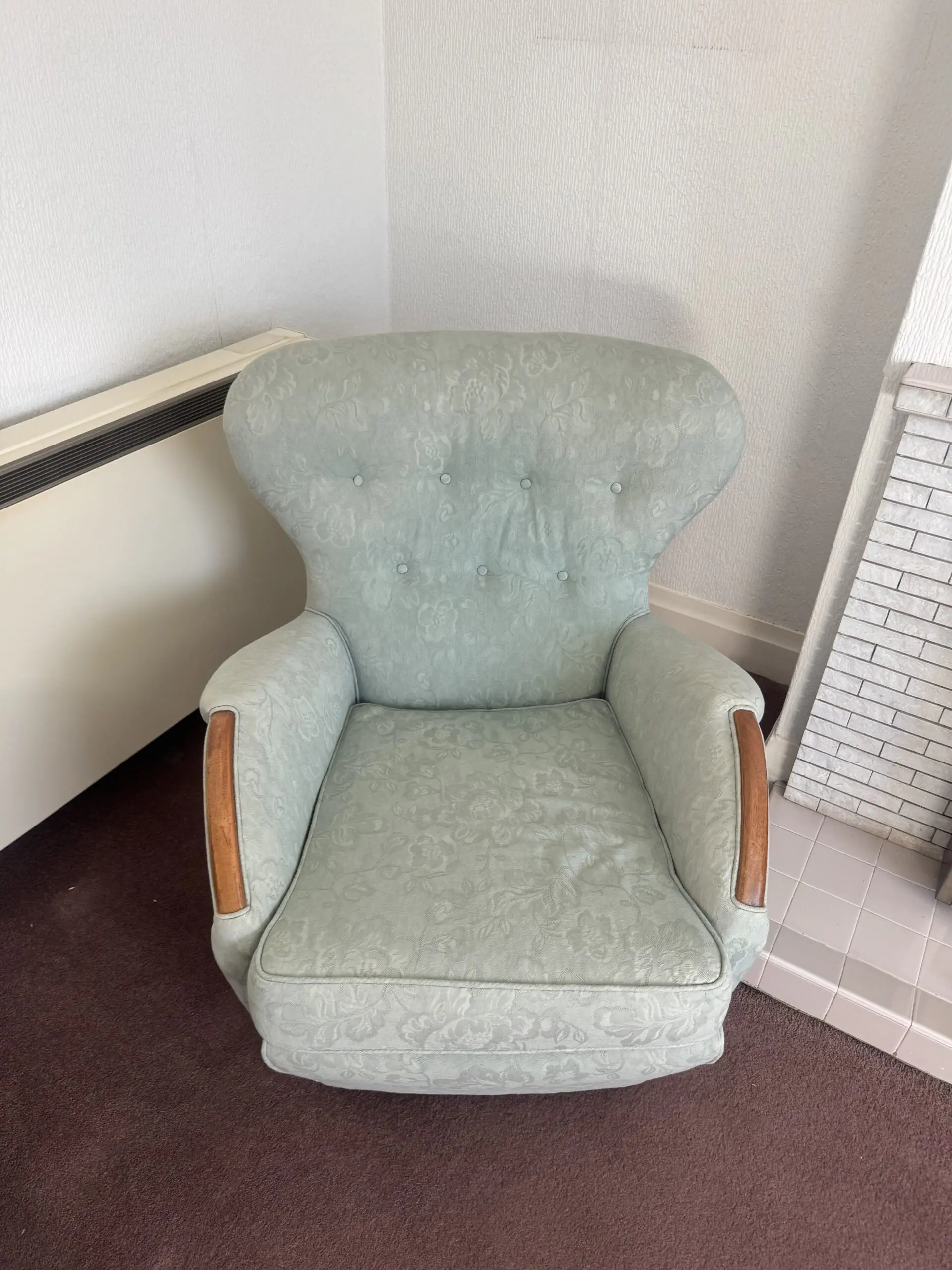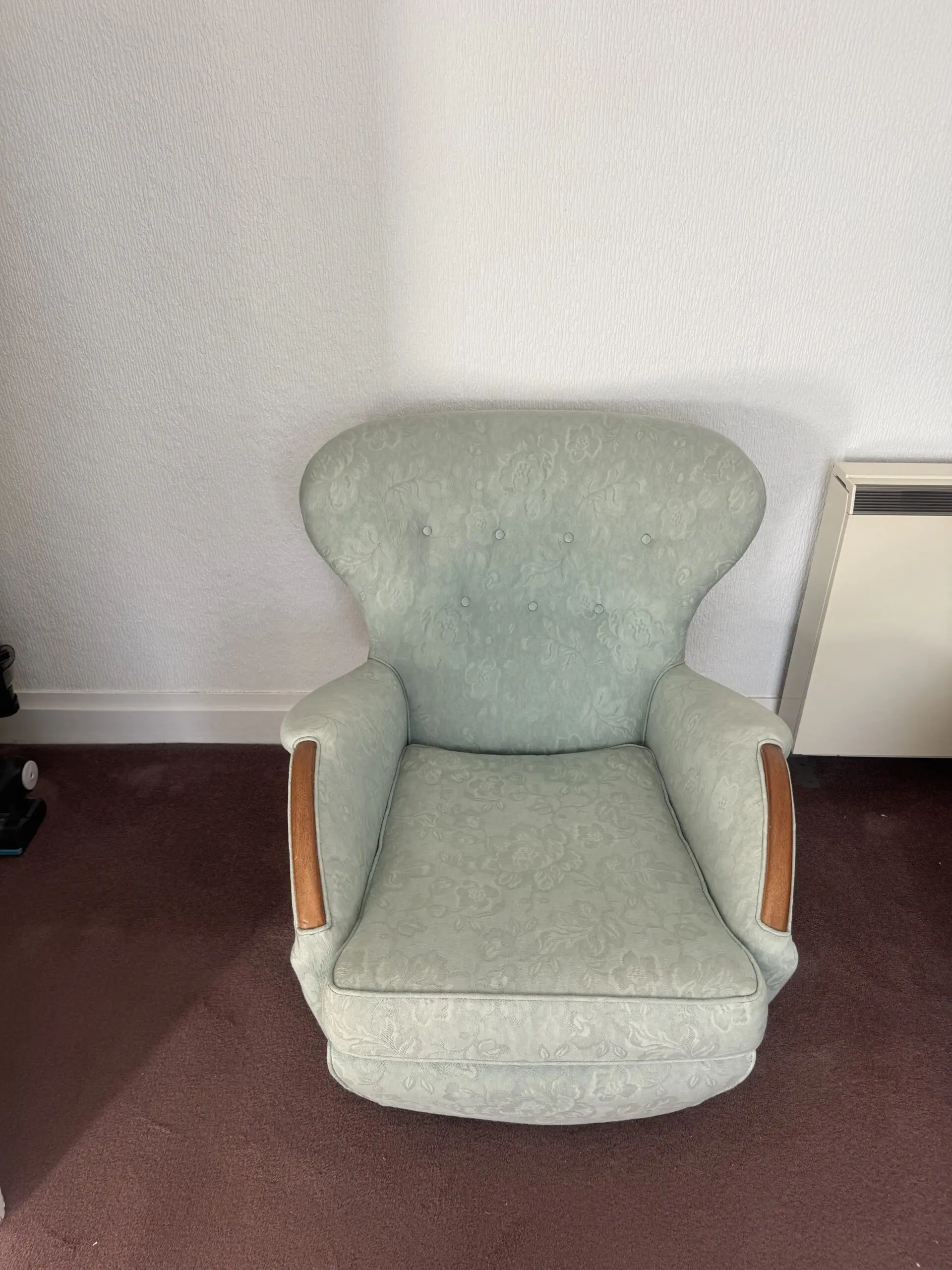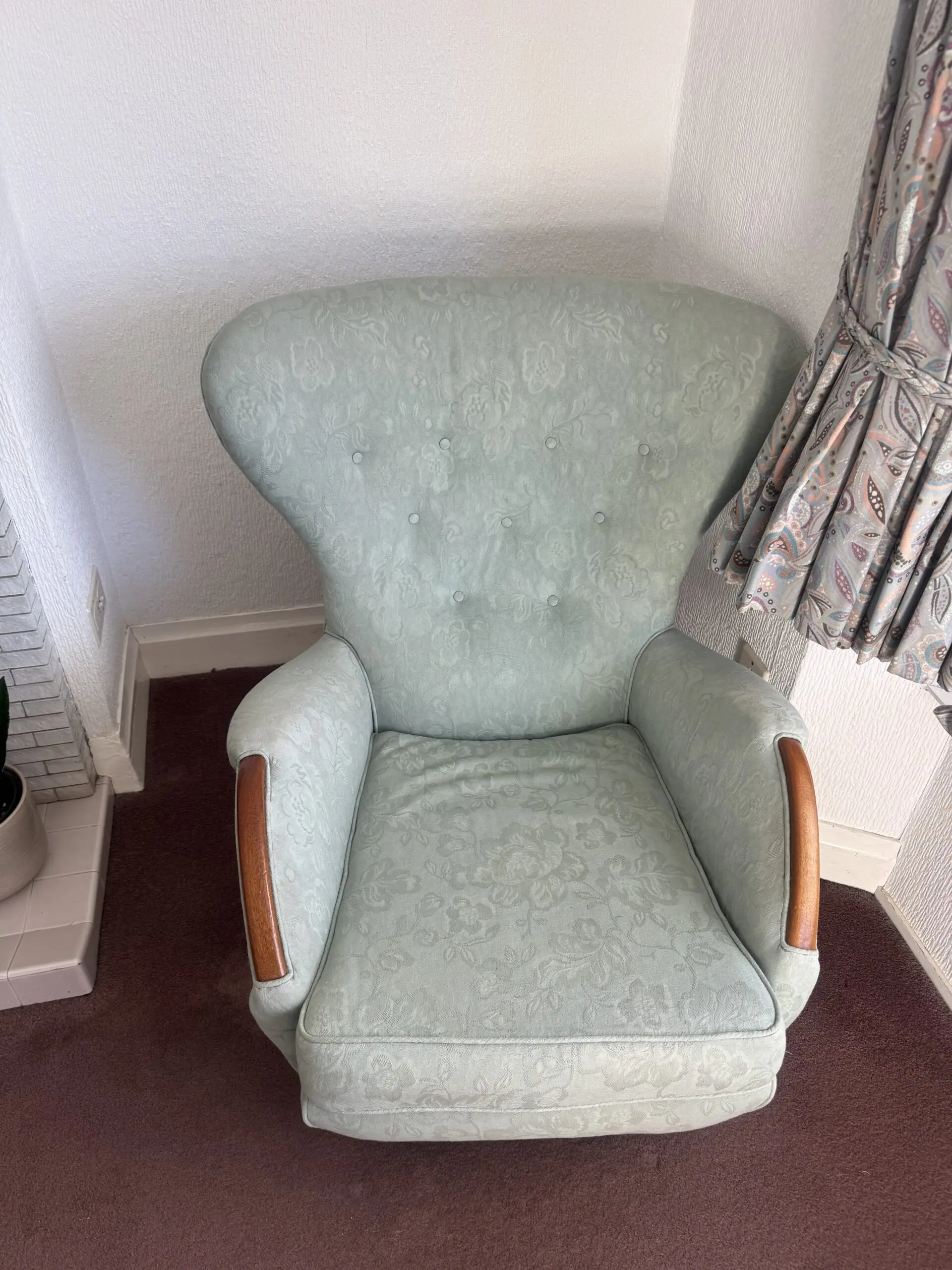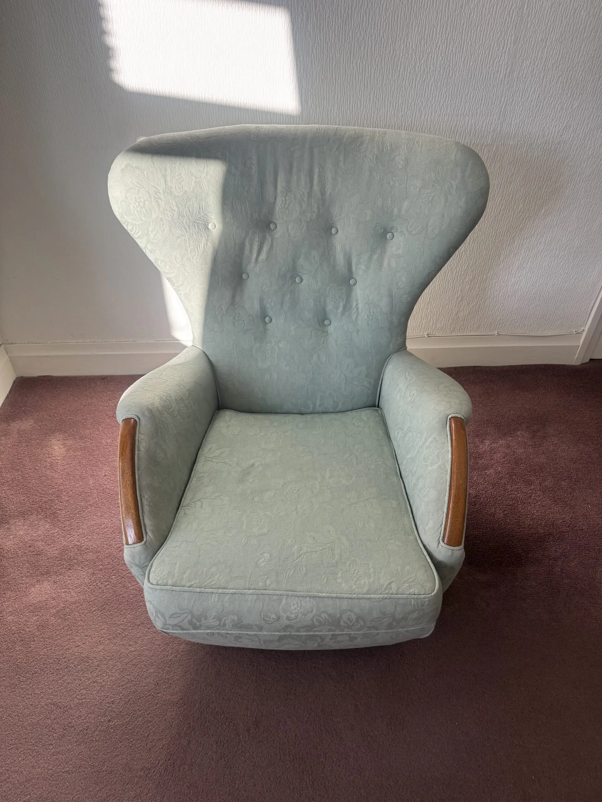 Really very comfortable but could do with a re-upholster. Have been informed that they are 1940’s Swedish designed wingback.