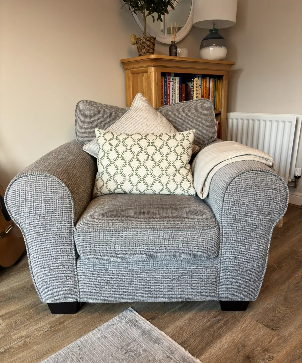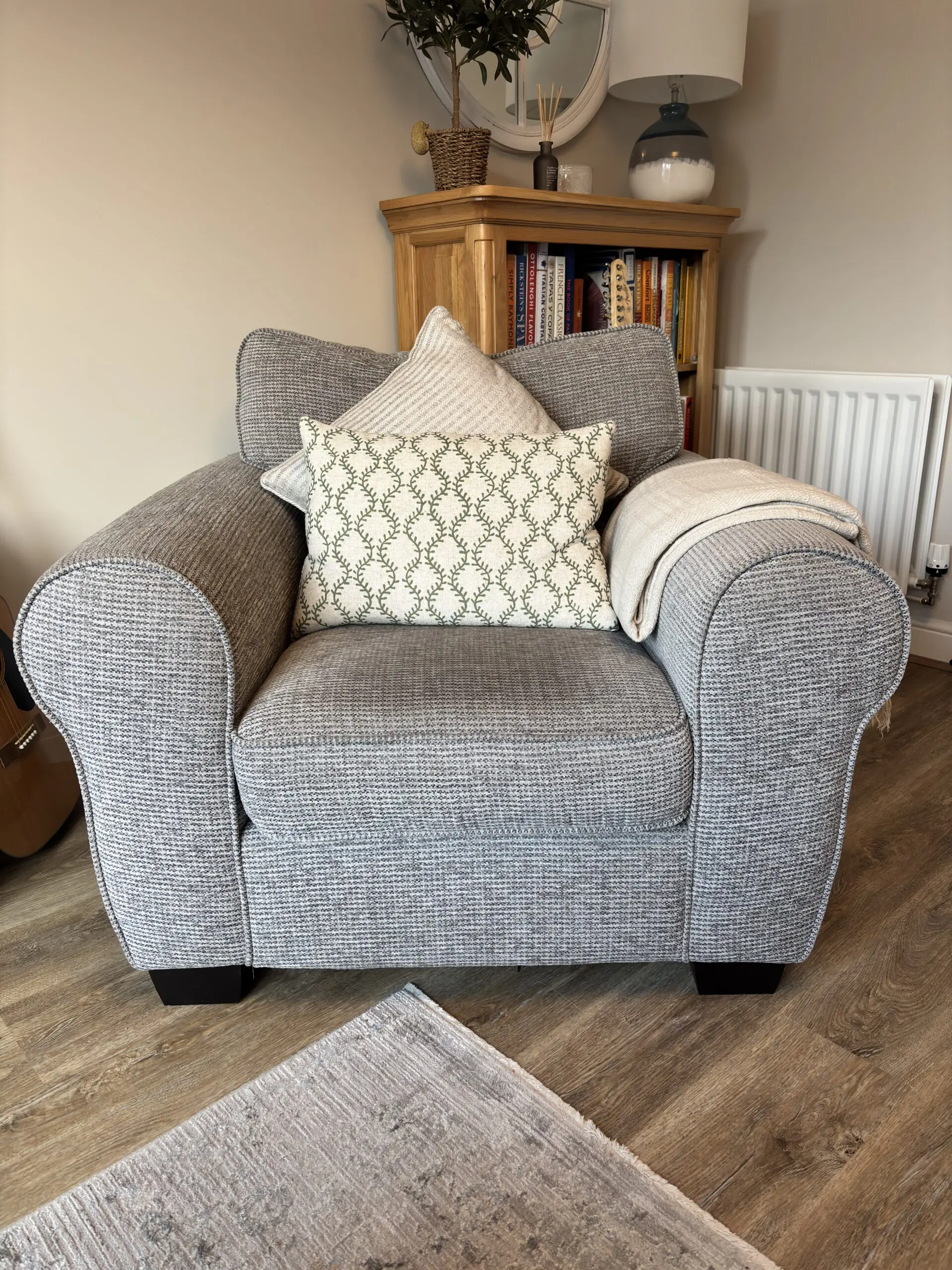 Excellent quality fabric armchair from Sofology. Very comfortable and not used very often. Fits into a country/Cotswold style home beautifully.