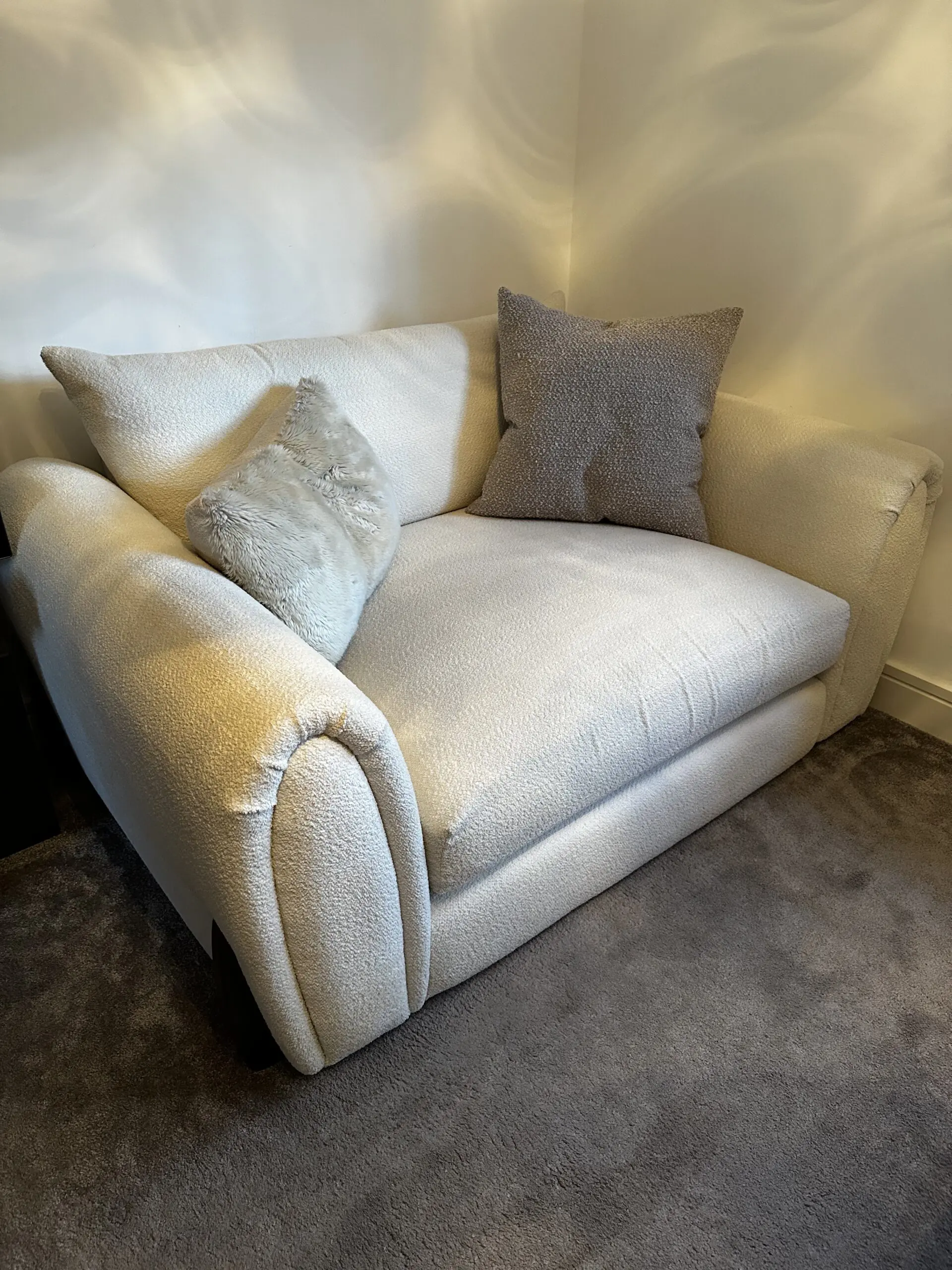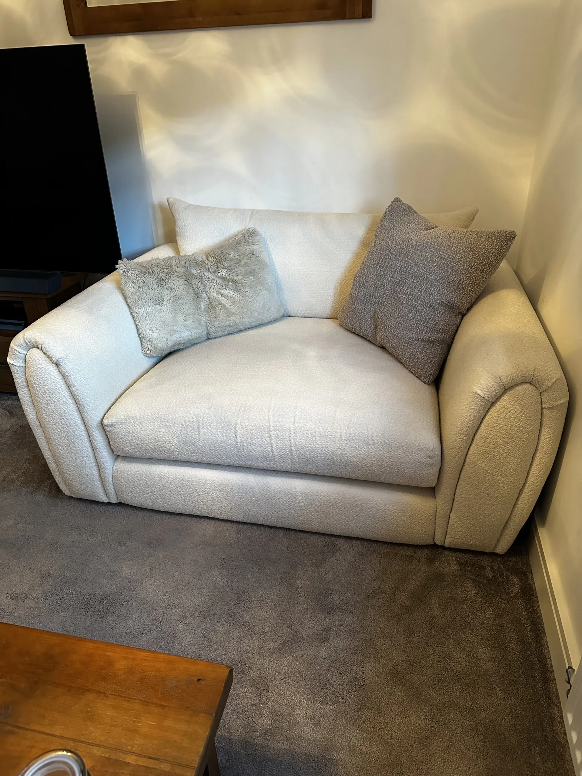 Cream ‘Marble Arch’ loveseat bought brand new from Sofology for £1,799, however it’s just too big for our living room.