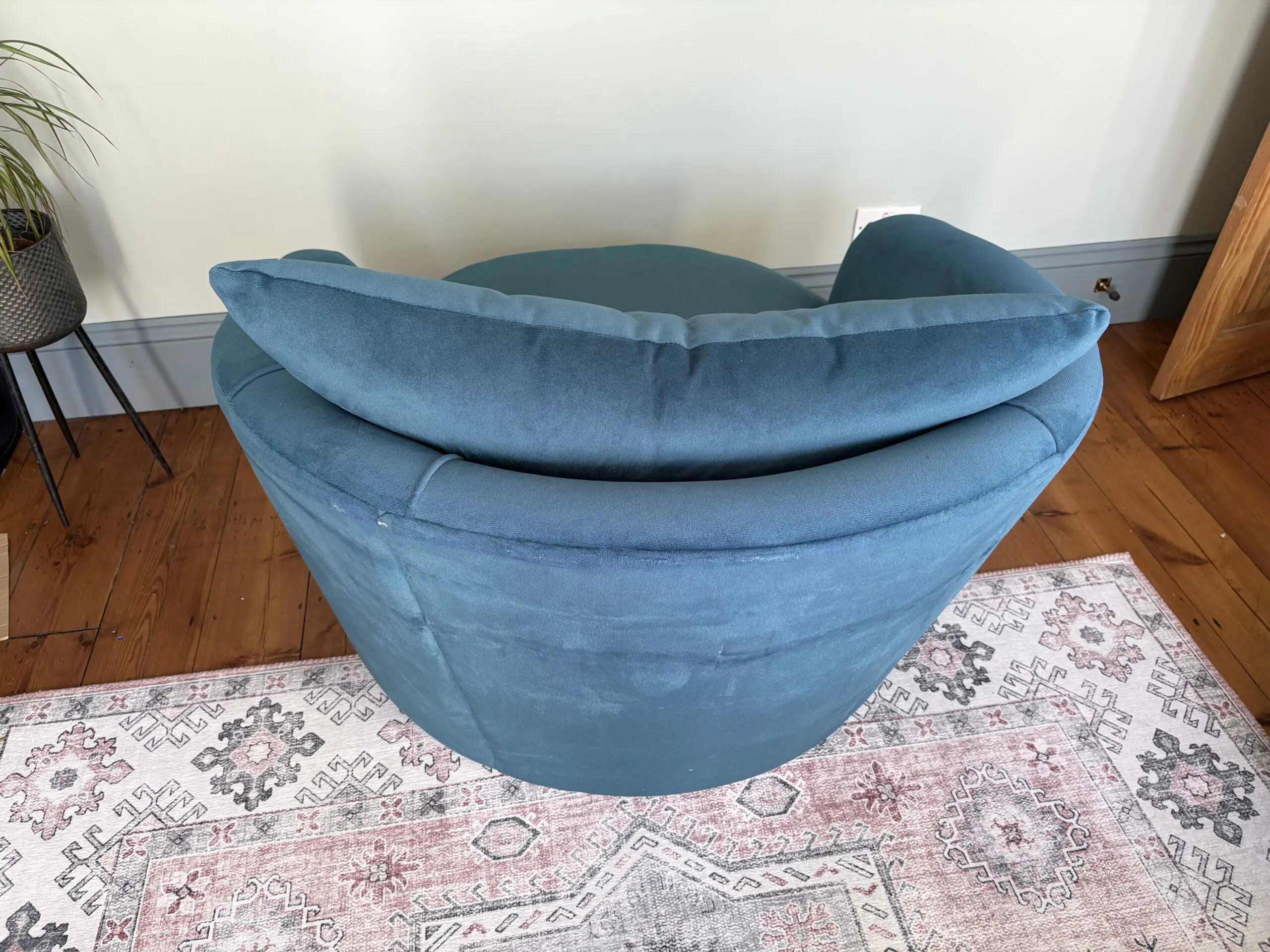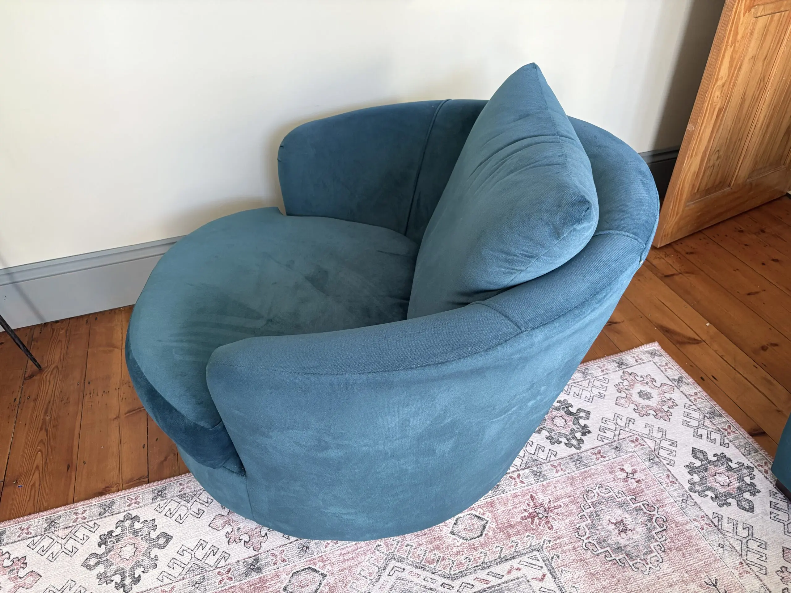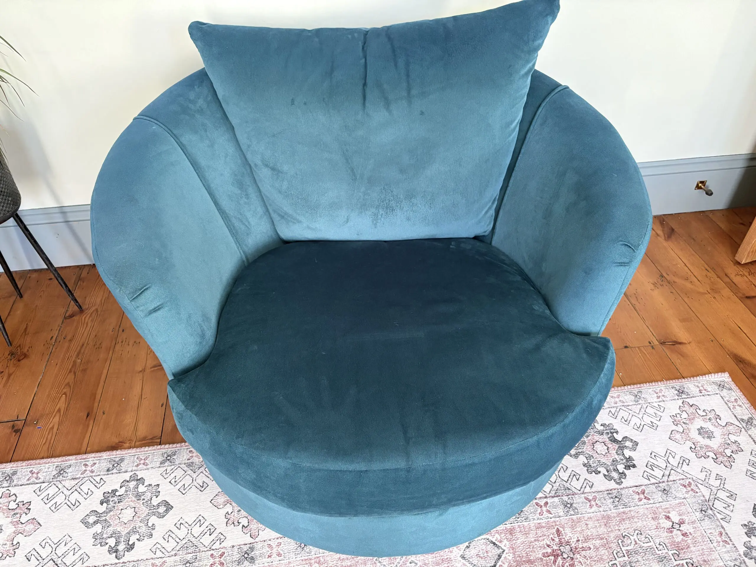 Sofology:- Tallulah swivel chair velvet lagoon all over (teal colour). RRP £899.