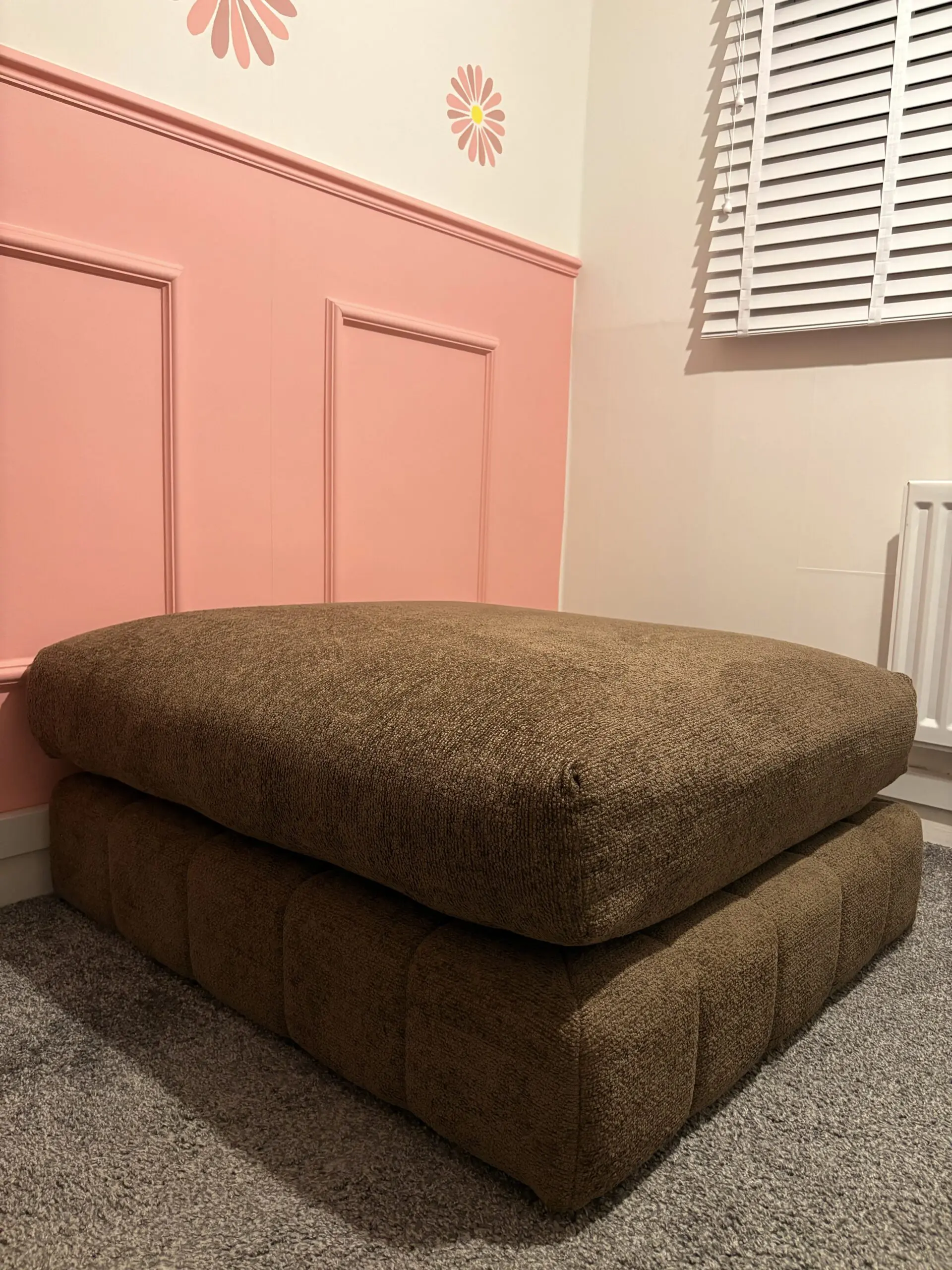 Sofology The Westwood footstool in the colour Soft Boucle Bark All Over.