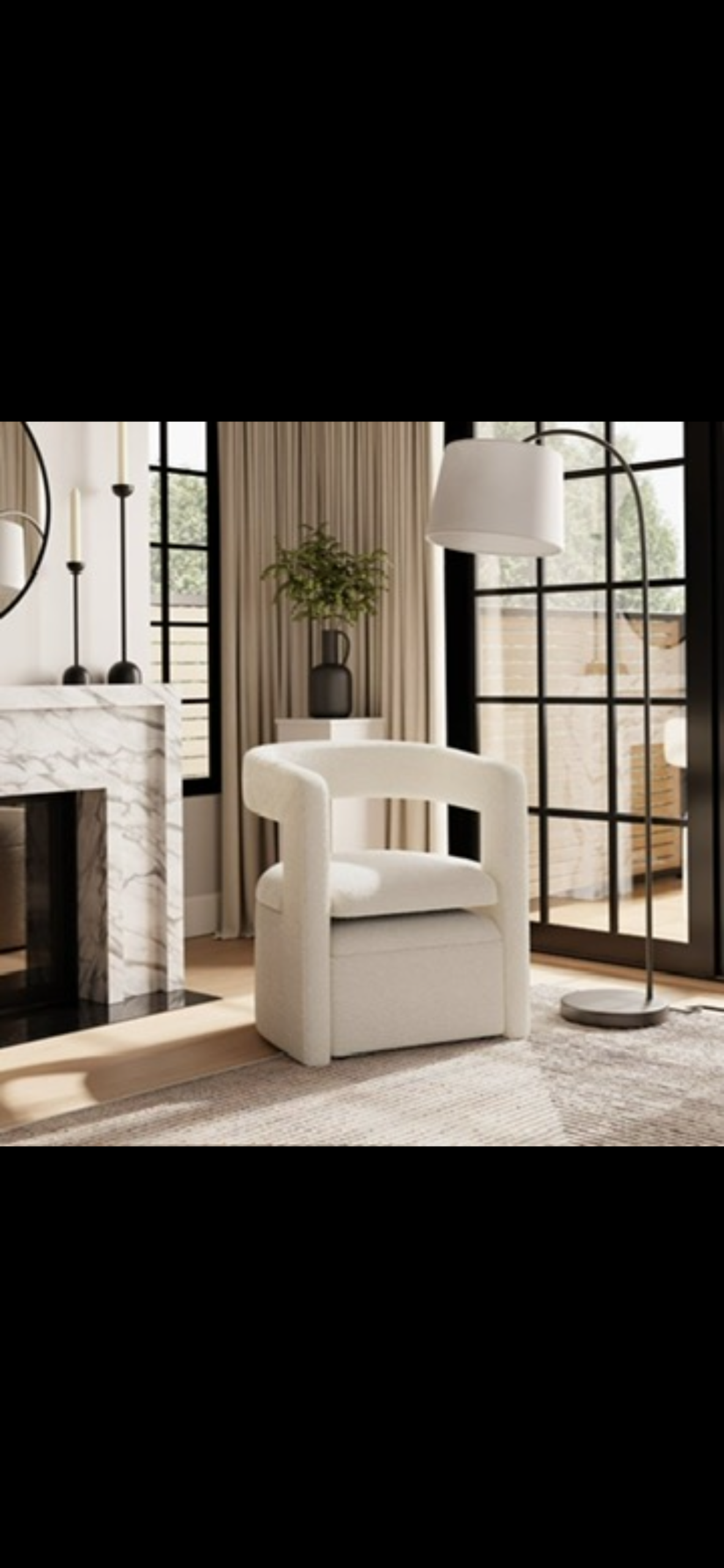 Features a modern curved design with hidden storage beneath the seat, perfect for keeping blankets, cushions or everyday items tucked away while maintaining a clean, stylish space. The bouclé fabric gives it an elevated, cosy look that suits modern, minimalist and neutral interiors.