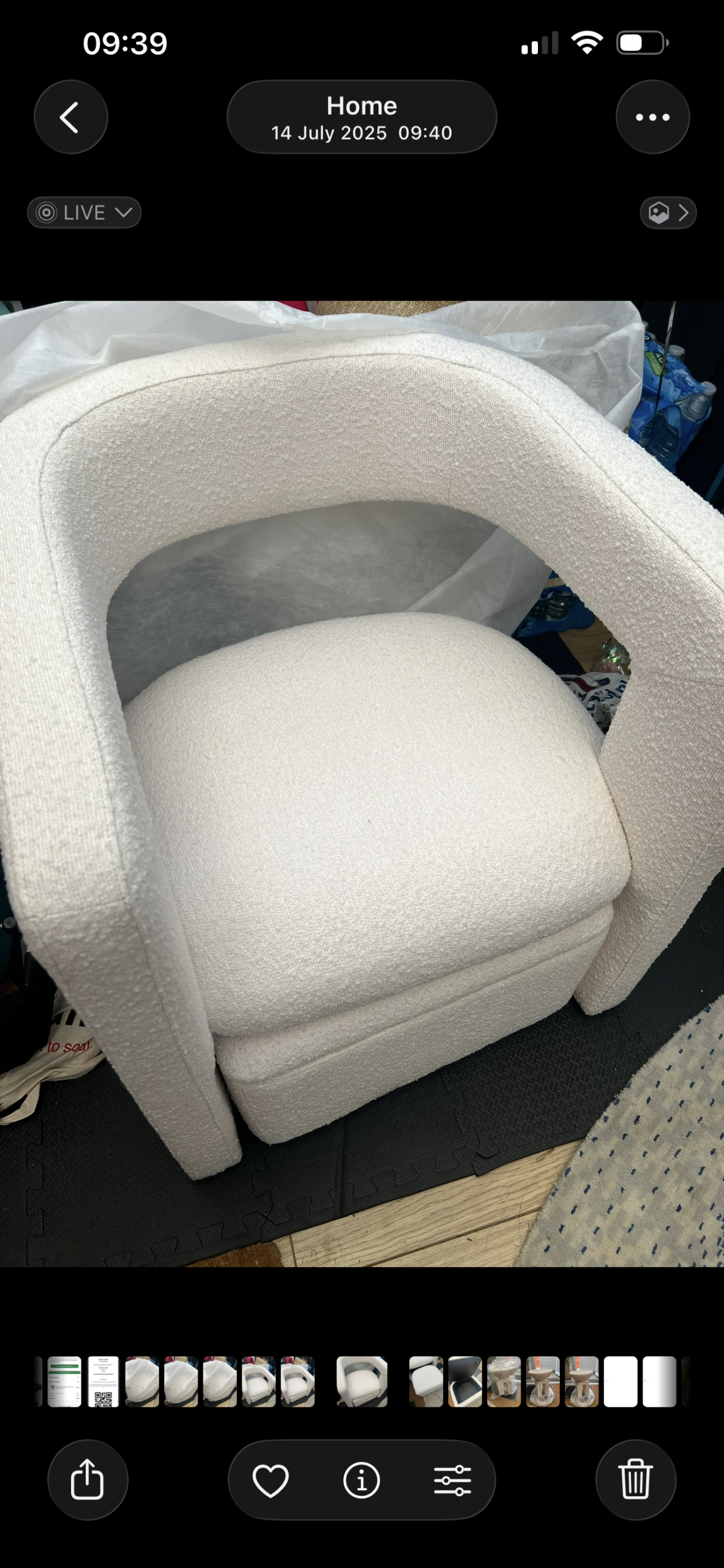 Brand new Tallie bouclé accent chair in a soft cream tone. Never used and still in its original protective cover. Clean, pristine condition.