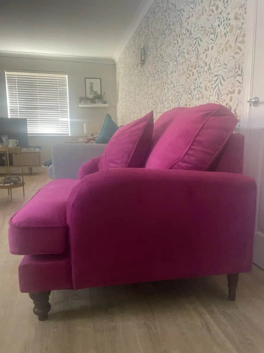 Bought it February. Bespoke order that couldn’t be returned. Brand new and never been sat on. Feet assembled only for selling purposes