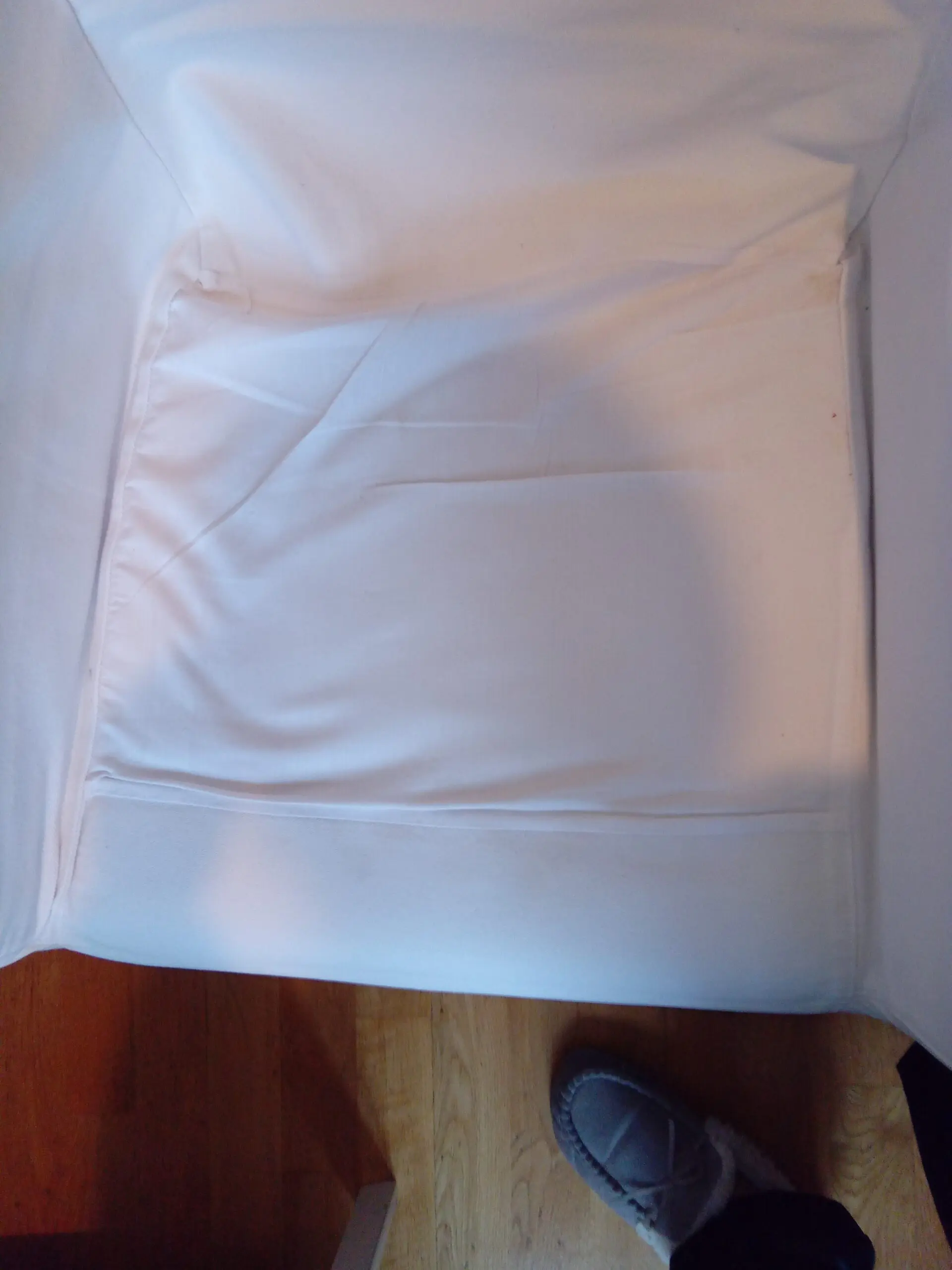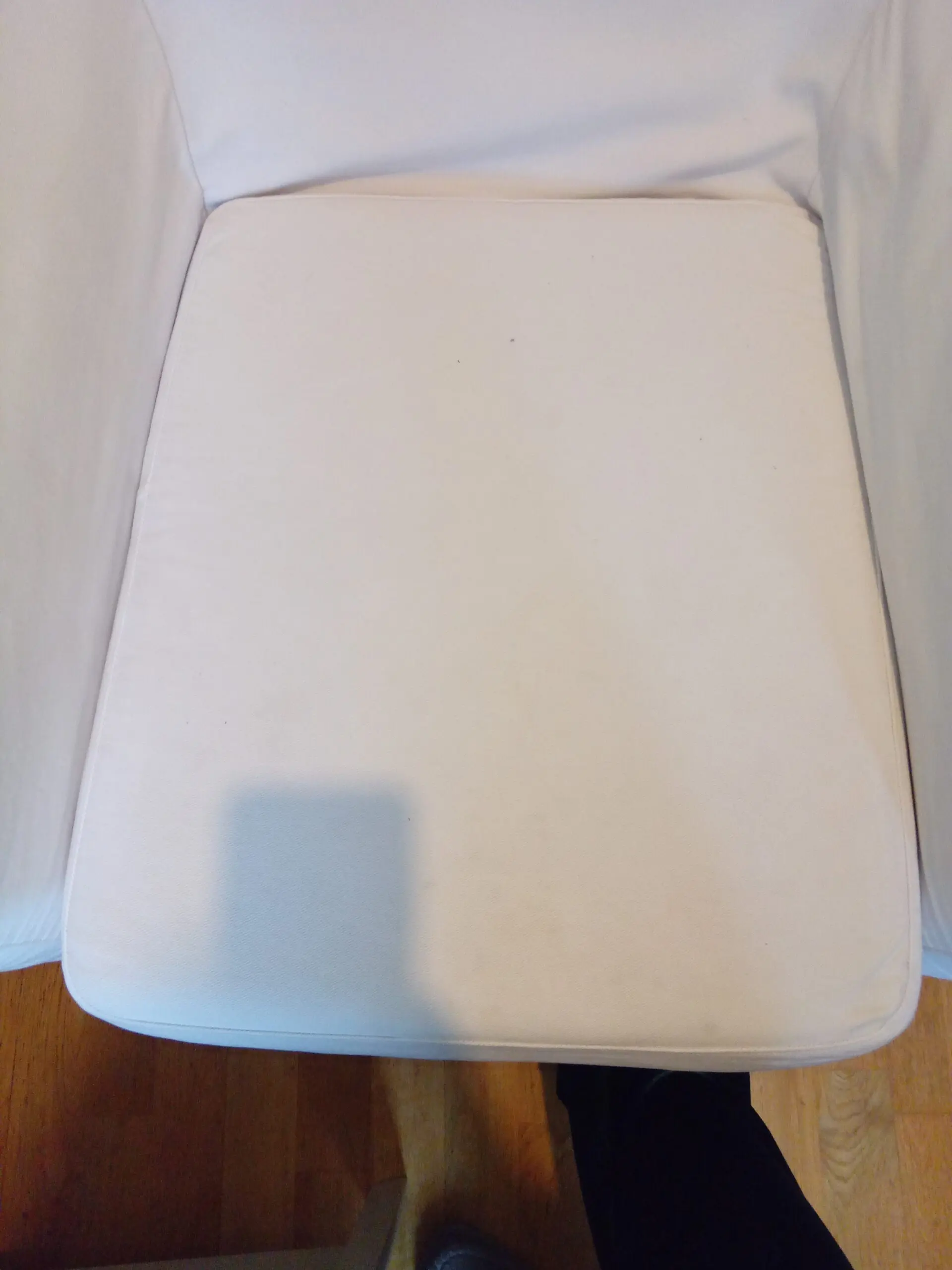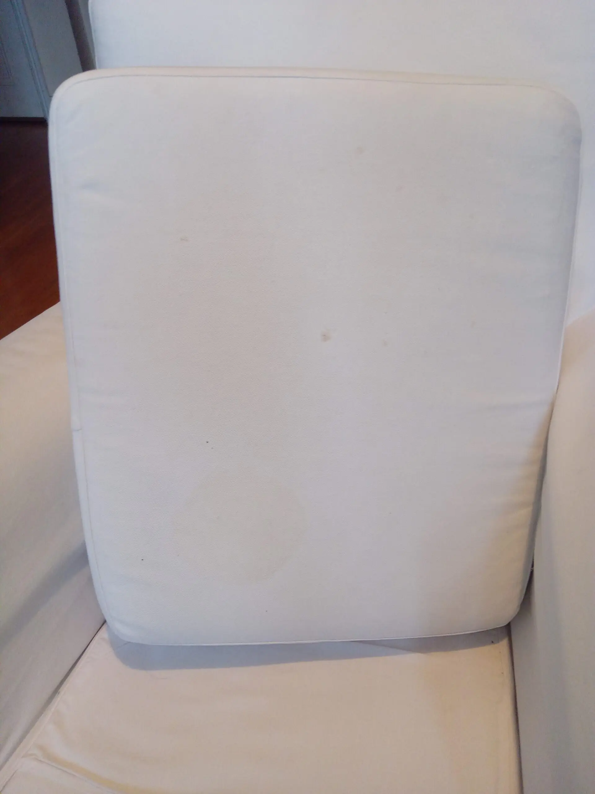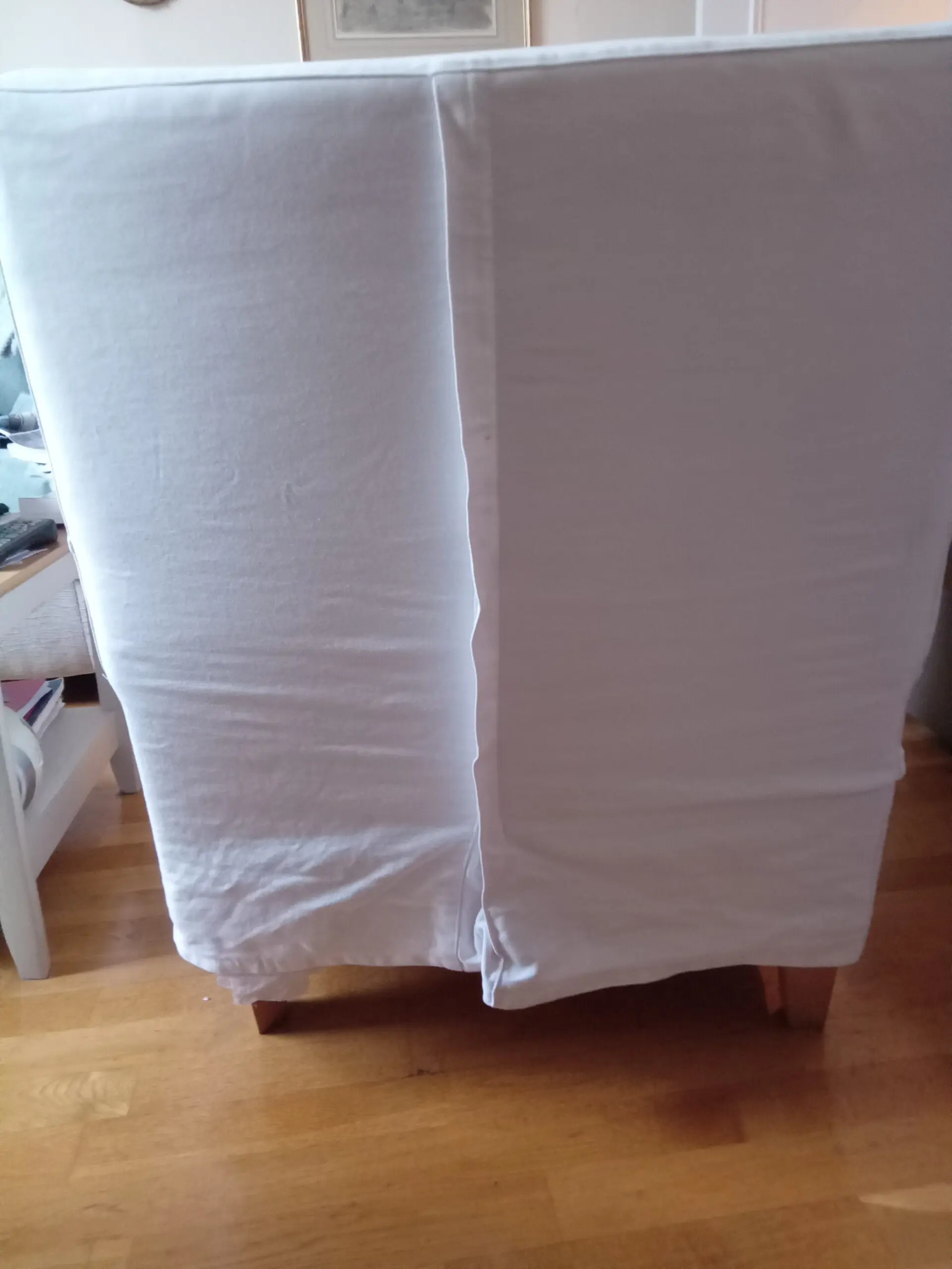 This white armchair is very confortable and in good condition. It has a removable cover and wooden legs.
