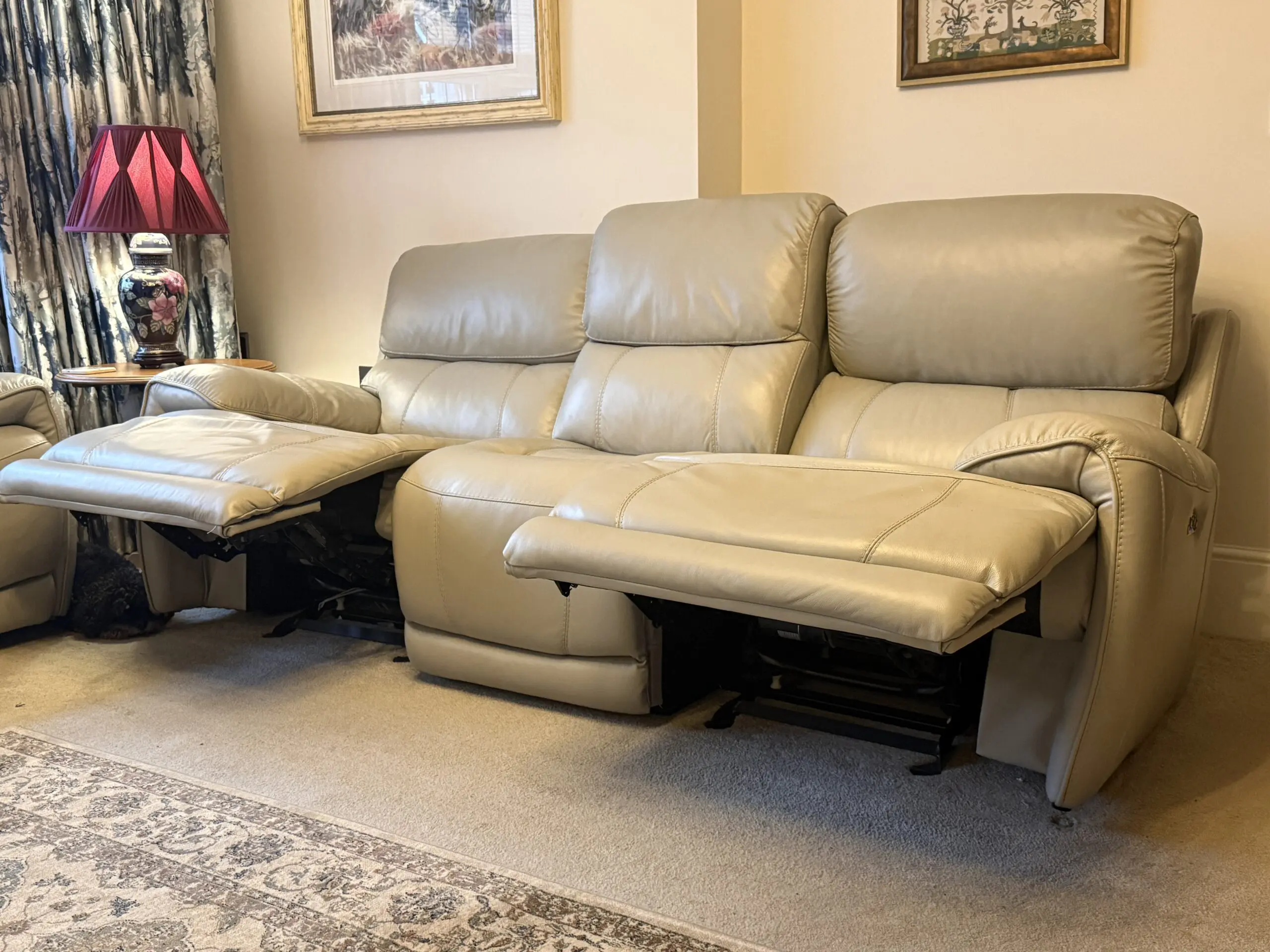 Bought from Furniture Village, luxury rocker sofas and chair, with power head, back and foot rests. Controls include USB charging points. Retail £7285 total, we would accept £1250 for each sofa and £550 for the chair OR £2650 for all 3.