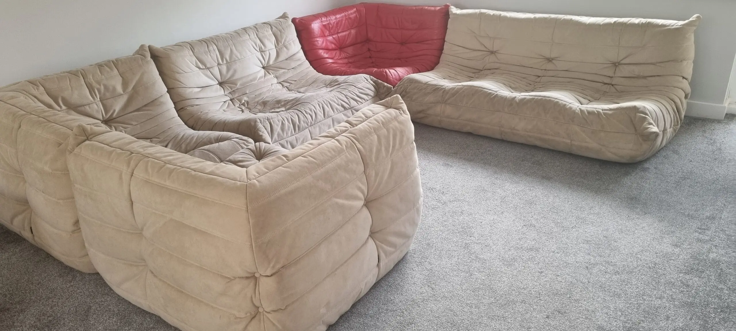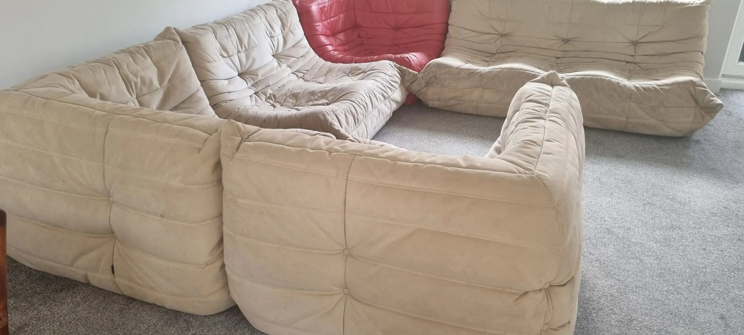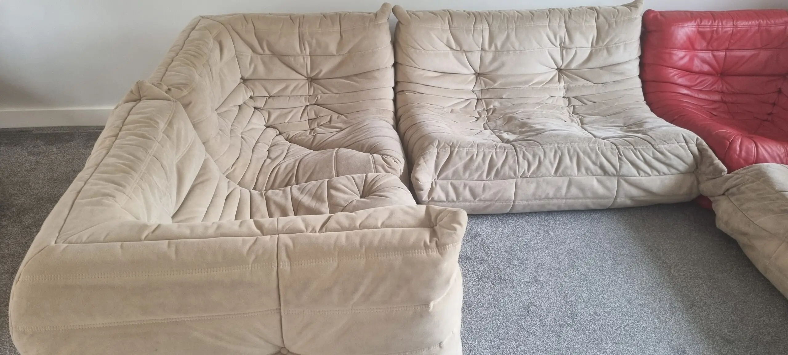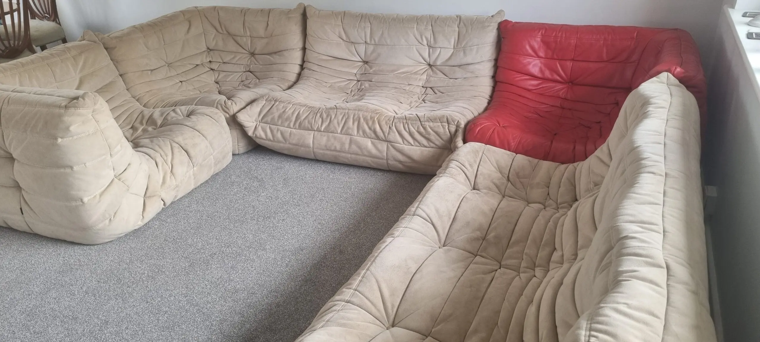Togo by Ligne Roset in suade and 1 corner unit in red leather