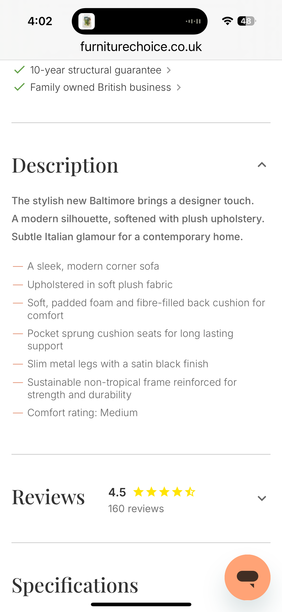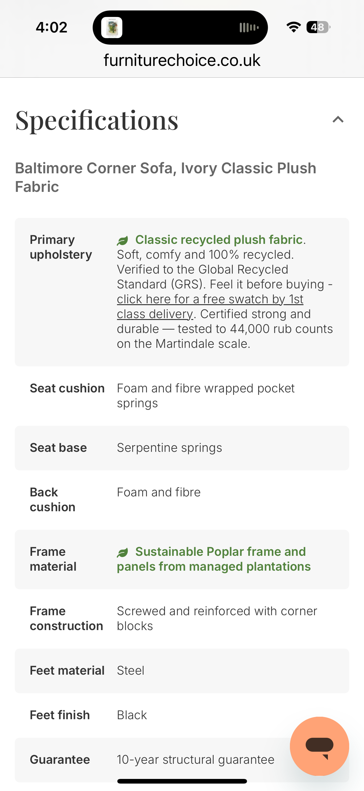 The team is absolutely amazing, couldn’t have felt more supported in my sofa purchase. I have recommended to all my friends and family.