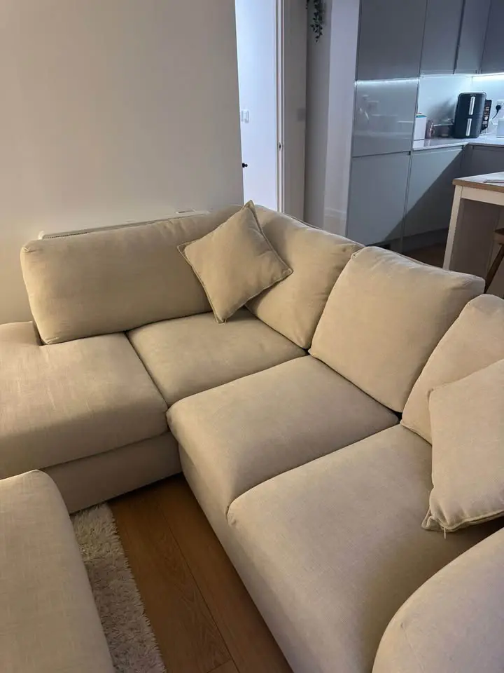 I ordered this sofa 20 days ago, but by mistake I ordered the left-hand-facing model, so it doesn’t fit properly in my home. If anyone needs it, it is completely brand new. Delivery is available.