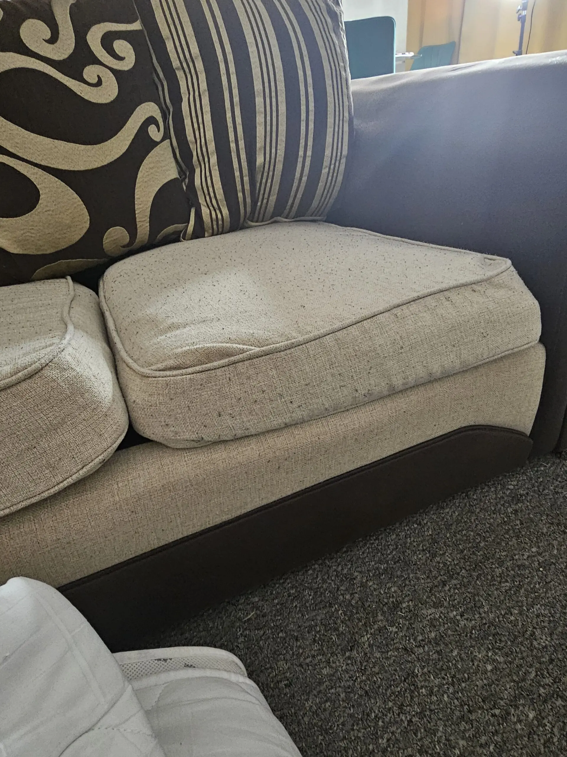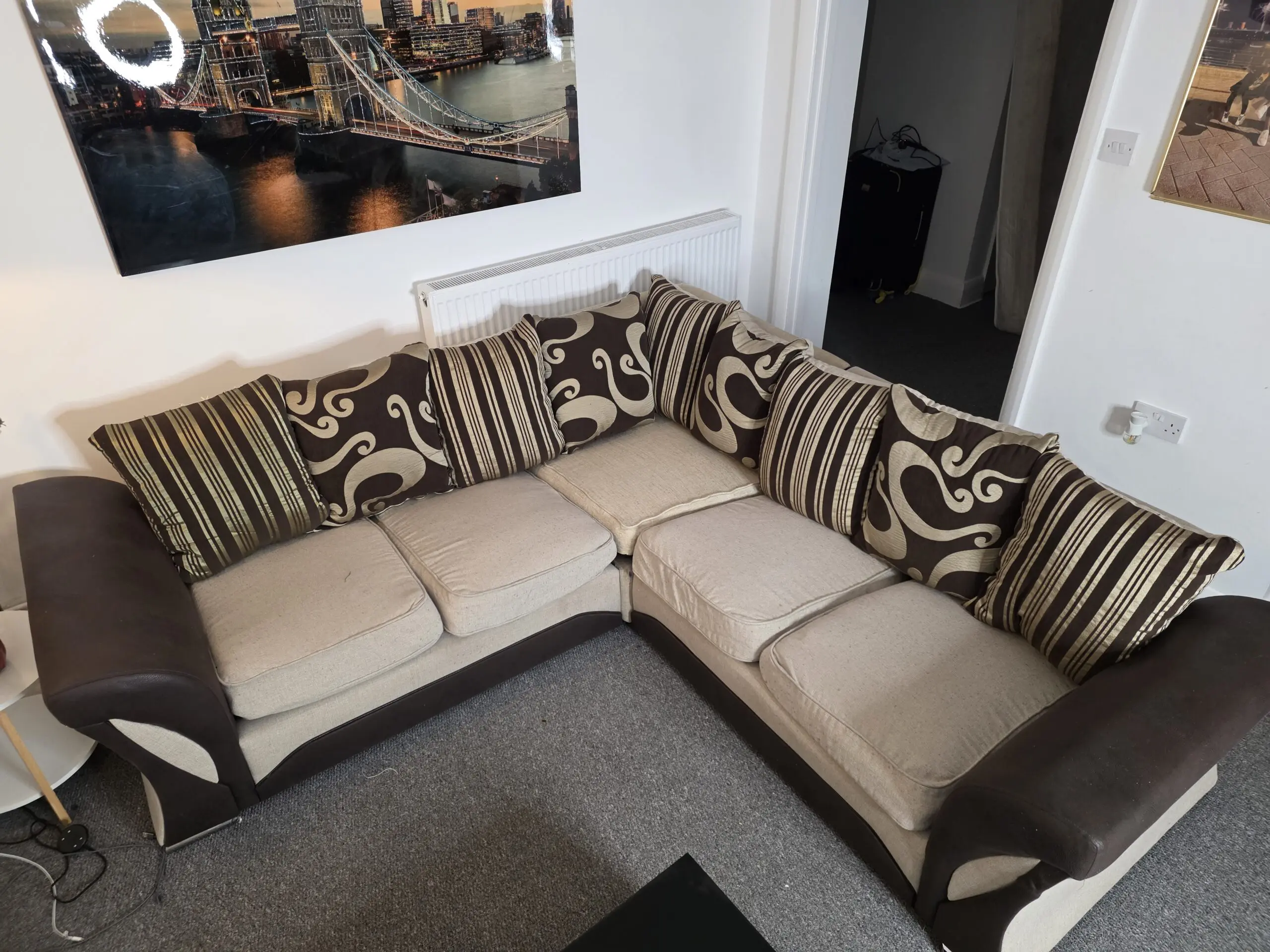 I have a 5 seater corner sofa, I bought November 5th 2022. It is in good condition. Only selling because I am relocating out of the country.
