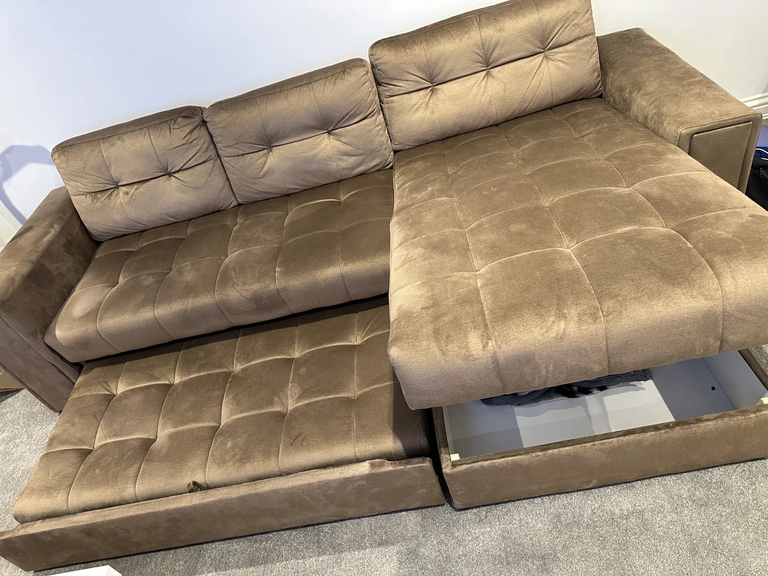 This spacious corner sofa offers excellent seating for the whole family with its generous L-shaped design. The contemporary button-tufted upholstery adds a stylish touch to any living room, whilst the chaise longue section provides extra comfort for lounging. With seating for 4-5 people, it’s perfect for entertaining guests or relaxing with loved ones. The modern design features clean lines and comfortable cushioning throughout.