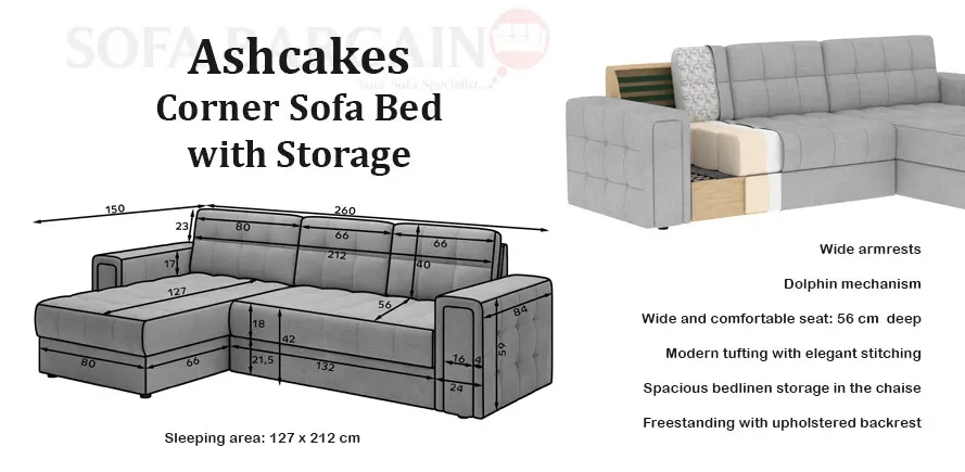 - Corner Sofa: 260cm (W) × 150cm (D) × 42cm (H)