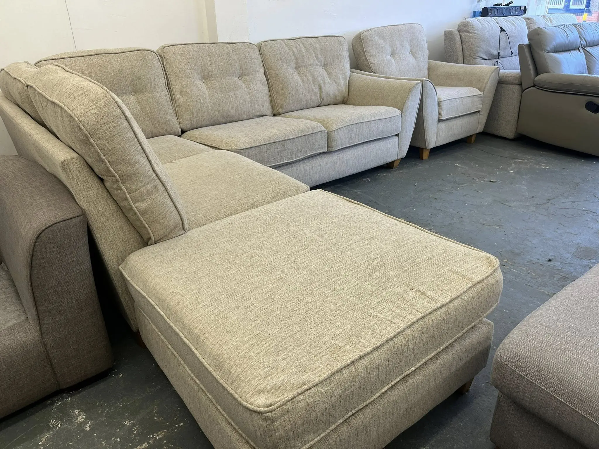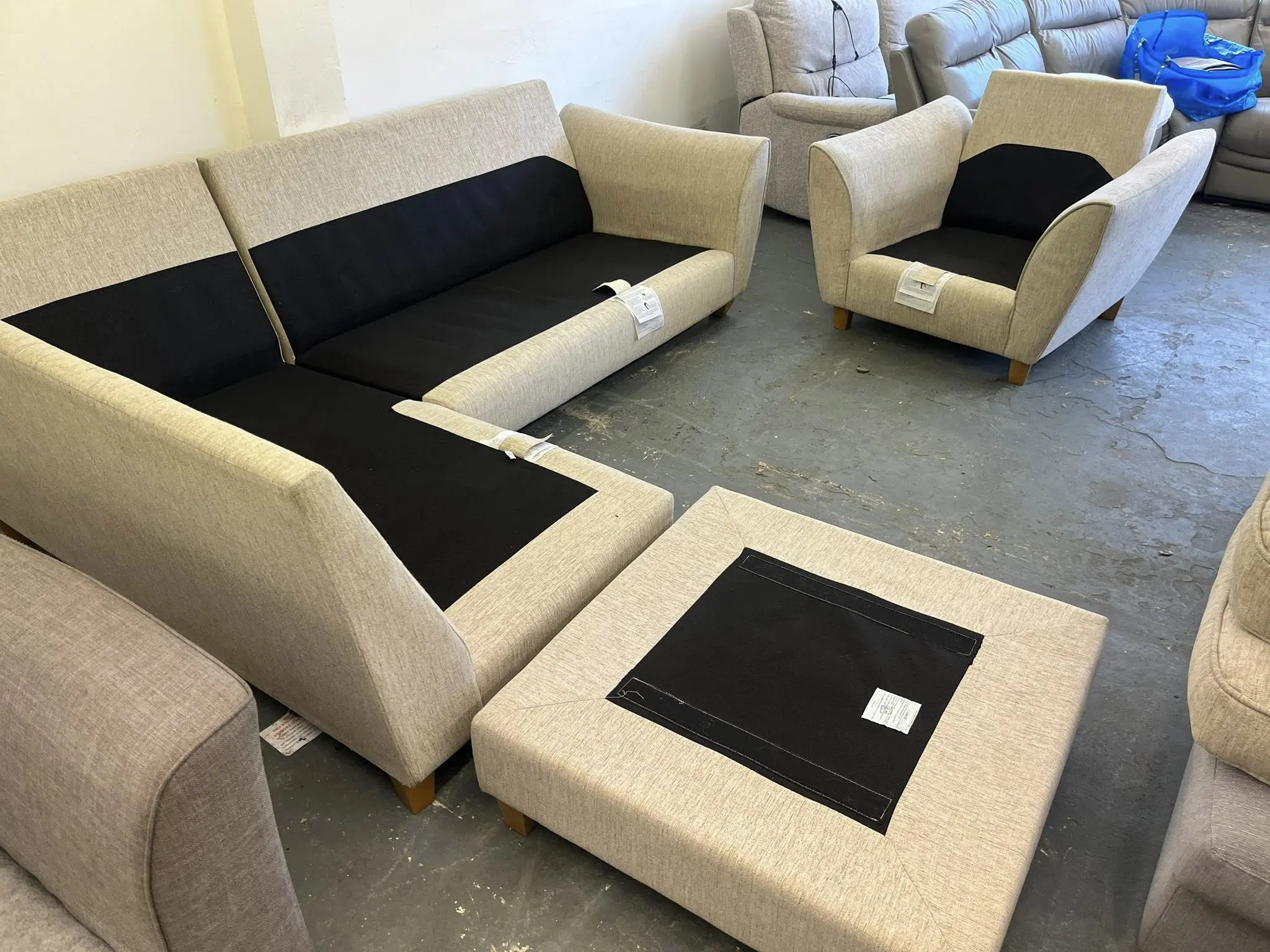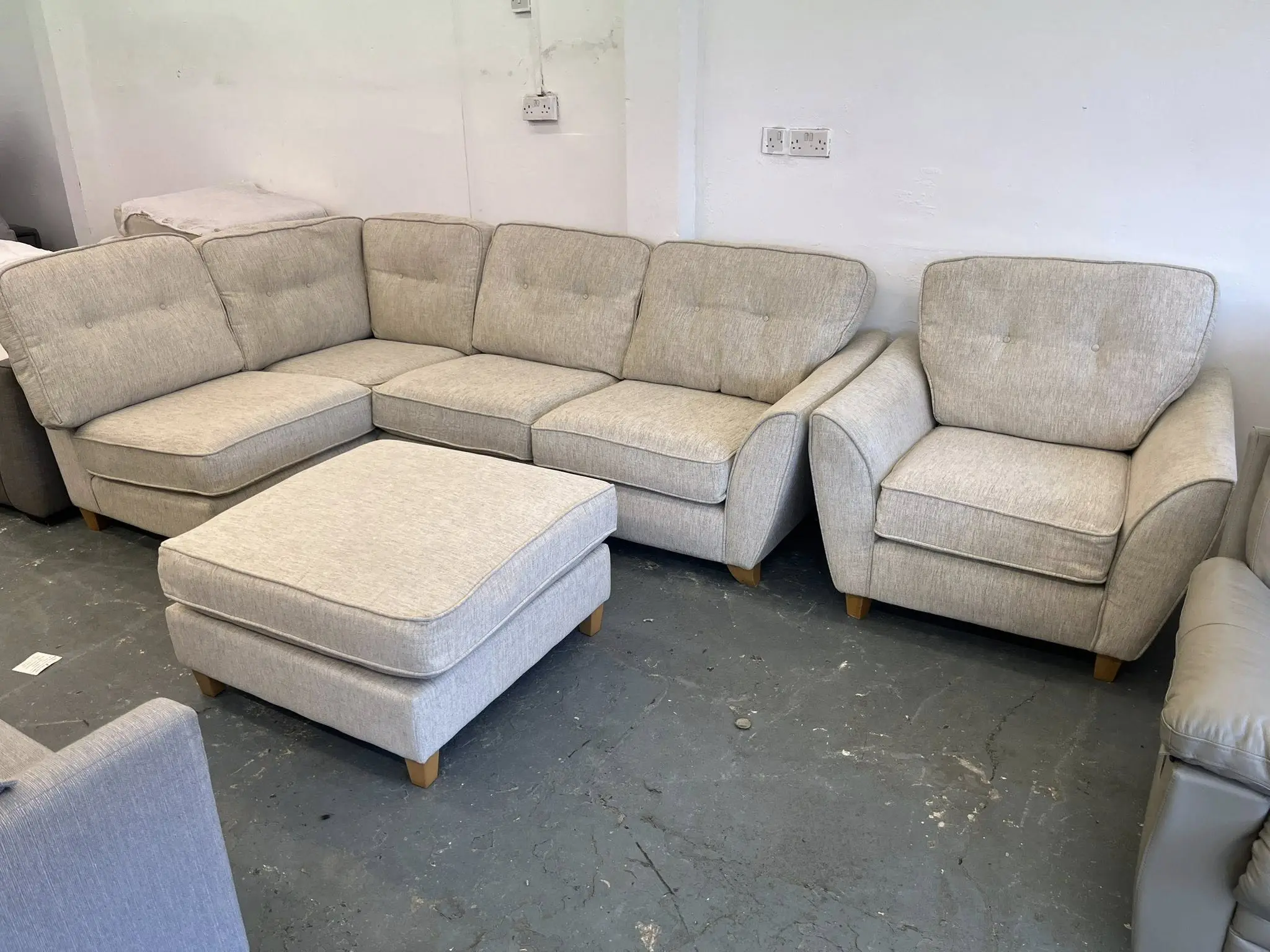 Beige French Connection L Shape Sofa, Matching Chair & Footstol-