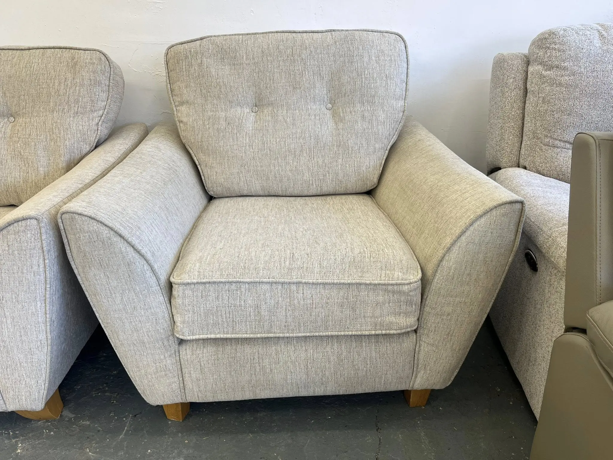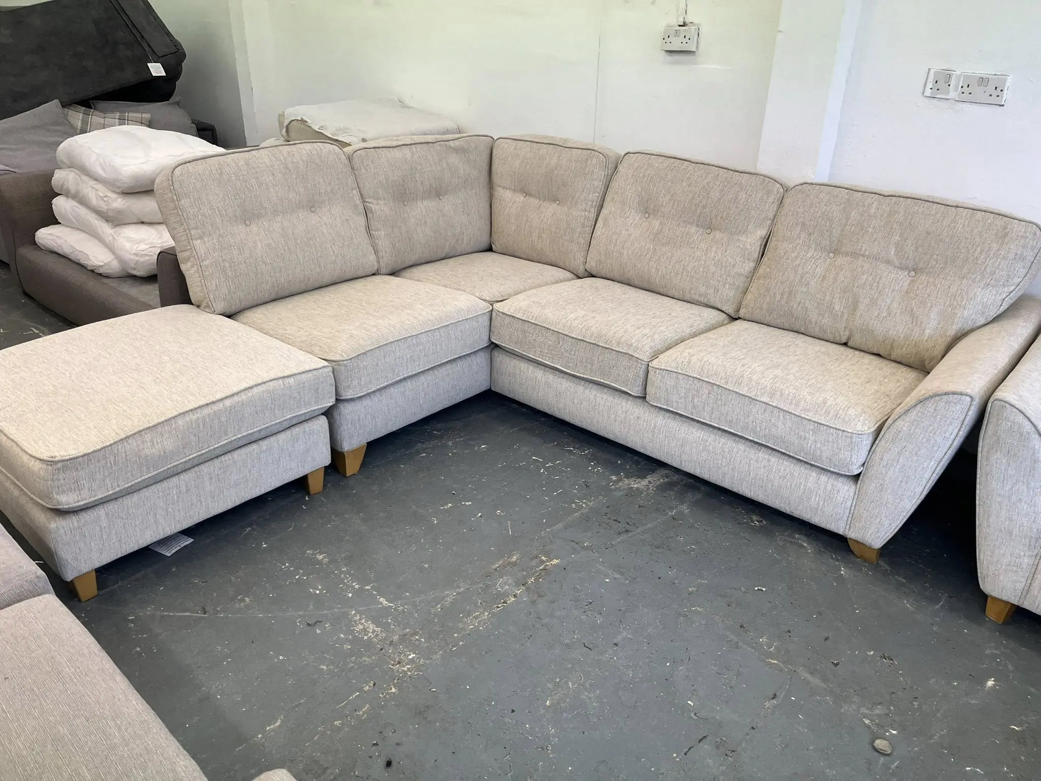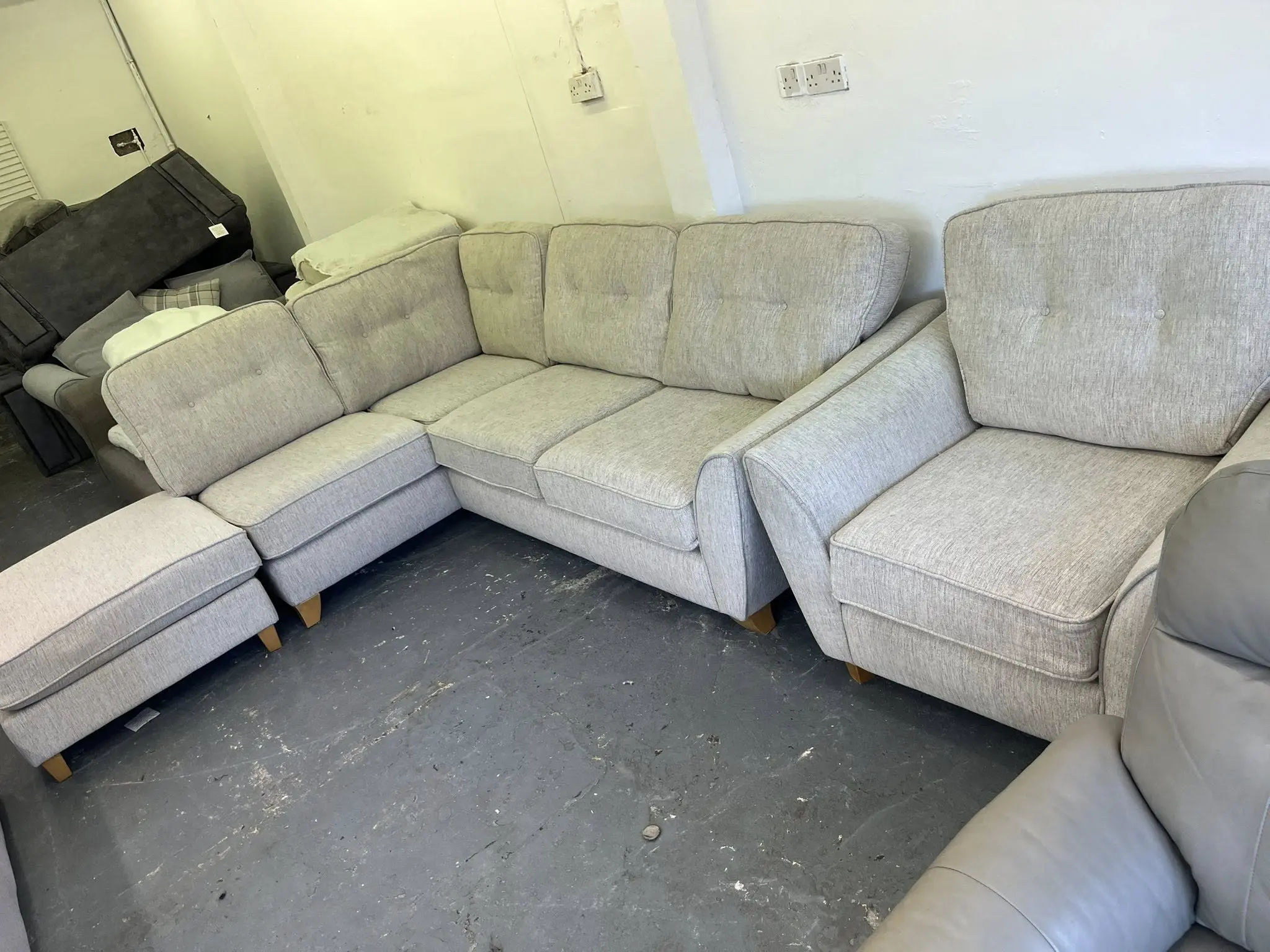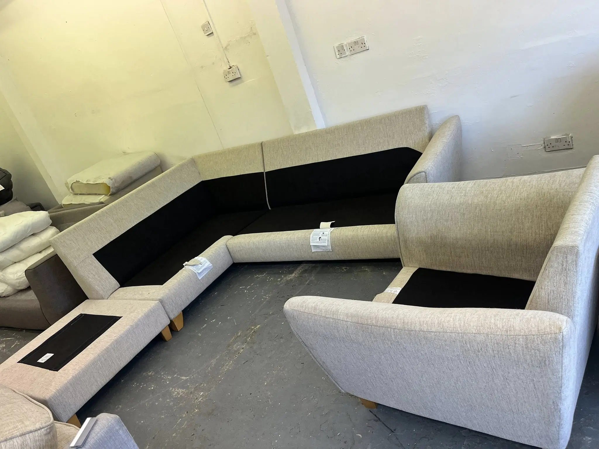 Beige French Connection L Shape Sofa, Matching Chair & Footstol-