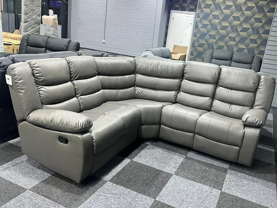 Black / Grey Leather Recliner Corner Sofa For Sale